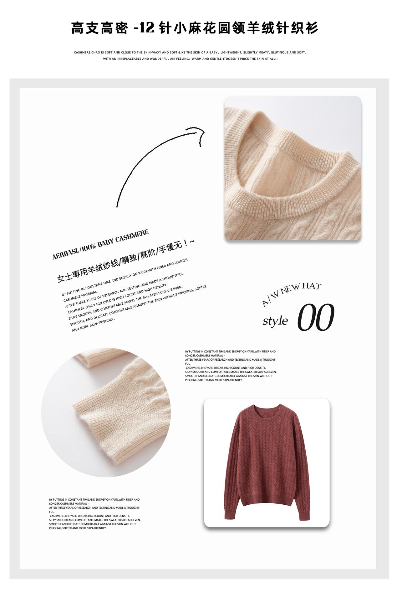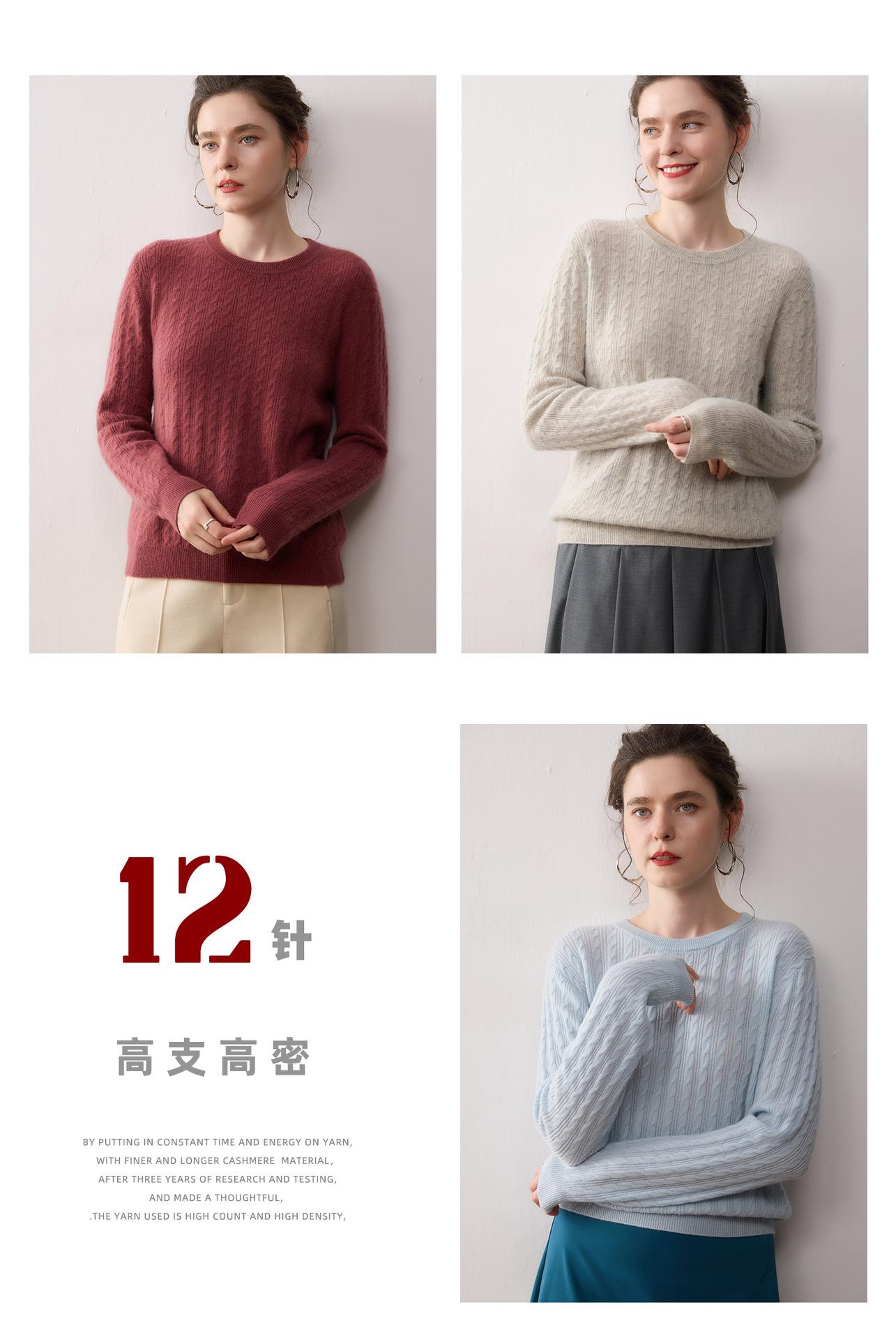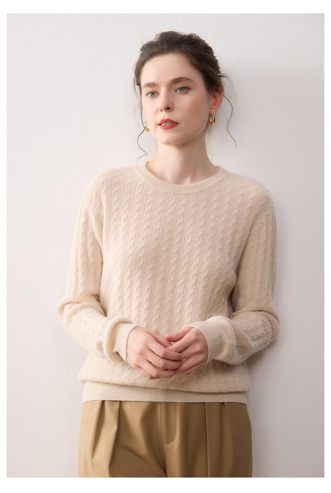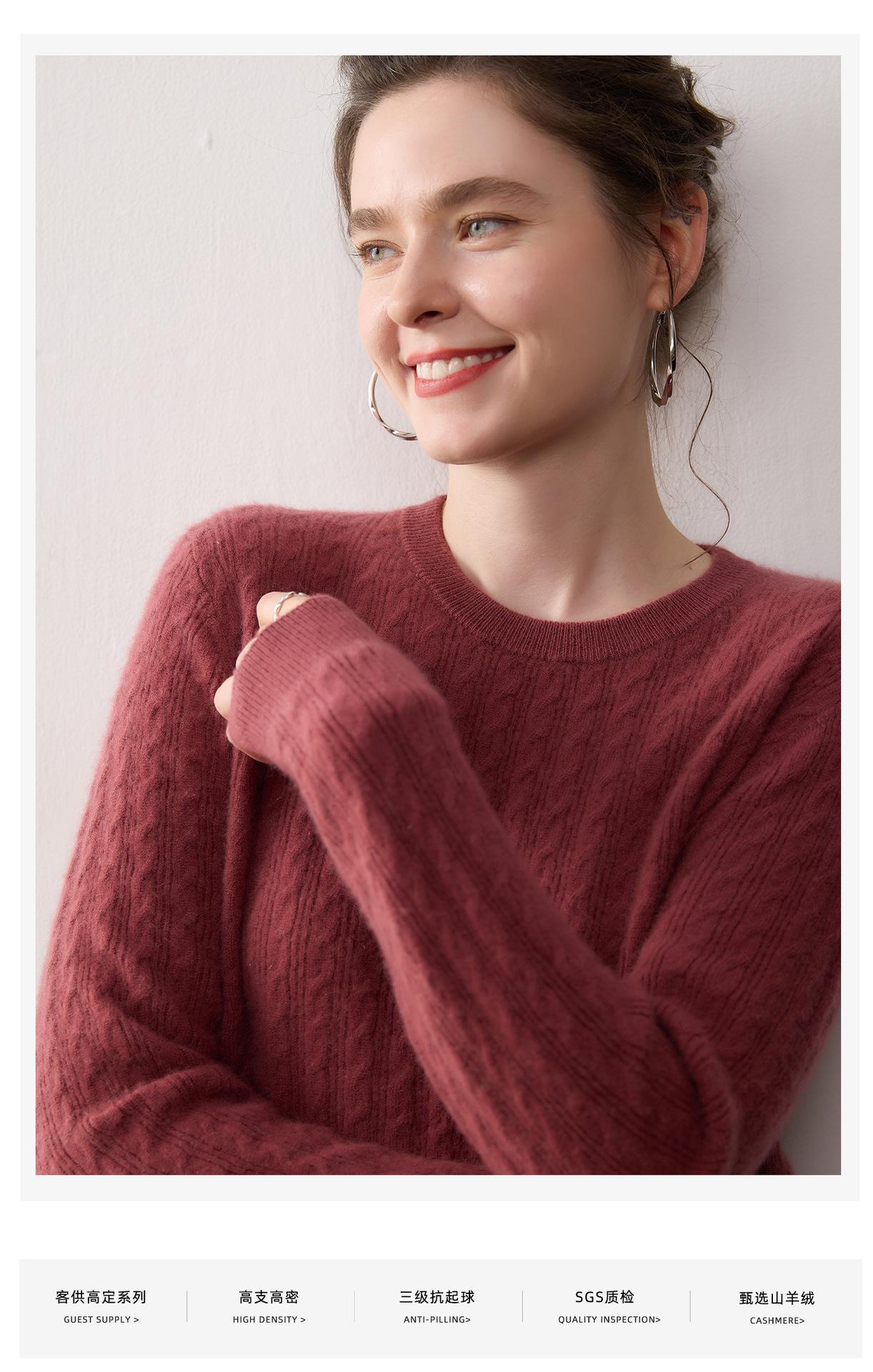 Suéter de Cachemira 100% Pura para Mujer Jersey Sencillo de Cuello Redondo Capa Interior Base Otoño Invierno Nuevo Estilo Dulce Tejido de Cable