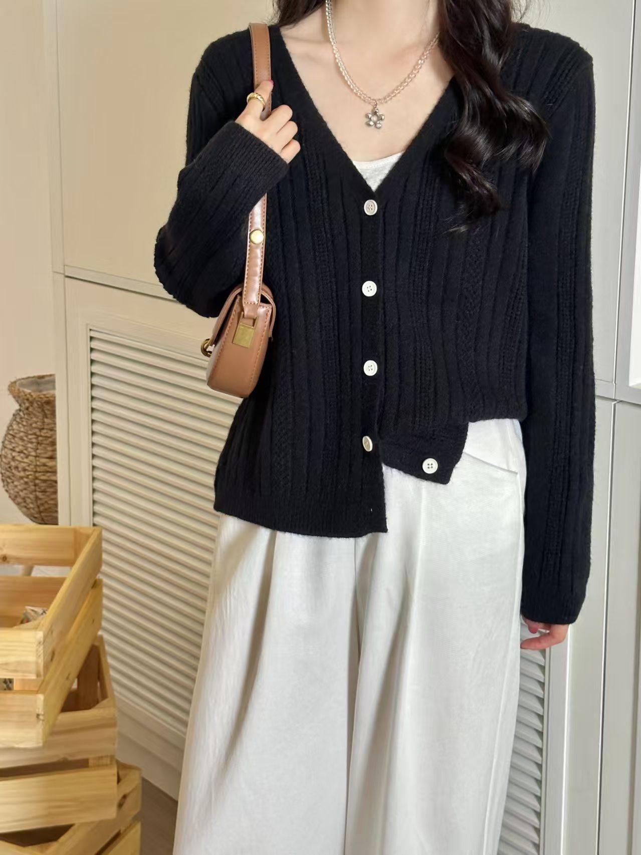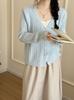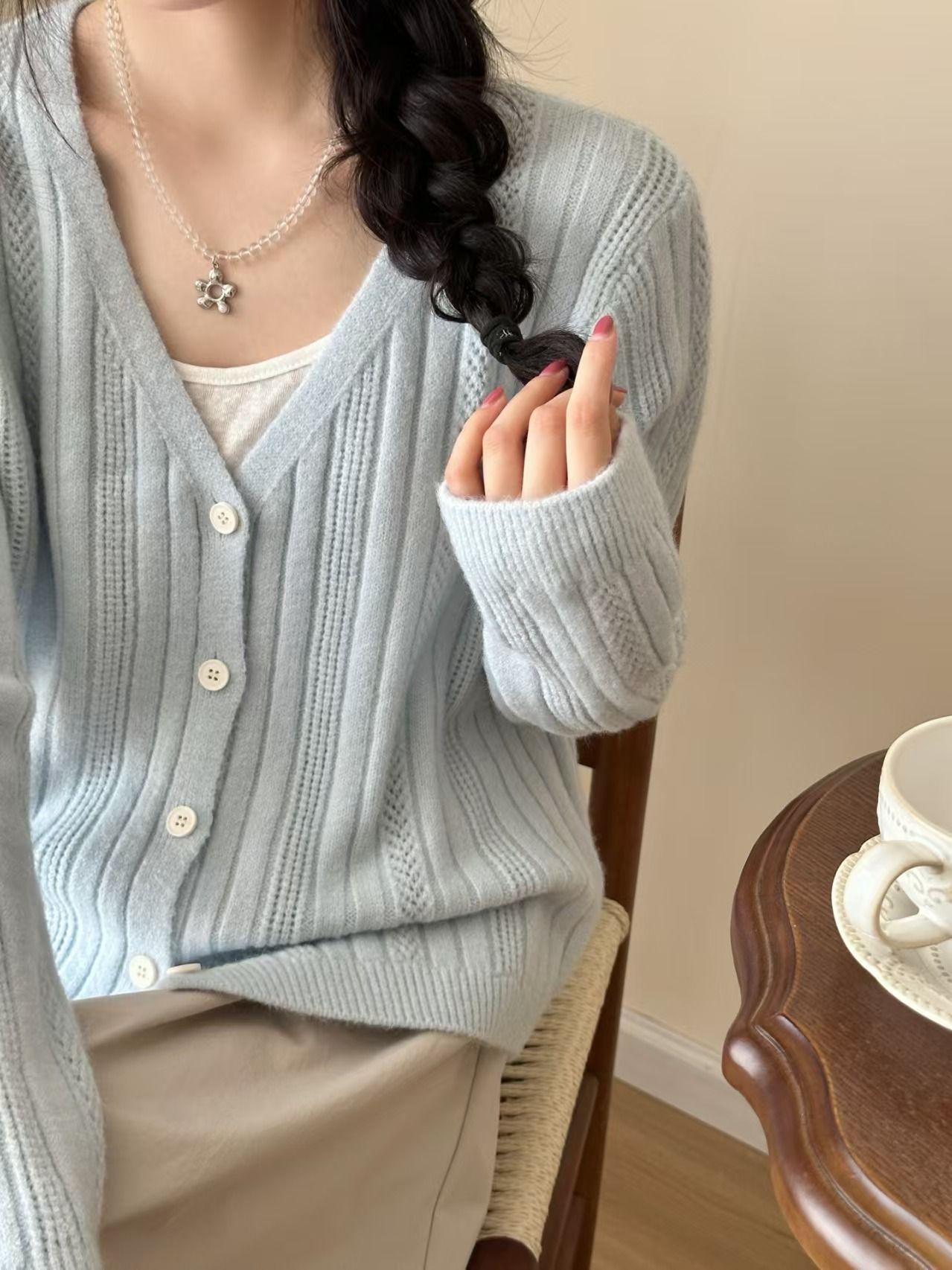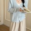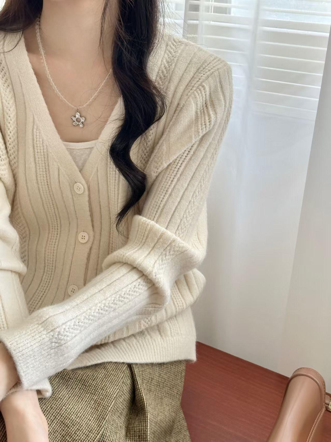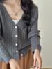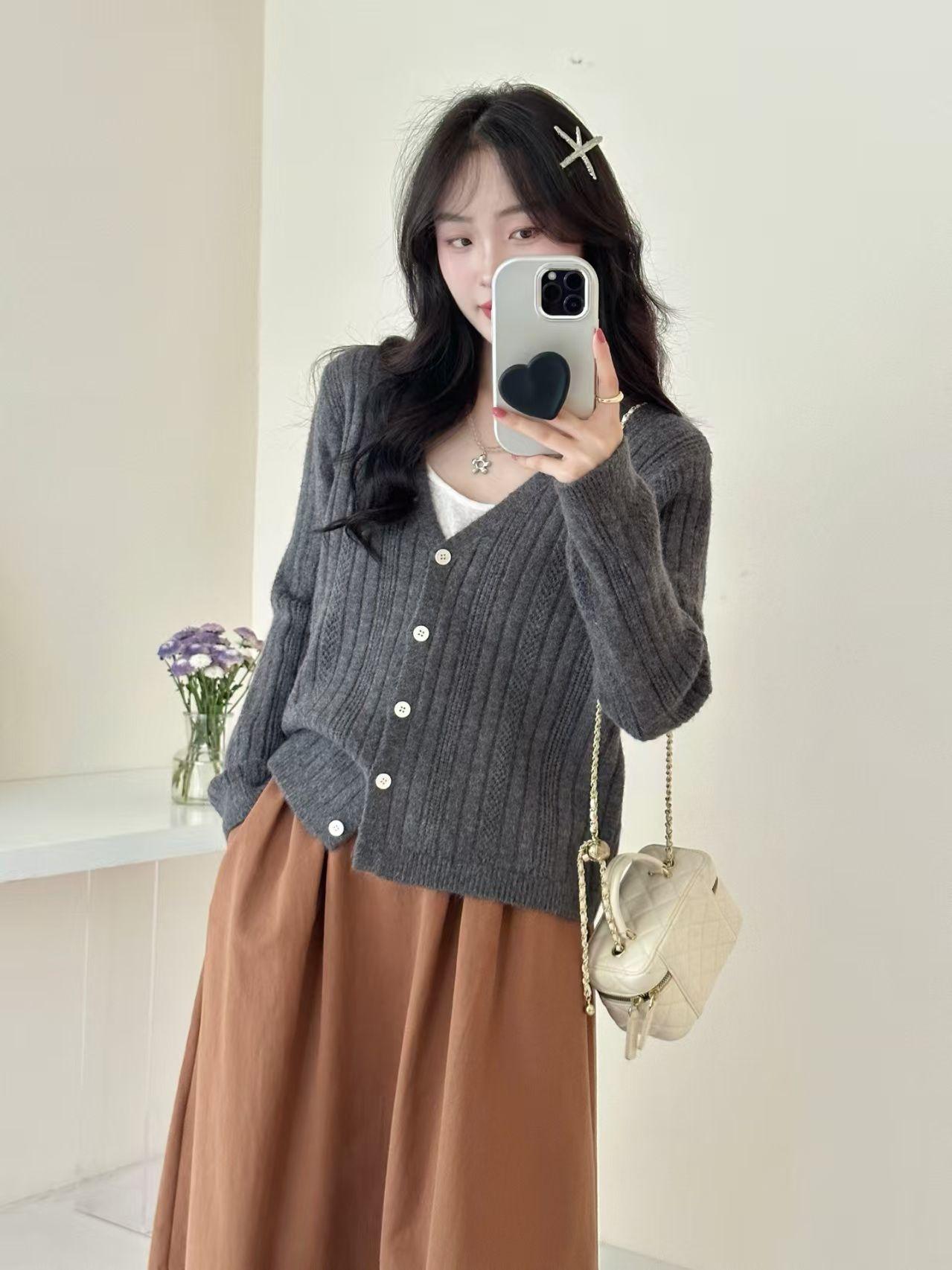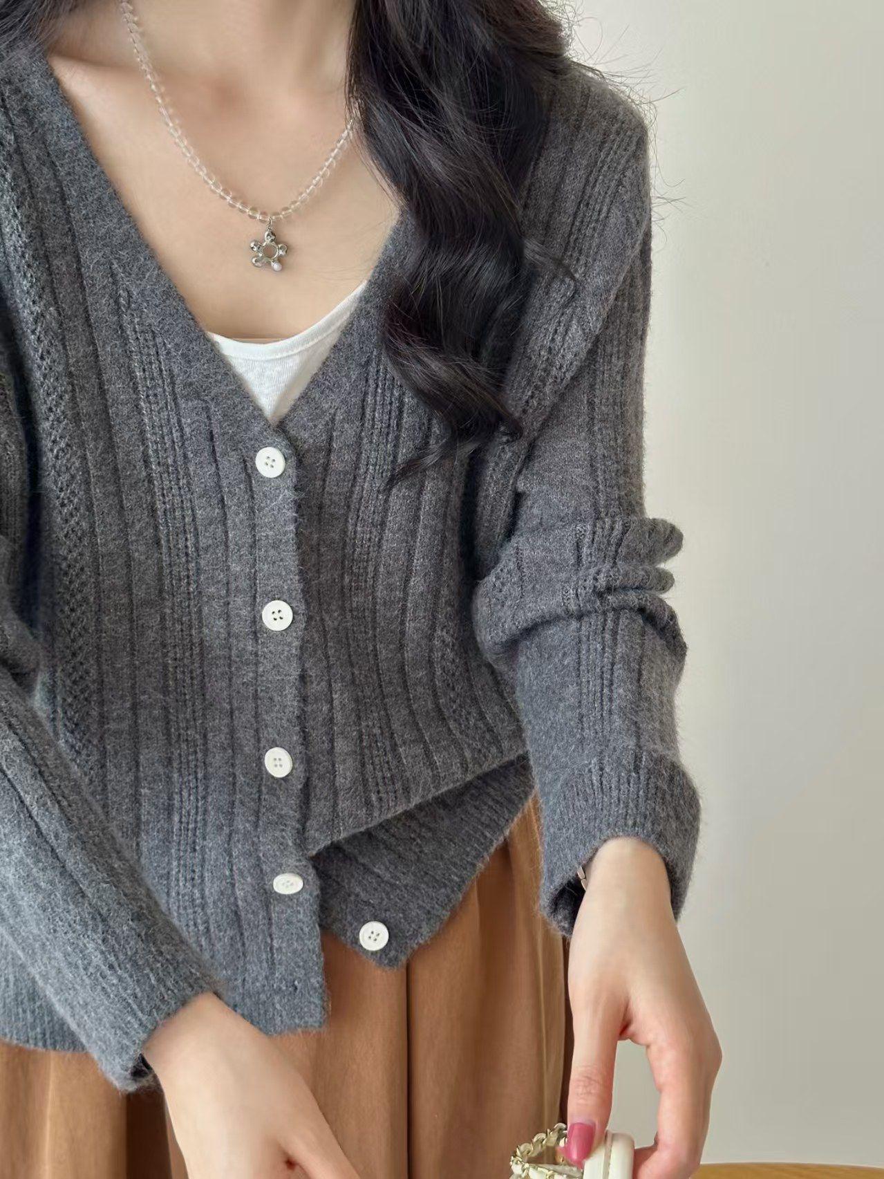 Cárdigan de punto versátil de color sólido estilo coreano para mujer, nuevo estilo perezoso de principios de otoño, cuello en V, suéter gris, abrigo exterior, top