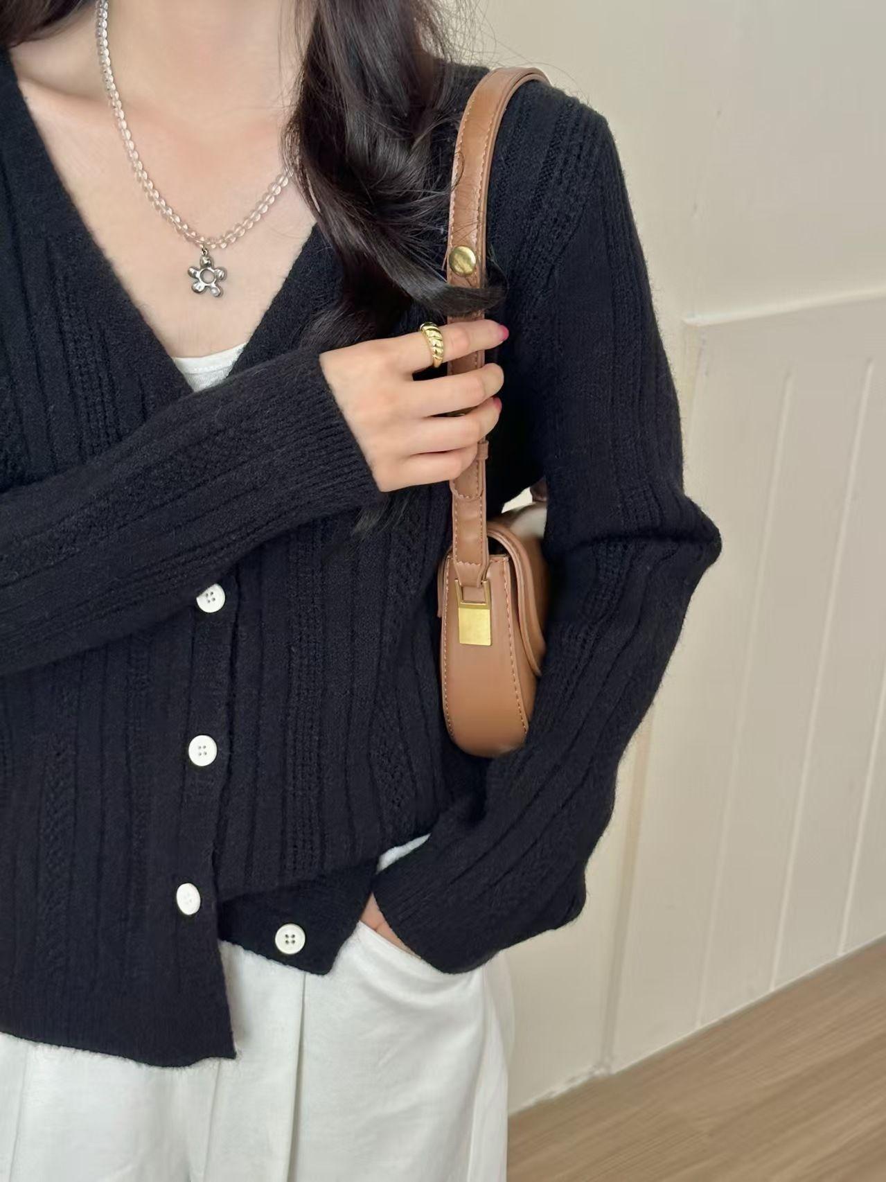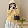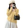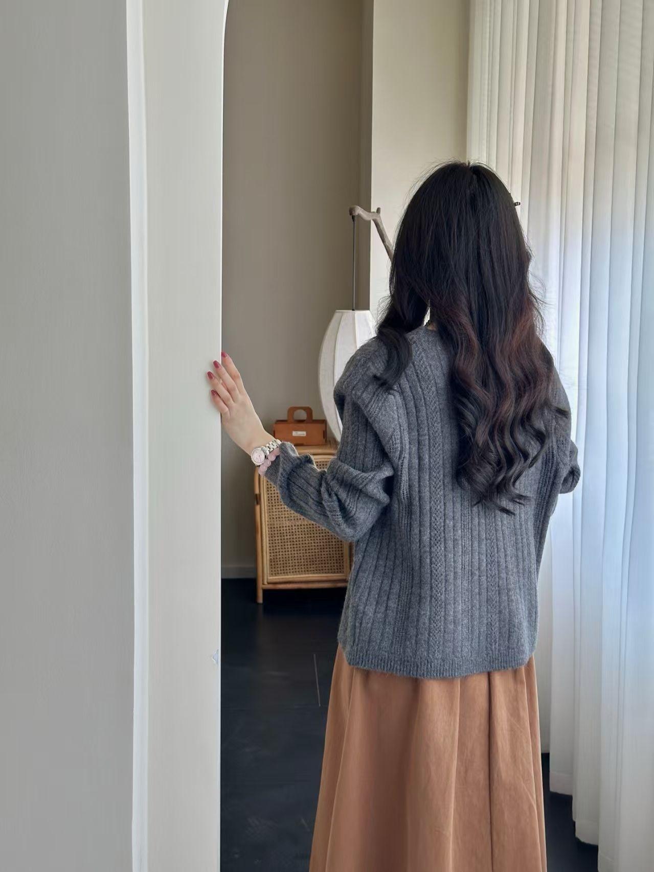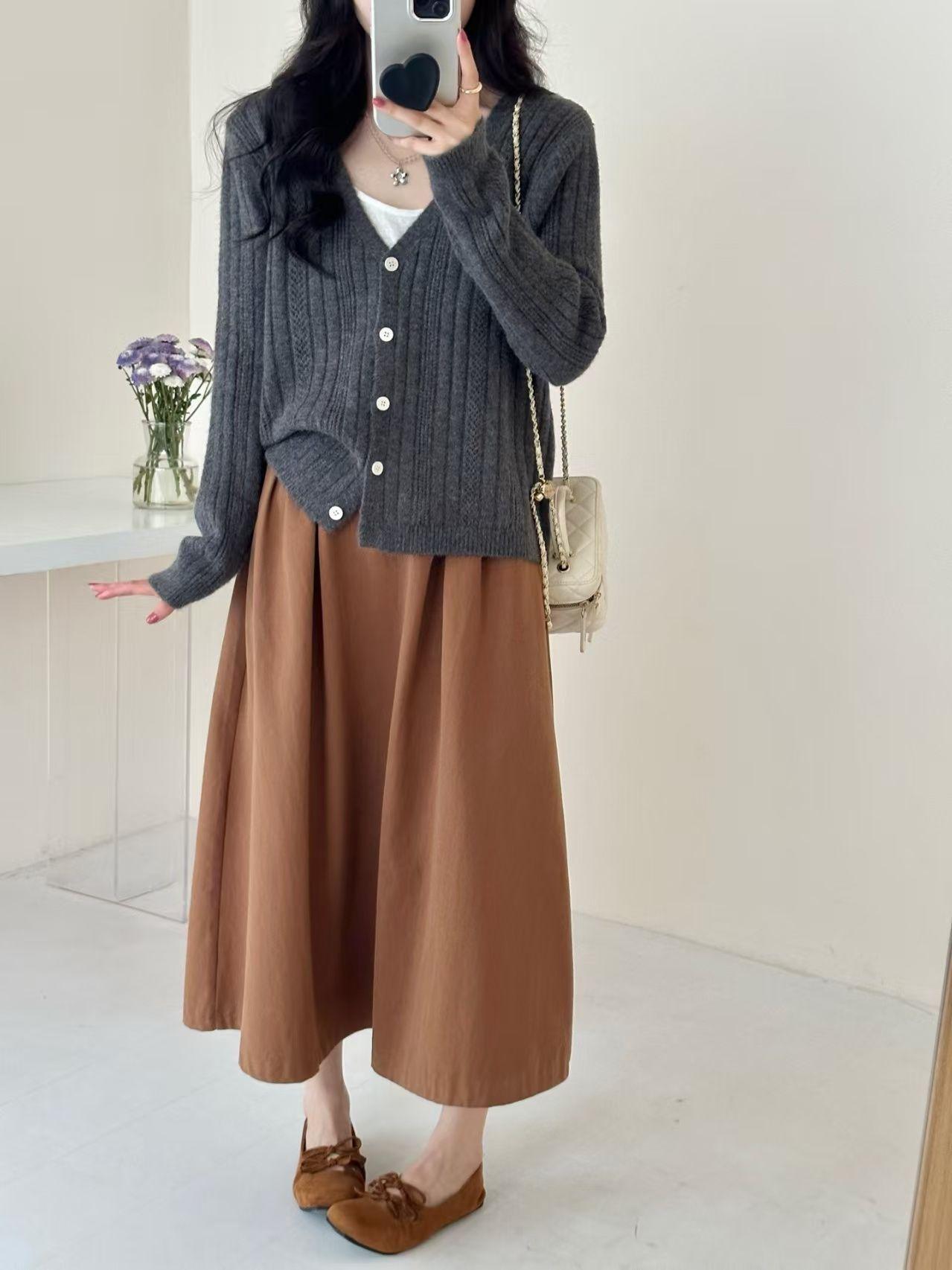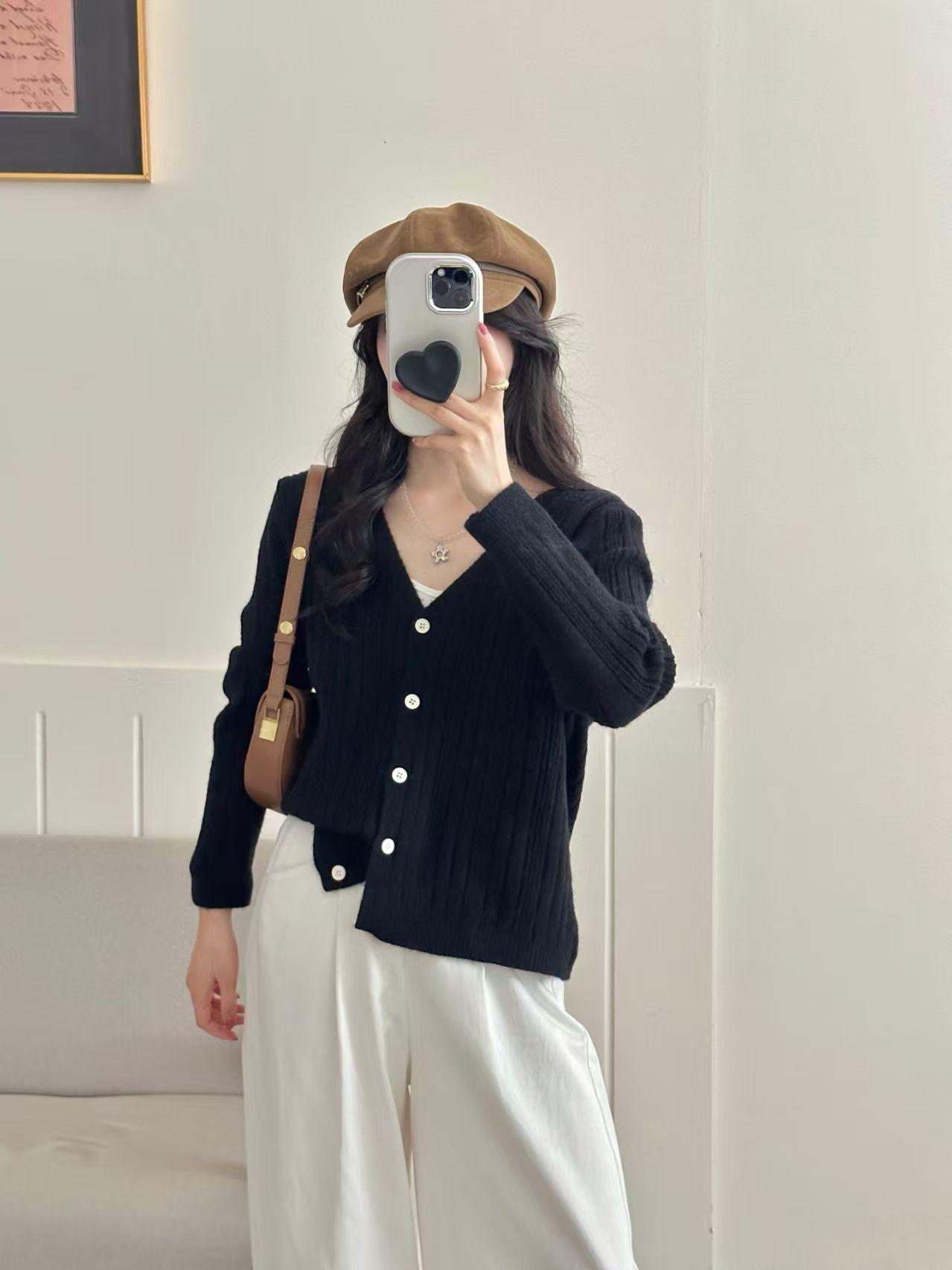 Cárdigan de punto versátil de color sólido estilo coreano para mujer, nuevo estilo perezoso de principios de otoño, cuello en V, suéter gris, abrigo exterior, top