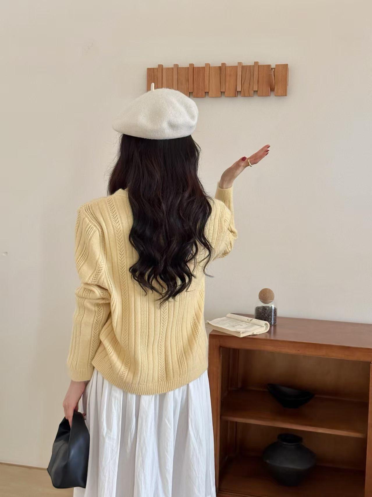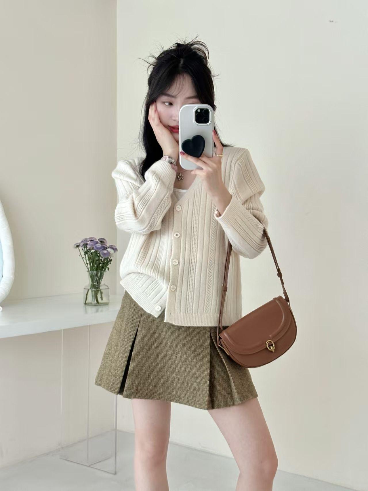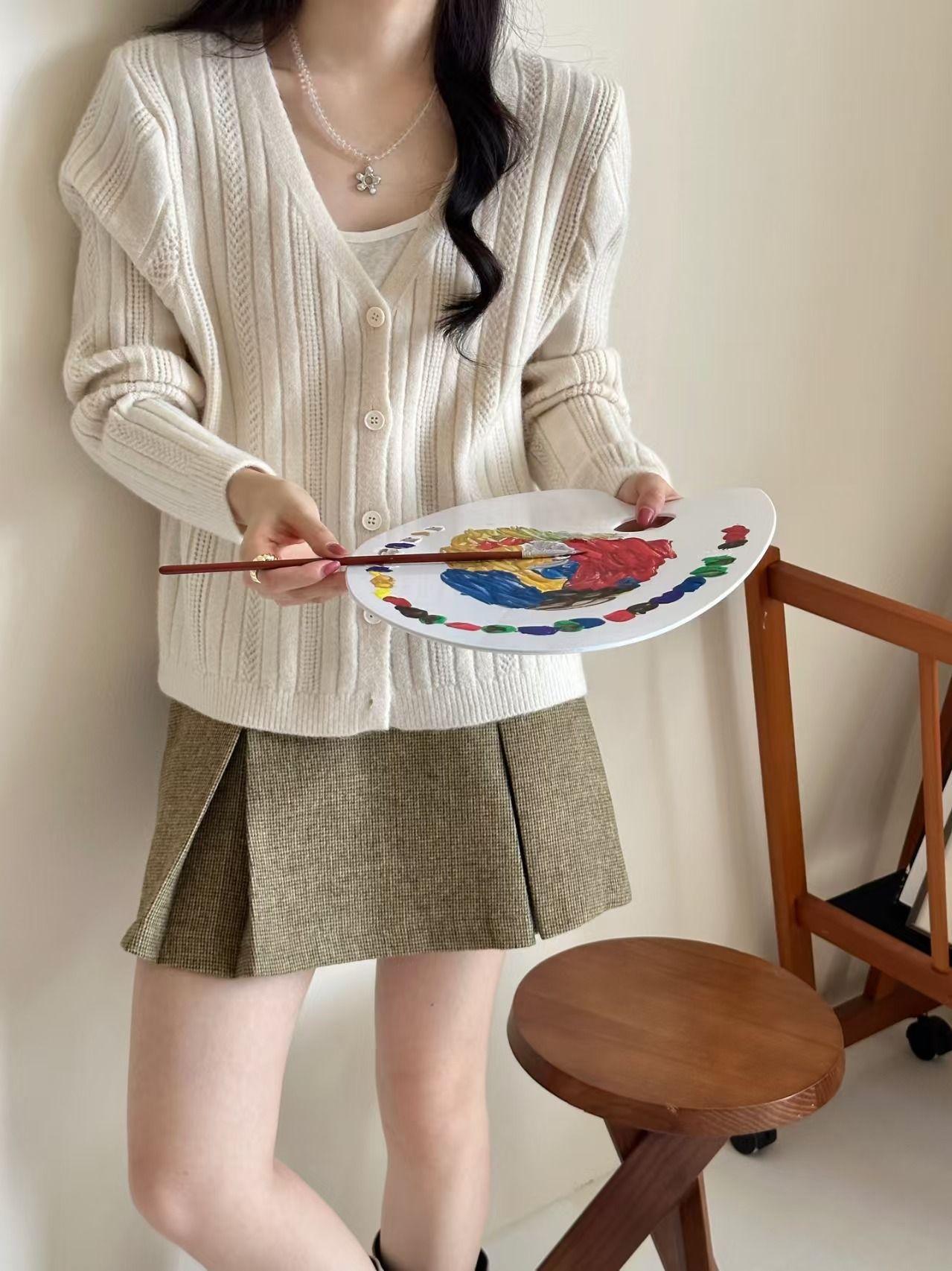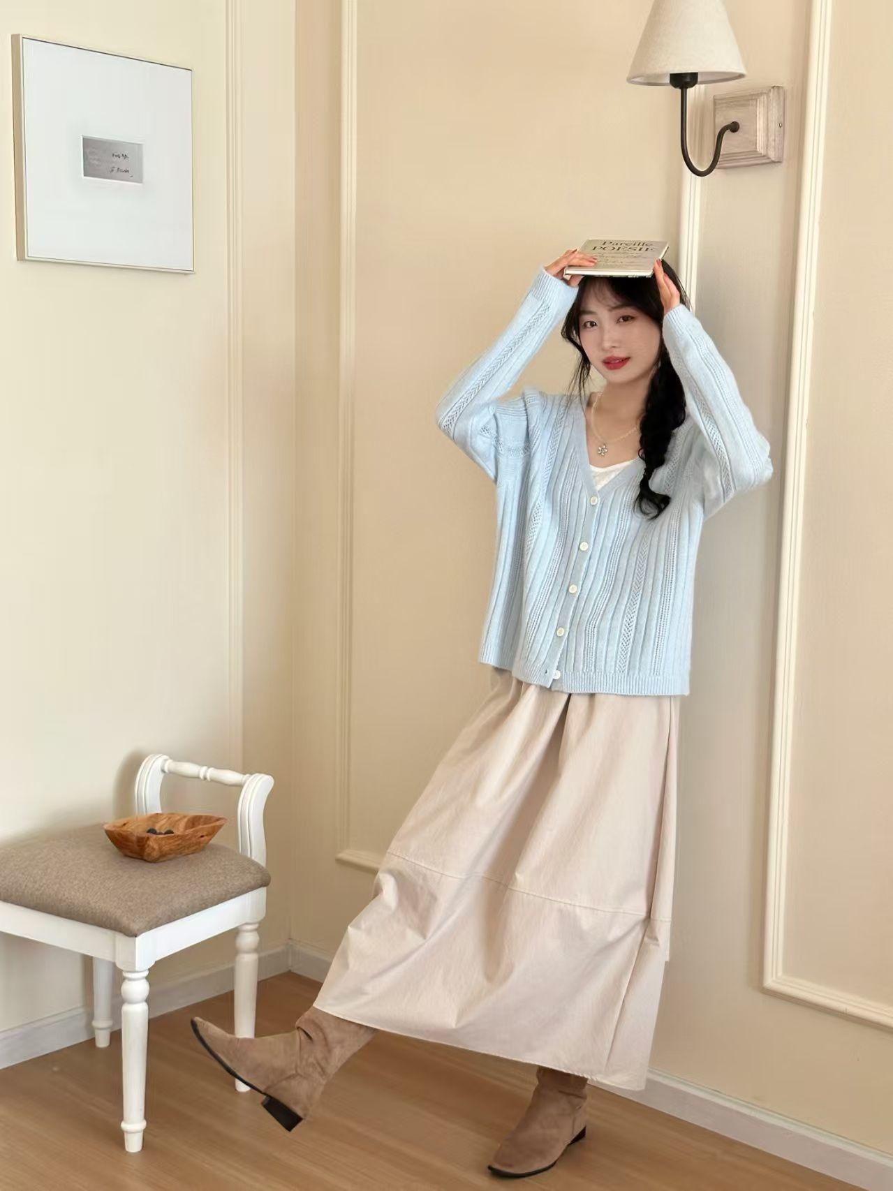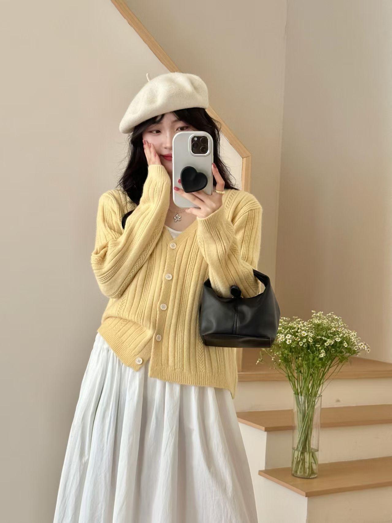 Cárdigan de punto versátil de color sólido estilo coreano para mujer, nuevo estilo perezoso de principios de otoño, cuello en V, suéter gris, abrigo exterior, top