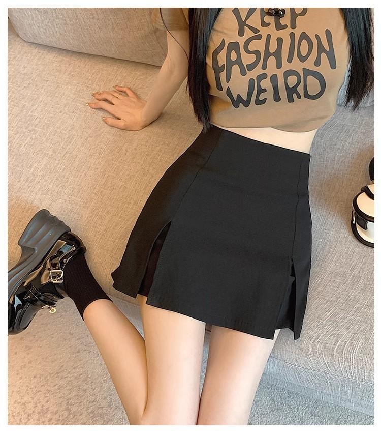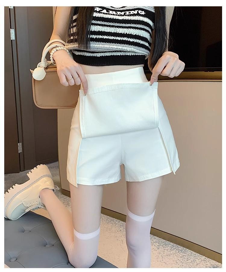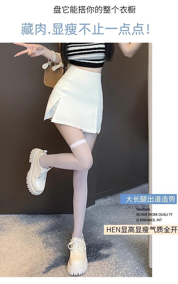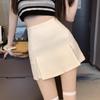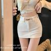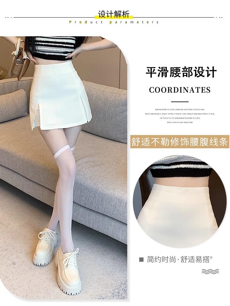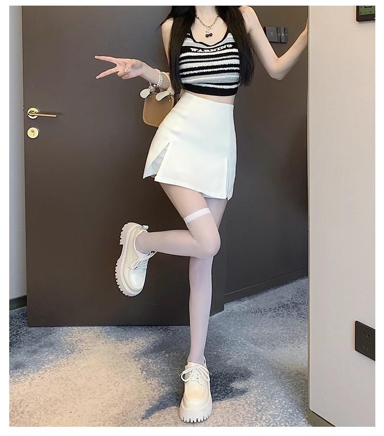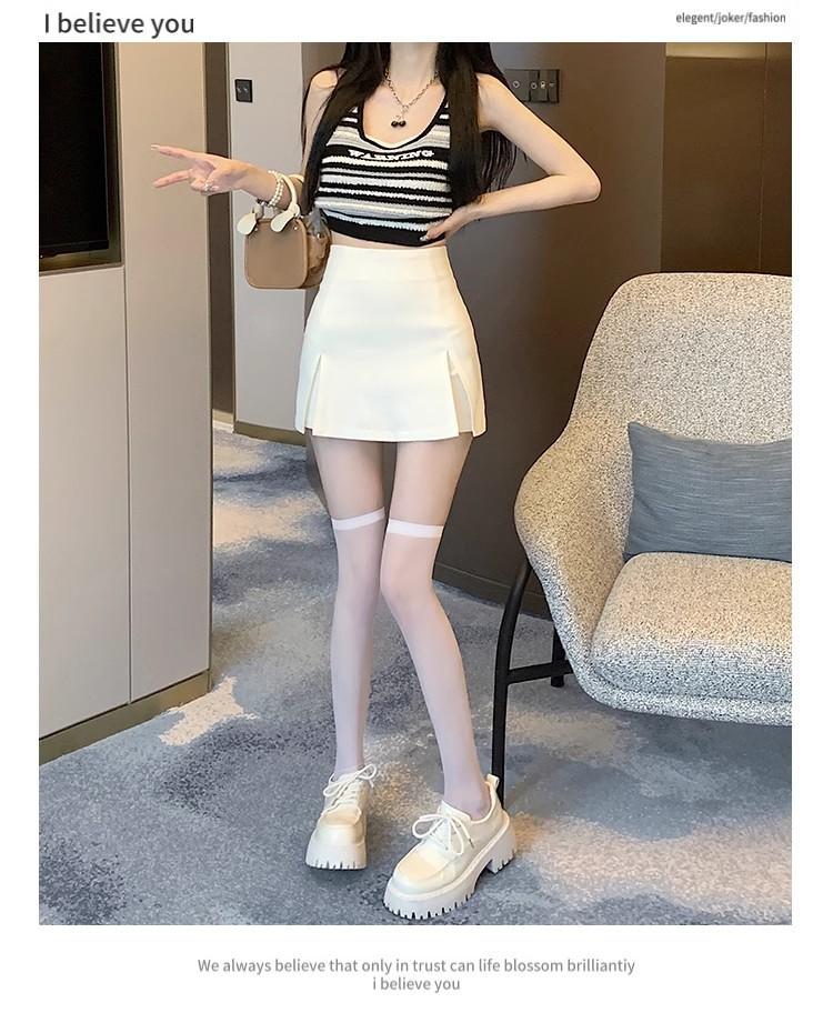 Traje Blanco Falda Corta para Mujer, Verano Petite Antiexposición Falda Ajustada, Cintura Alta Línea A Abertura Media Falda para Chicas Calientes