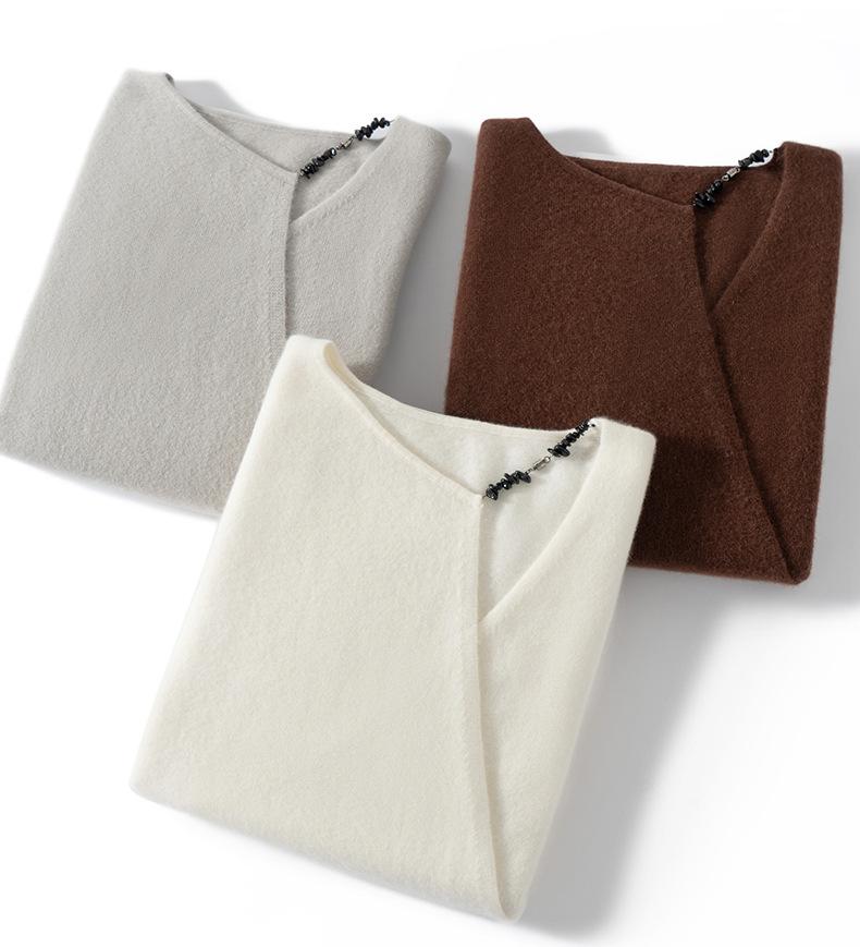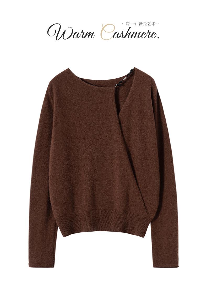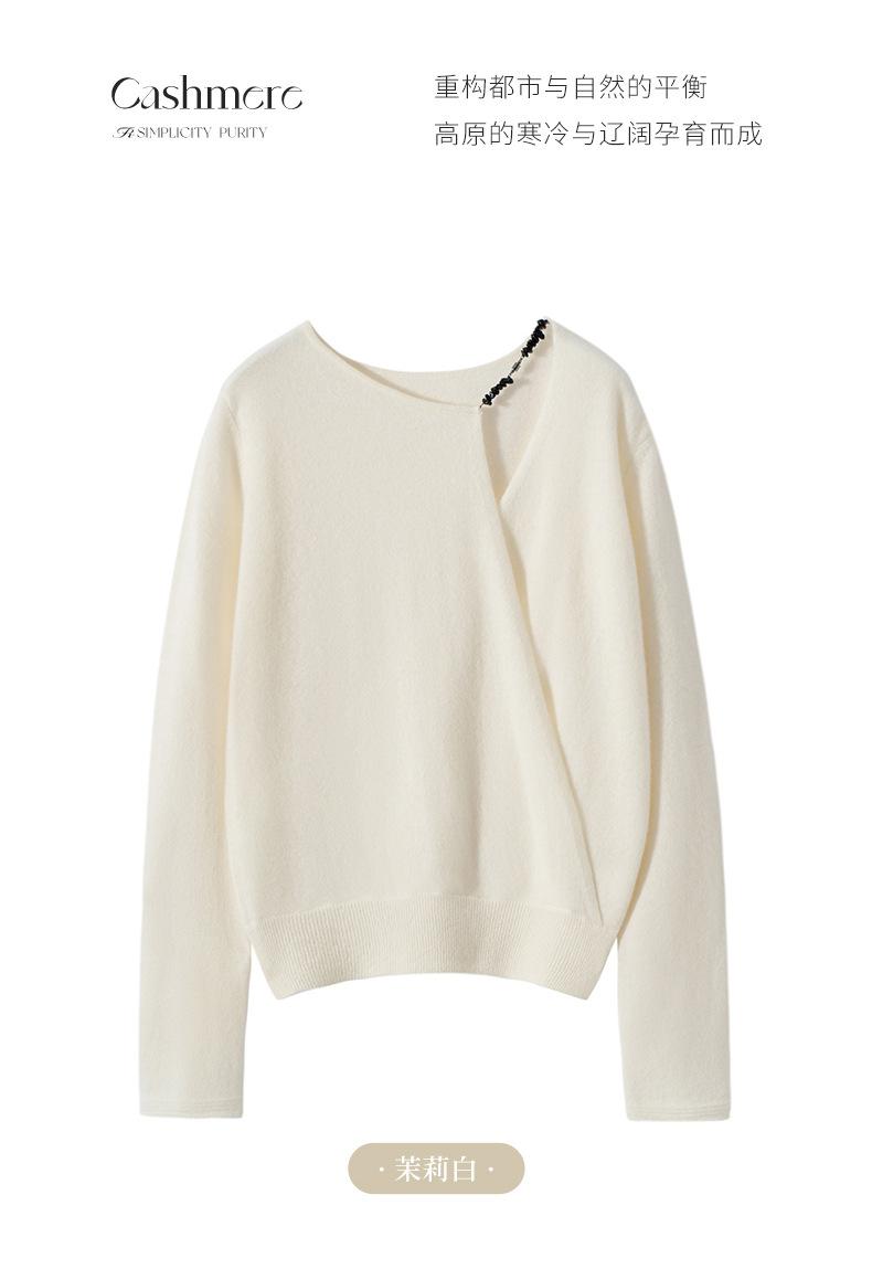 Suéter de Cachemira 100% Pura para Mujer, Moda Casual Simple Holgado, Otoño e Invierno, Nuevo Suéter de Punto Básico Versátil