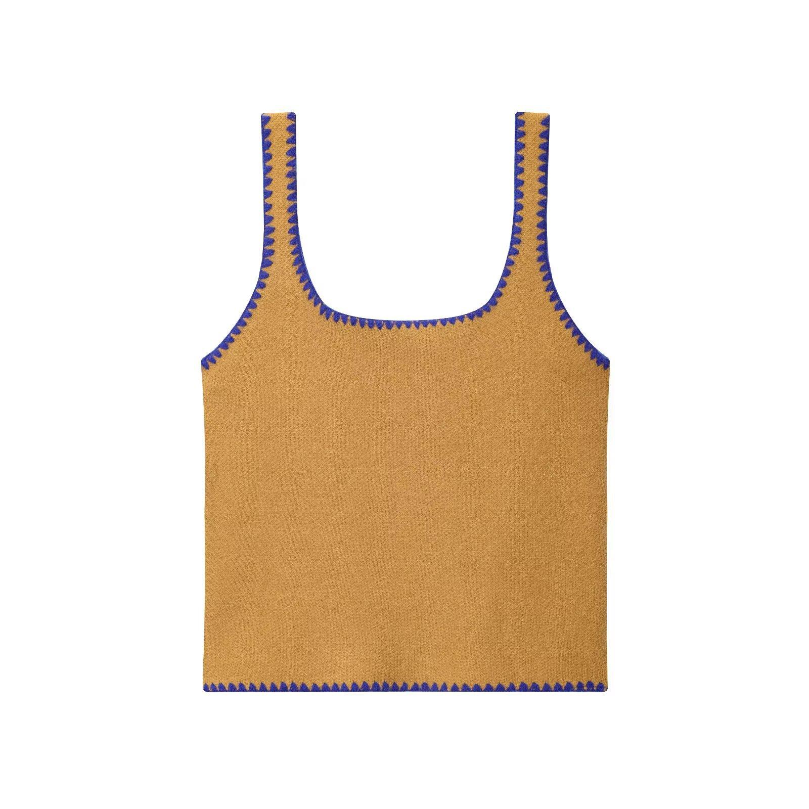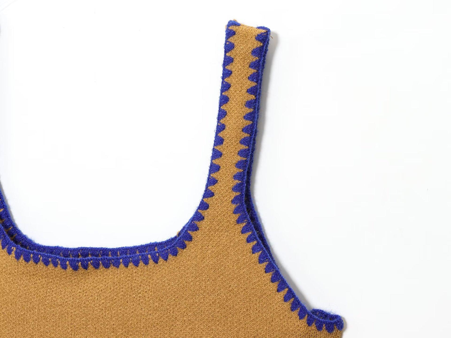 Chaleco Tejido de Punto para Mujer Europeo y Americano Retro de Cuello Cuadrado con Bloques de Color Bordado Estilo Coreano Ropa Interior Otoño e Invierno Capa Base