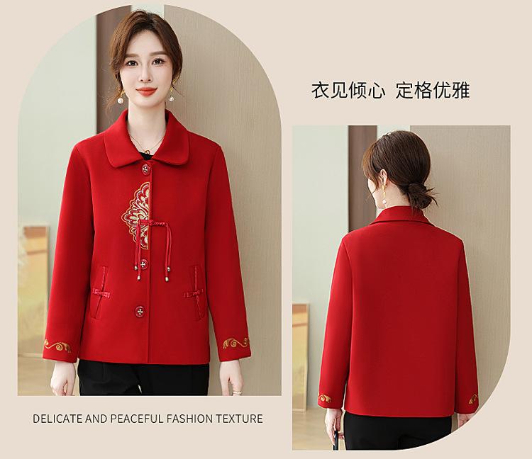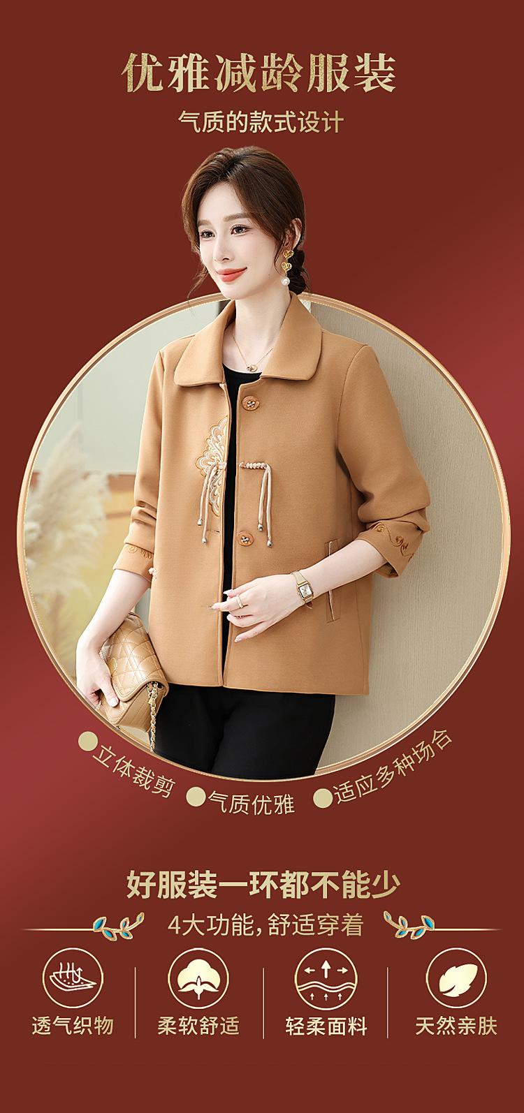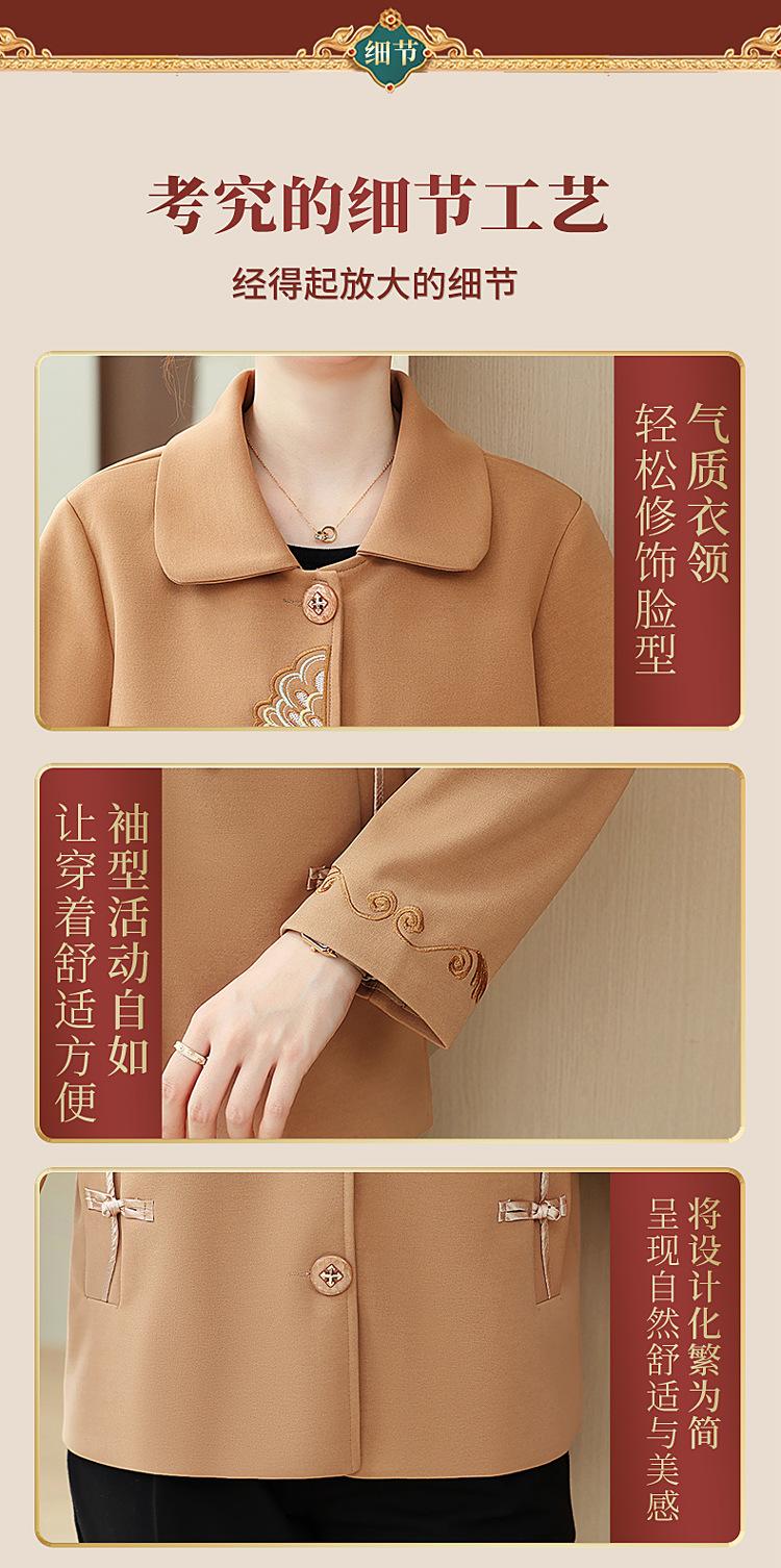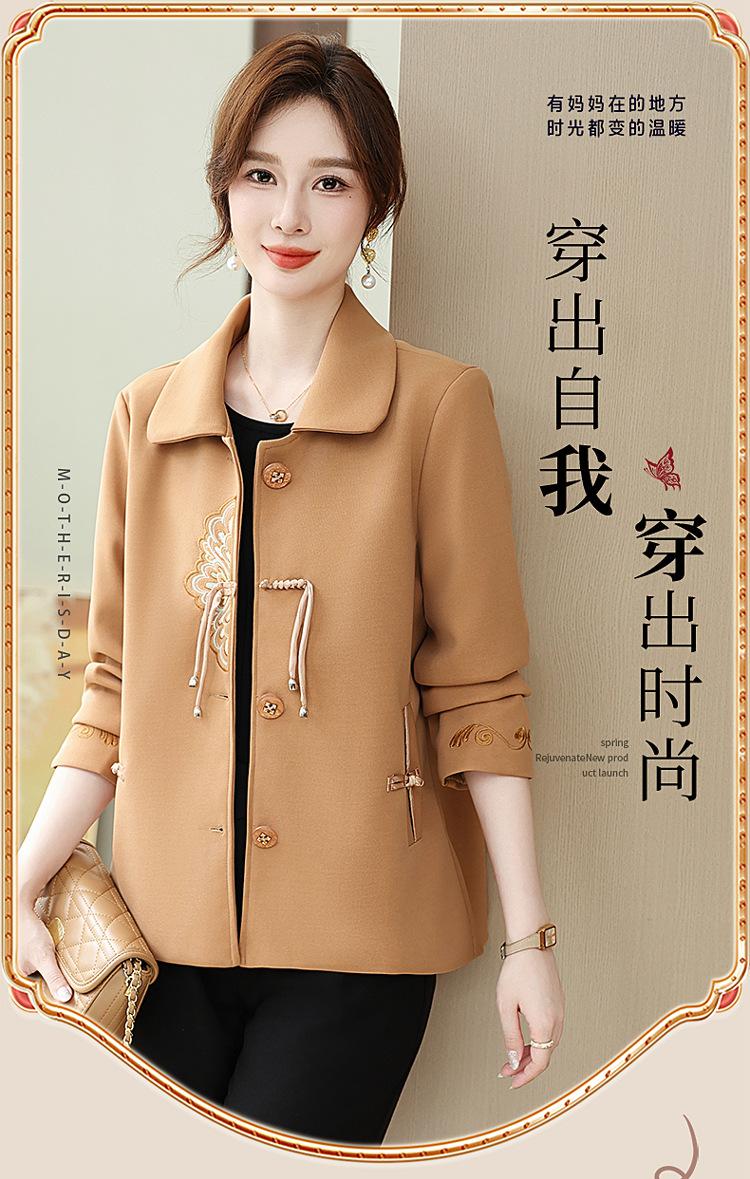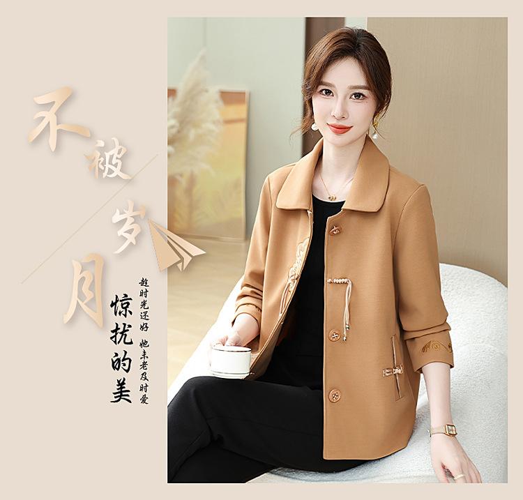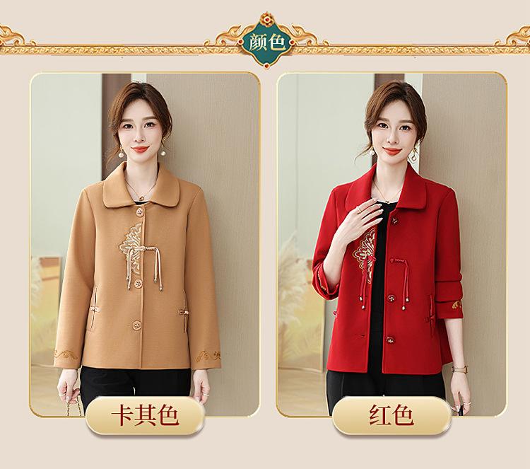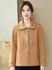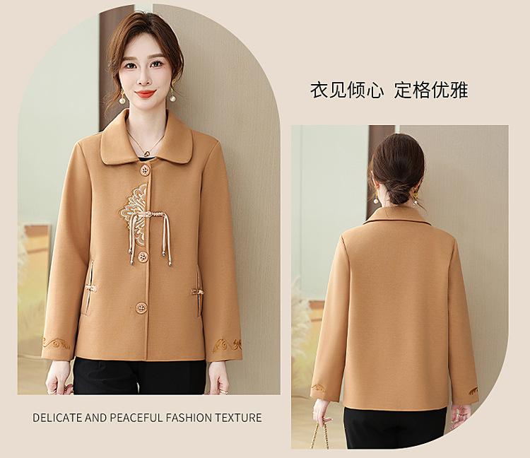 2025 Nuevo Estilo Ropa de Primavera para Mamá Abrigo de Lana Estilo Chino para Mujeres de Mediana Edad y Mayores Moda de Primavera y Otoño Top de Cuello Solapa