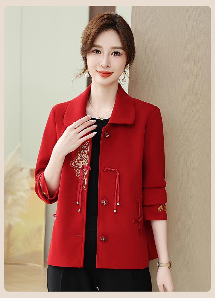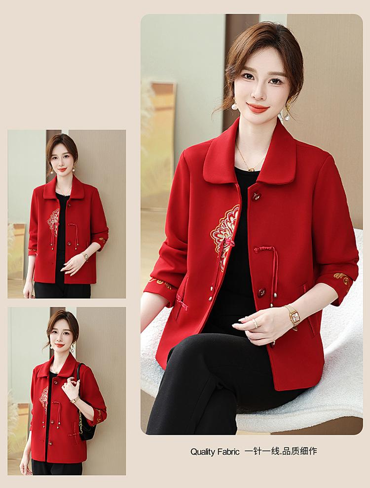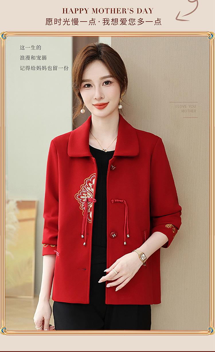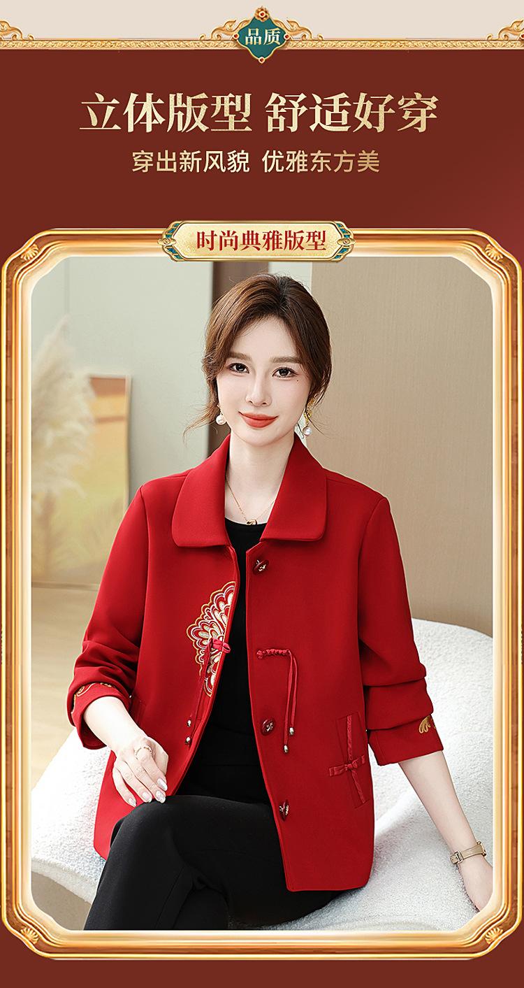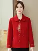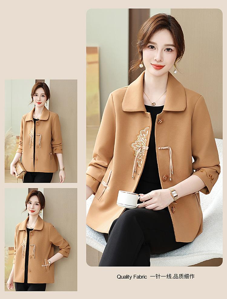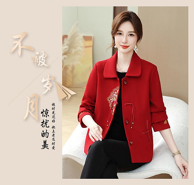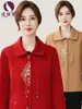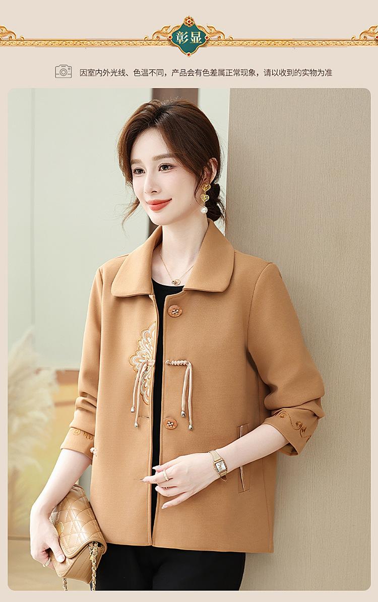 2025 Nuevo Estilo Ropa de Primavera para Mamá Abrigo de Lana Estilo Chino para Mujeres de Mediana Edad y Mayores Moda de Primavera y Otoño Top de Cuello Solapa
