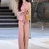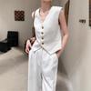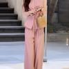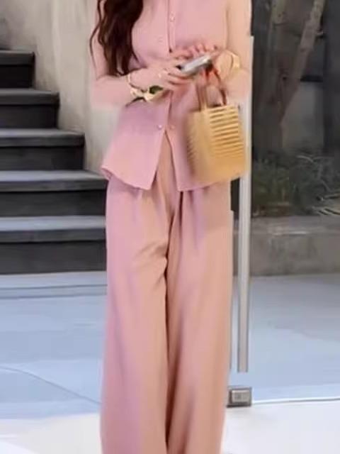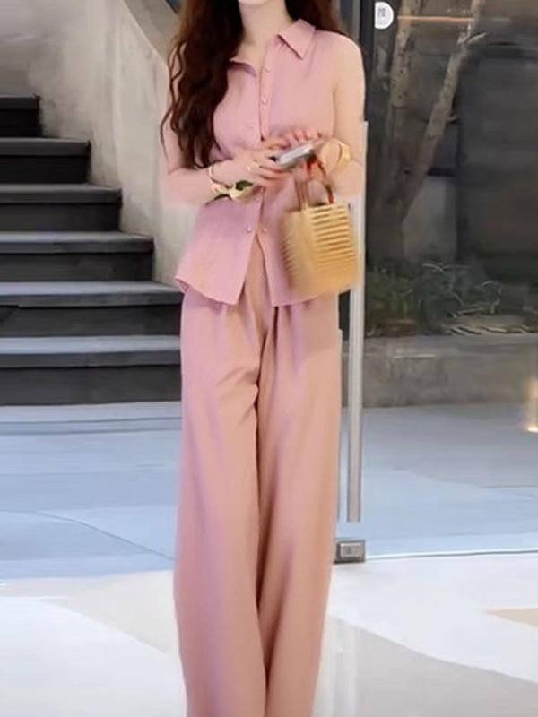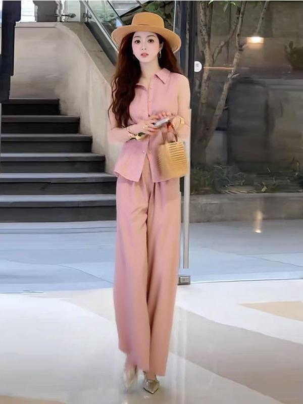 Traje de Moda de Verano Nuevo 2025 para Mujer Rosa Top sin Mangas con Solapa Pantalones de Pierna Ancha de Cintura Alta Conjunto de Dos Piezas
