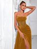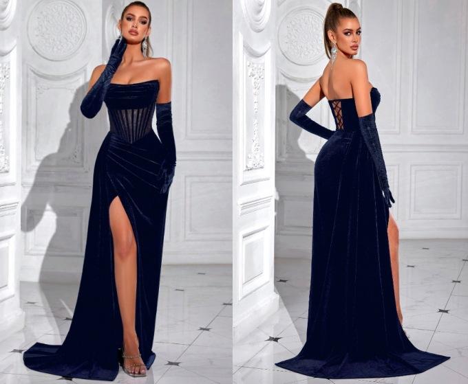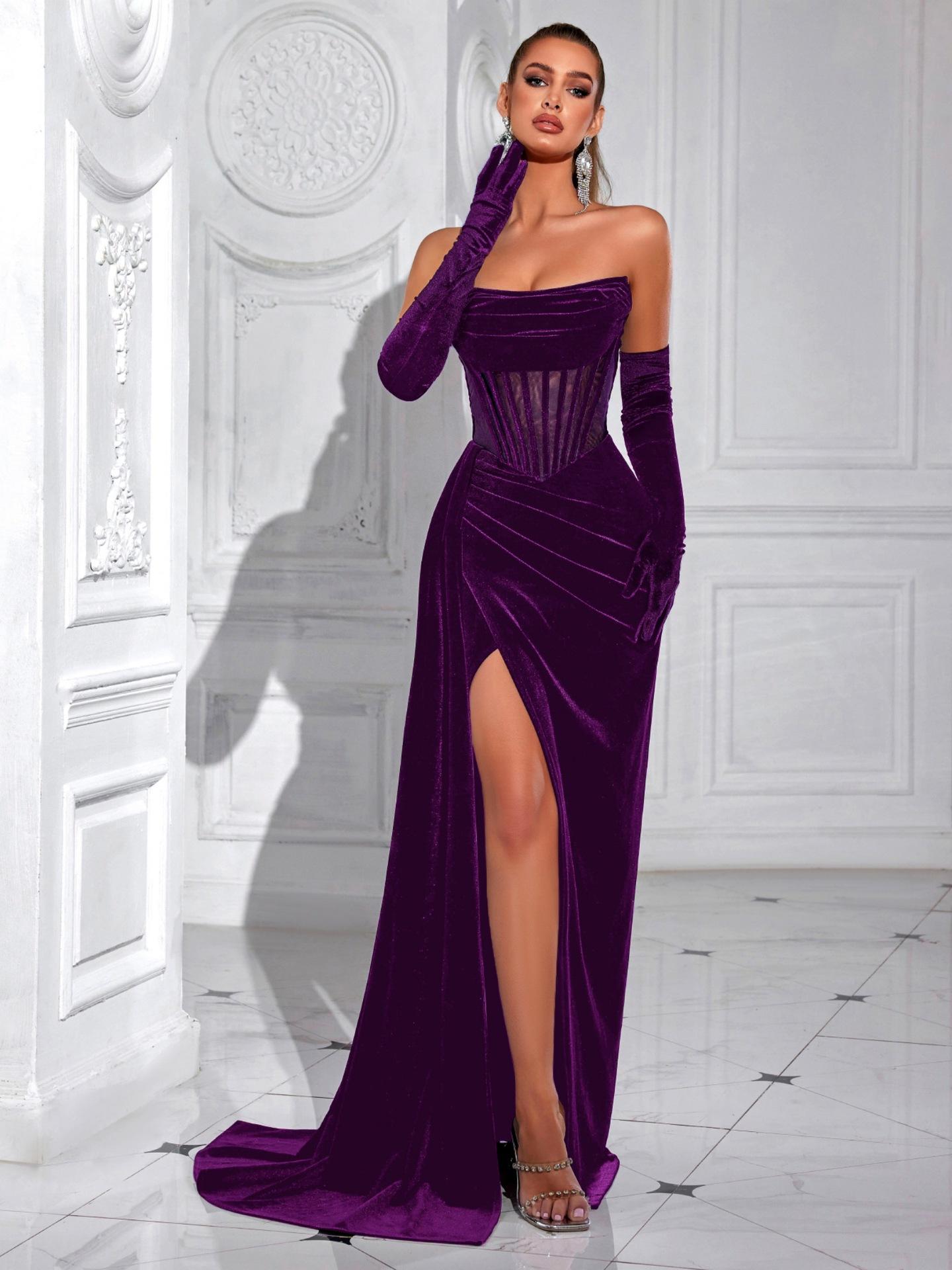 Nuevo vestido coreano de terciopelo transfronterizo sexy con tirantes de espiguilla vestido de noche de banquete sin tirantes vestido largo de alta gama al por mayor