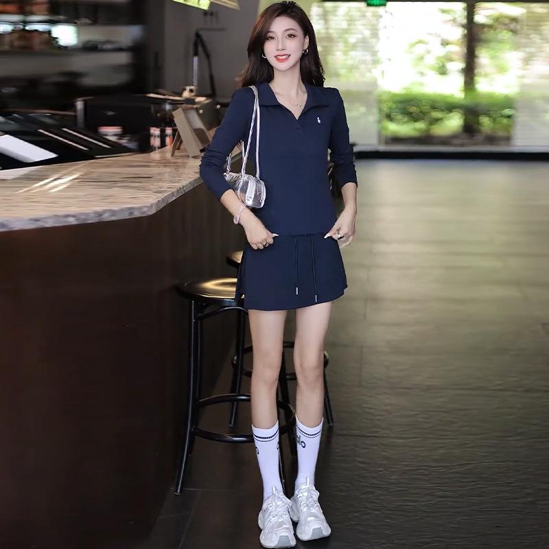Conjunto casual de moda para mujer 2025 otoño nuevo estilo moderno adelgazante top tipo polo y conjunto de dos piezas de falda/pantalón