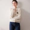 Cárdigan de Cachemira para Mujer 100% Cachemira Pura Otoño e Invierno Nuevo Cuello Redondo Calado Moda Manga Larga Suéter Tejido Abrigo