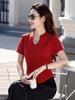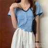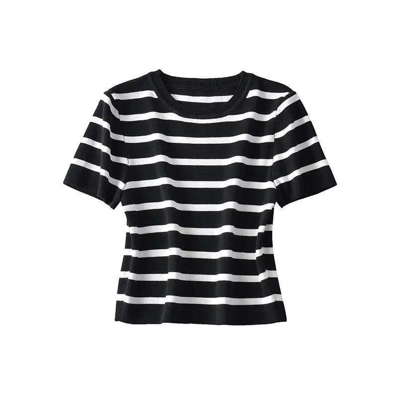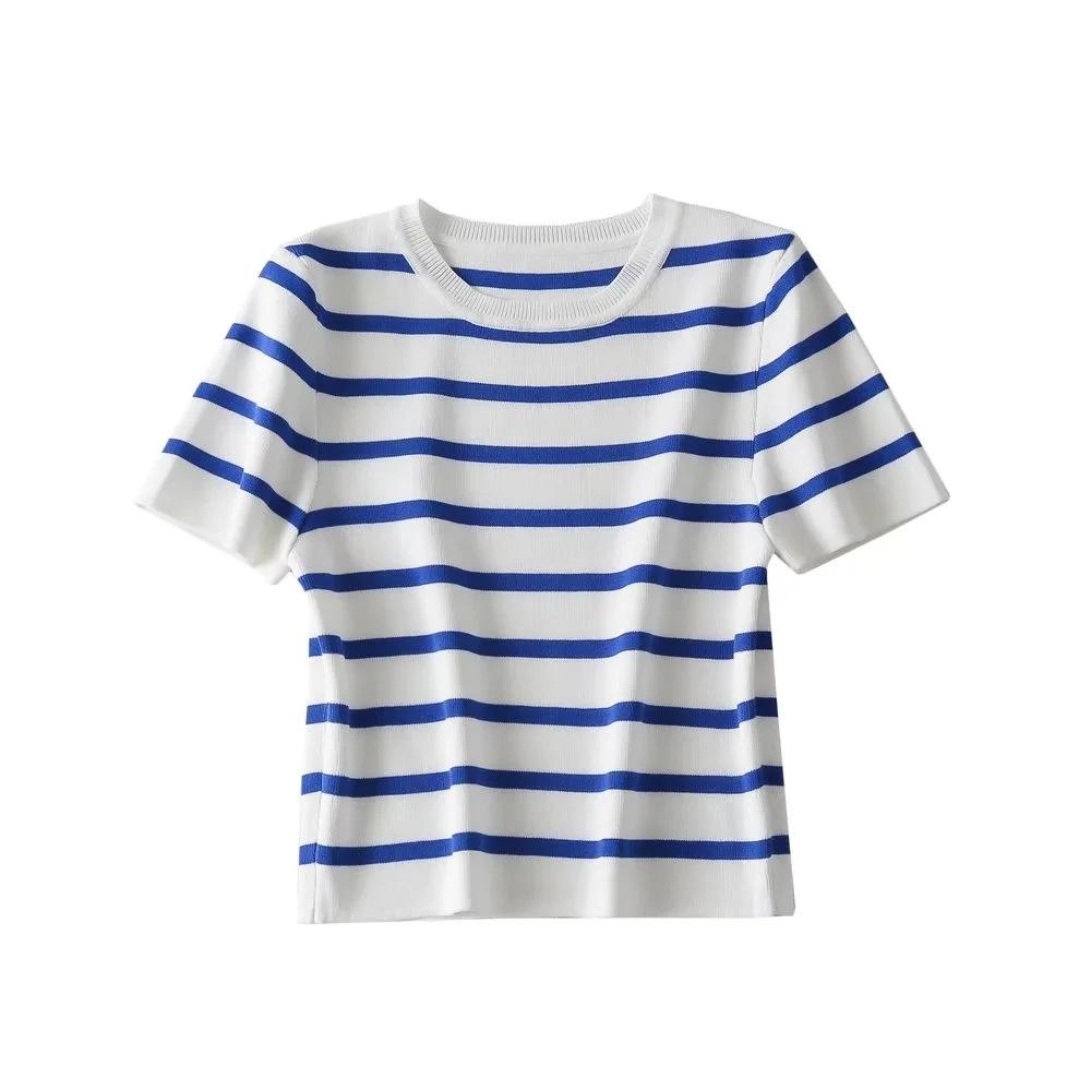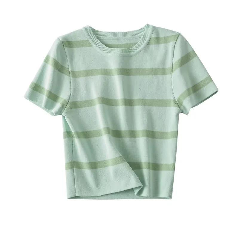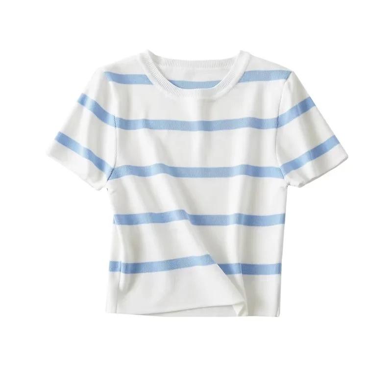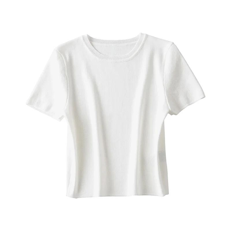 Verano 2025 para Mujer Europeo y Americano Cuello Redondo Manga Corta Slim Corto Suéter de Punto Camisetas Tops para Mujer 10 Colores