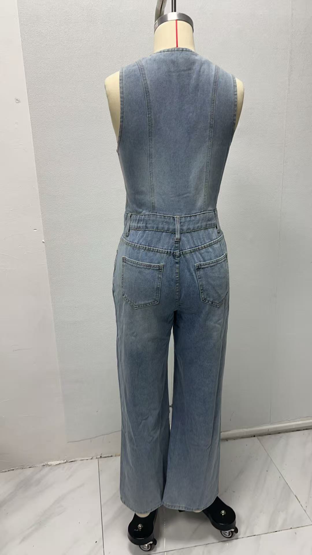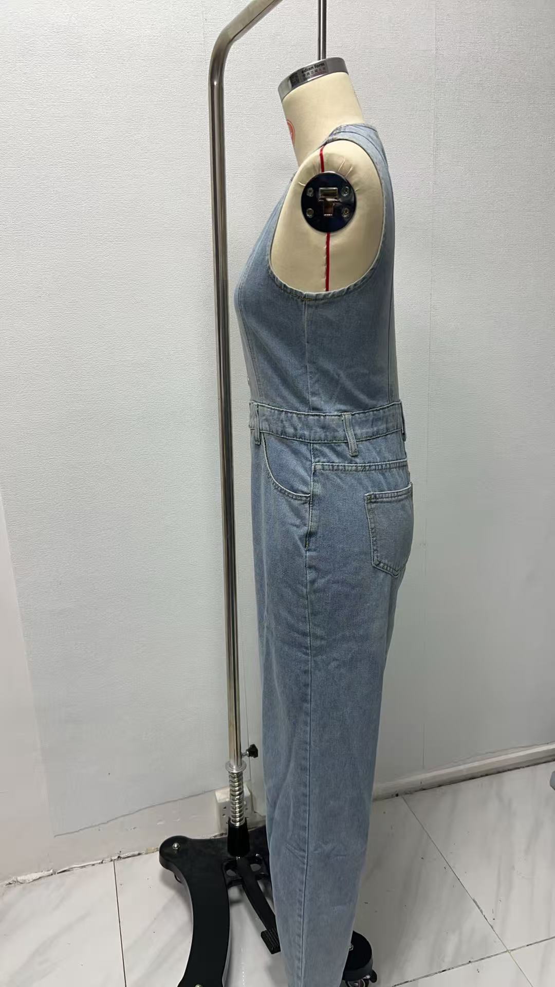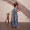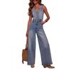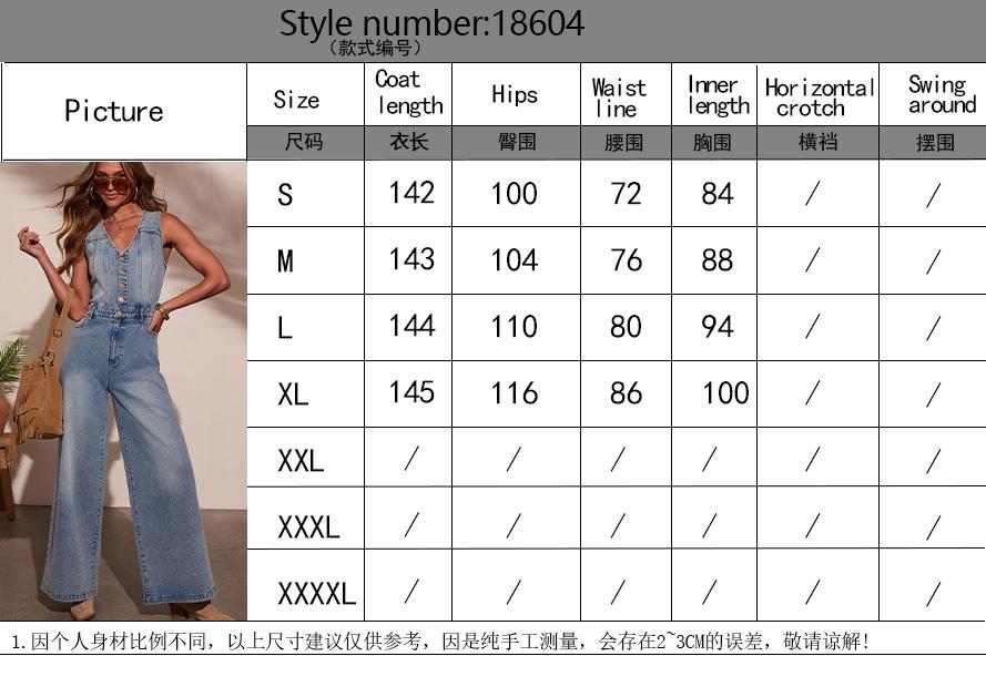 2025 Transfronterizo Amazon Verano Americano Nuevo Mono Casual de Mezclilla sin Mangas con Cuello en V para Mujer