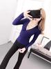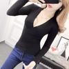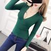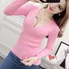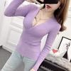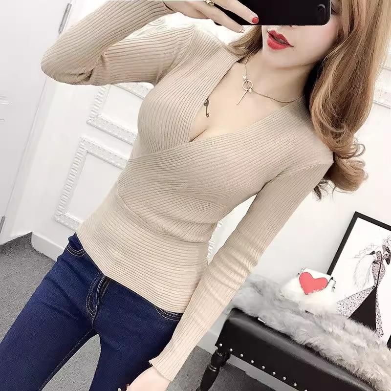 2025 Primavera y Otoño Nuevo Suéter de Punto de Manga Larga con Cuello en V Cruzado Ajustado Sexy para Mujer Estilo Coreano Camiseta Base Delgada