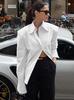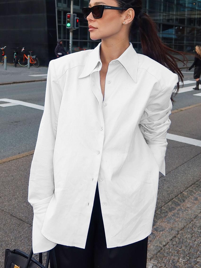 Otoño/Invierno 2025 Nuevo Diseño de Camisa de Manga Larga para Mujer de Gama Alta Sentido del Diseño Temperamento Blusa Simple Versátil Desplazamiento Transfronterizo