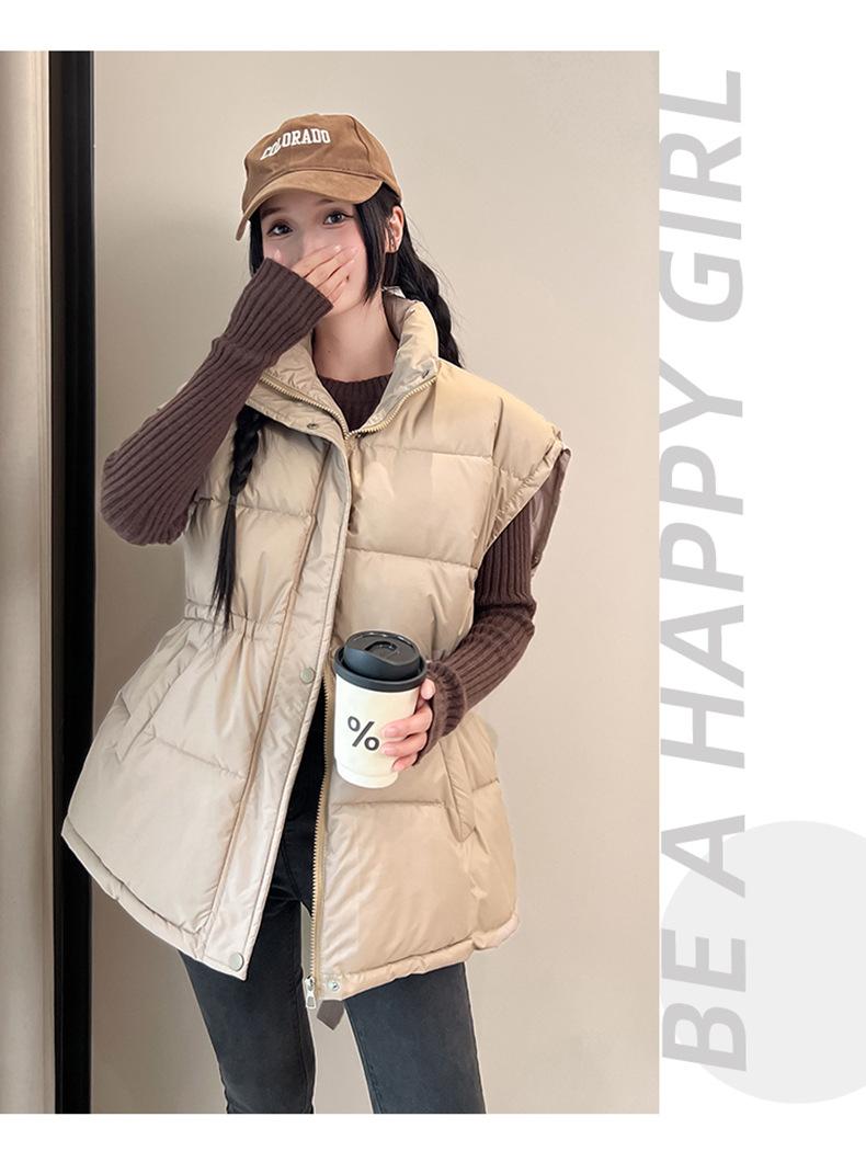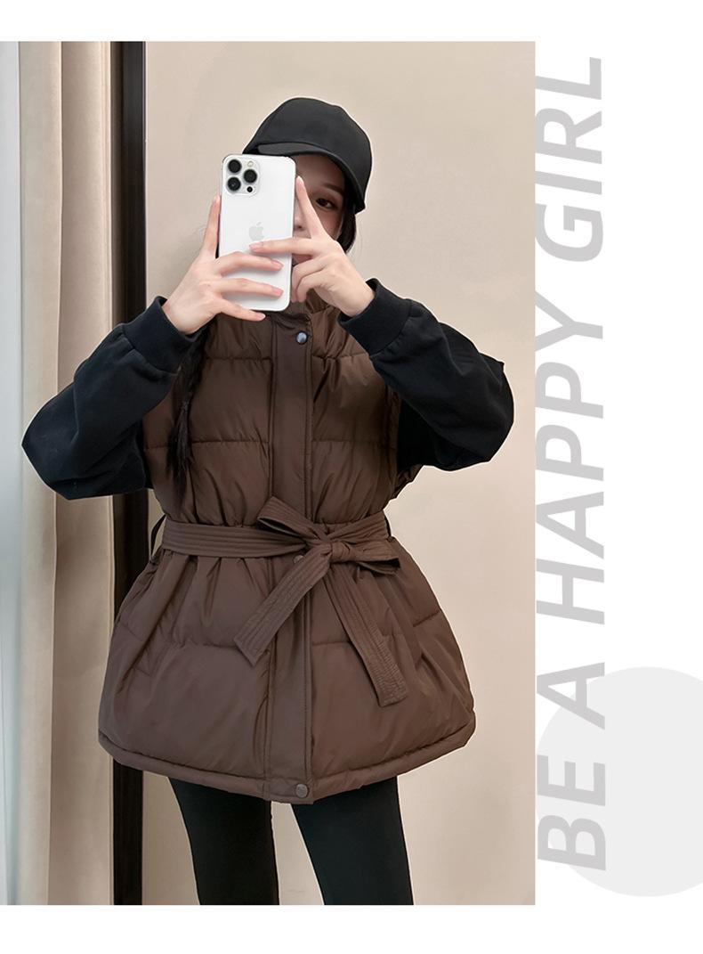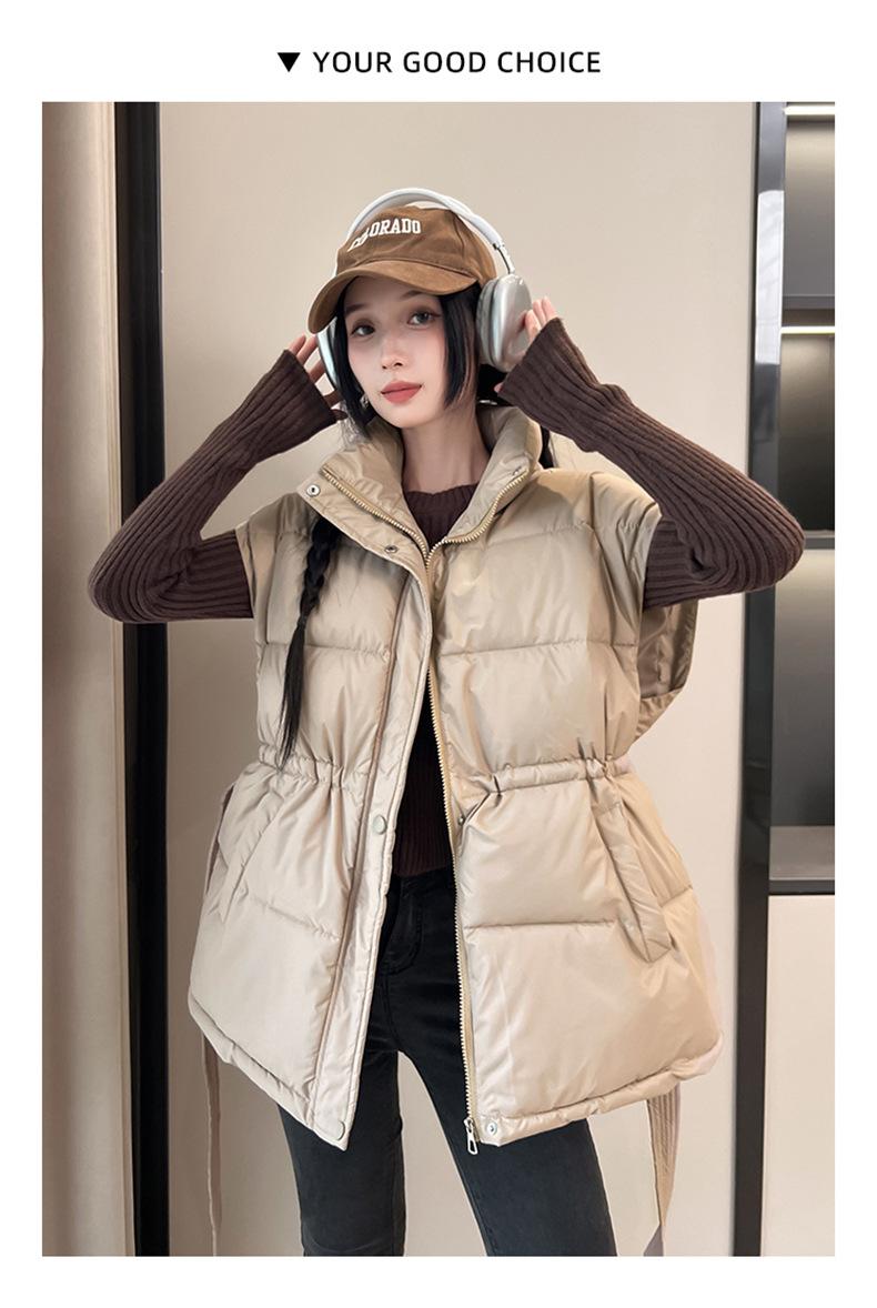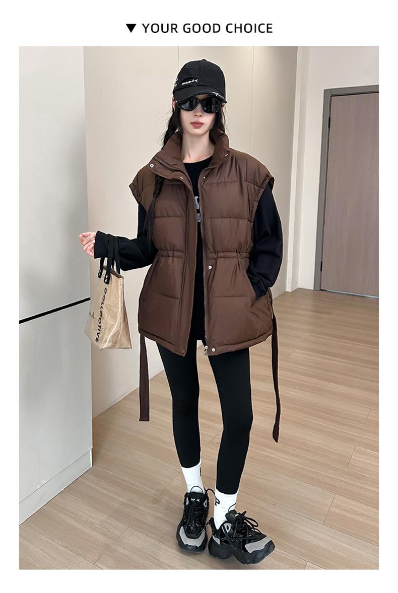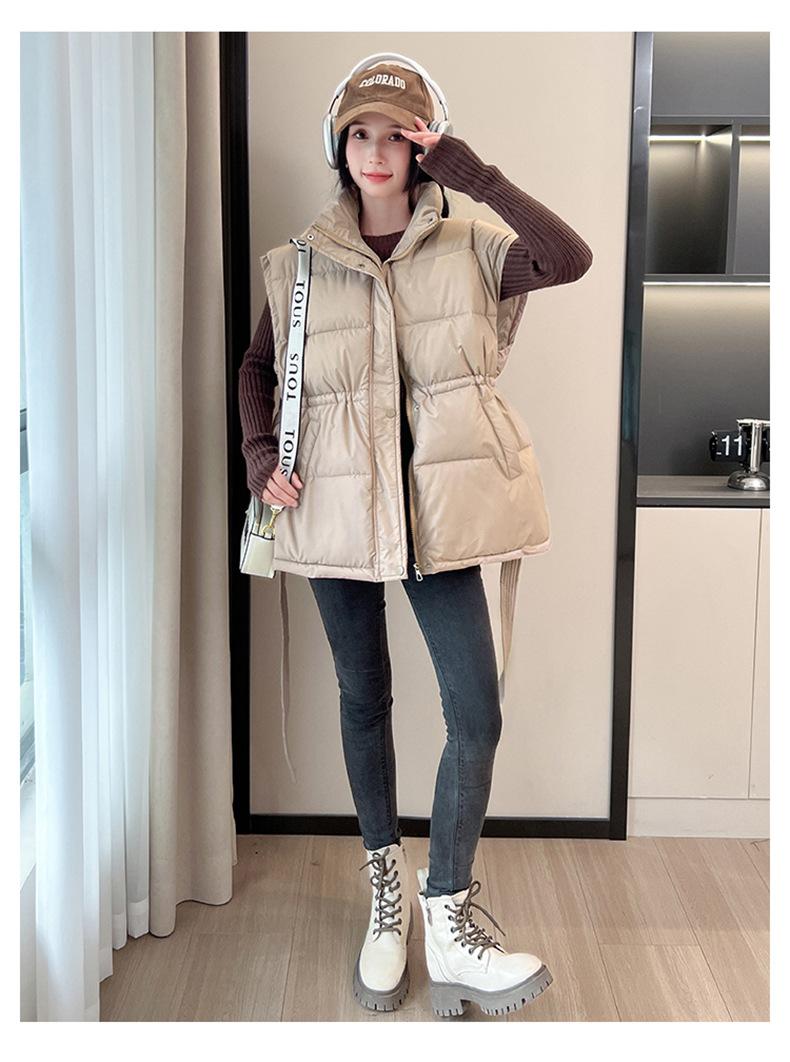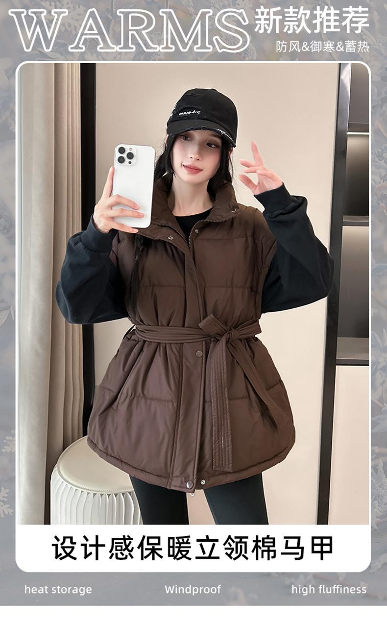 Chaleco de algodón entallado para mujer, nuevo estilo otoño e invierno, cuello alto, versión coreana 2025, holgado, a la moda, grueso, ropa exterior elegante