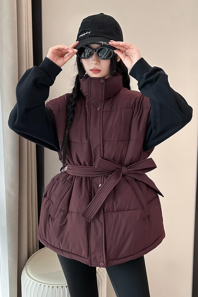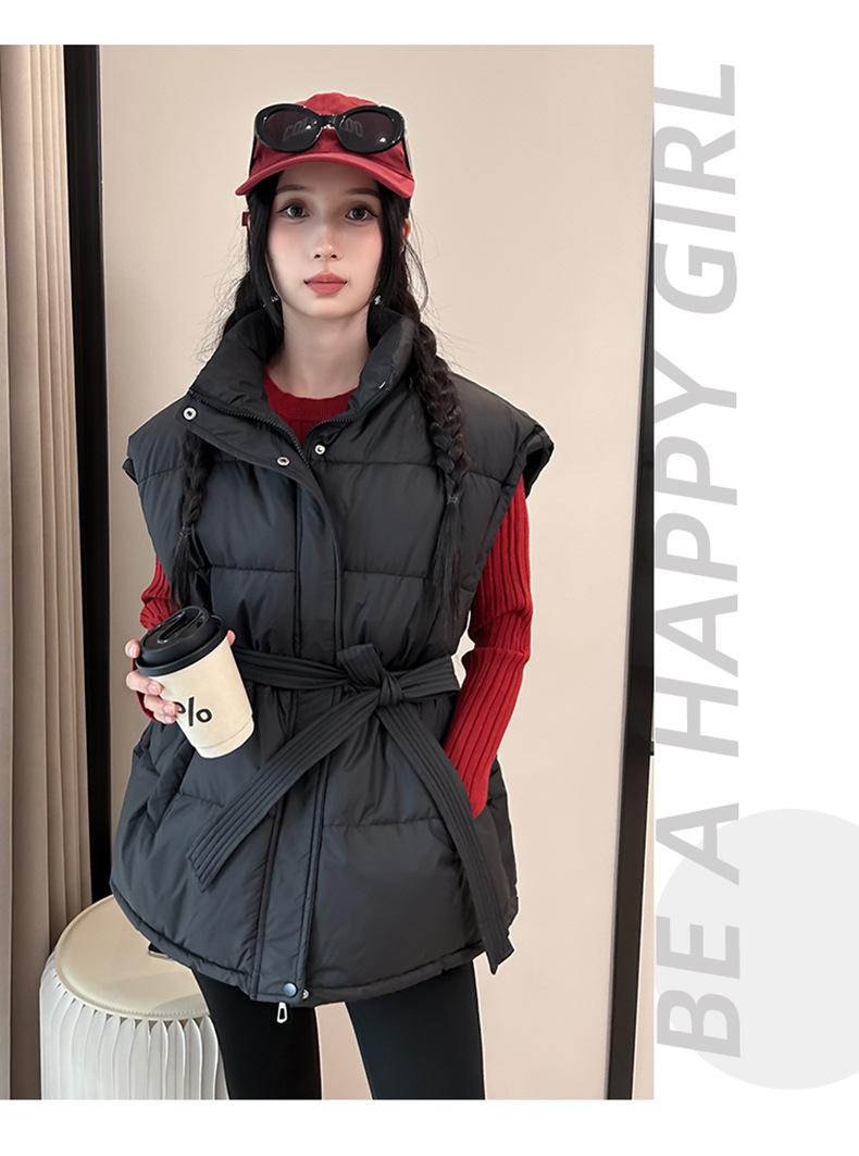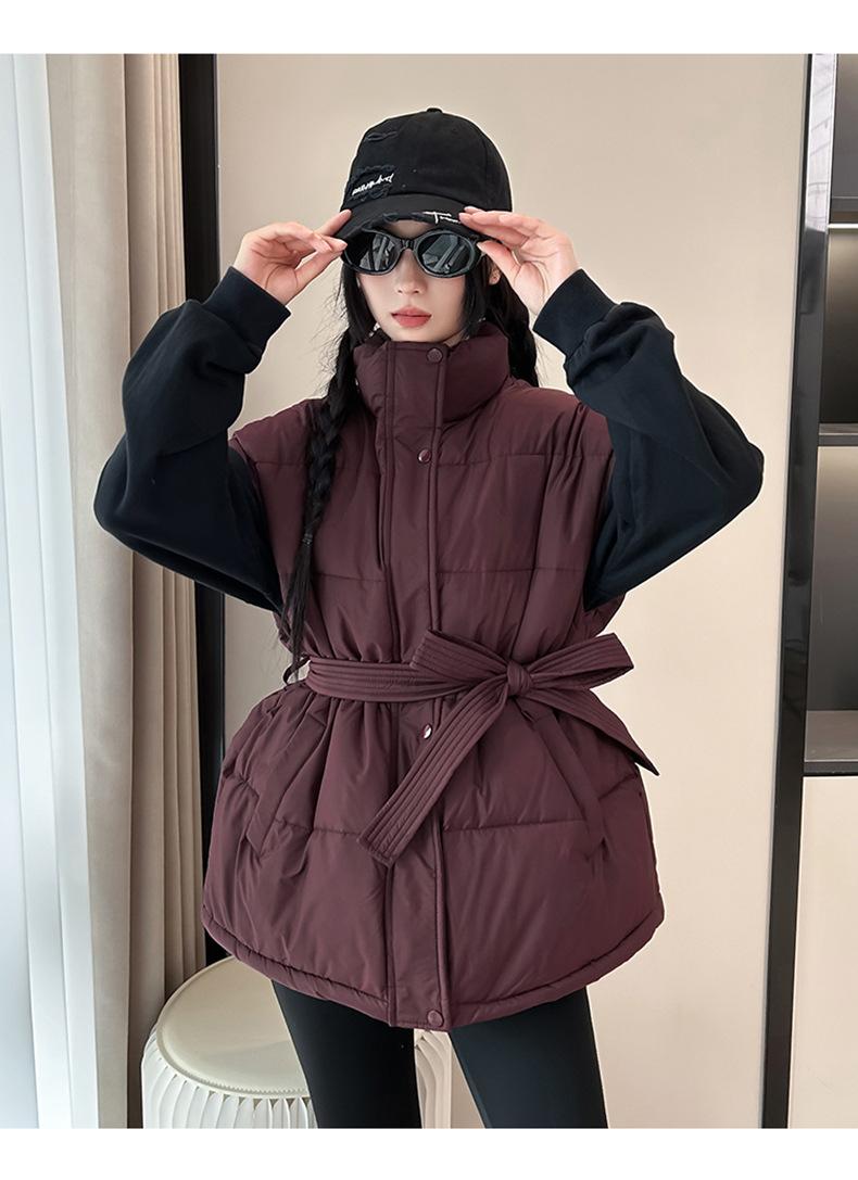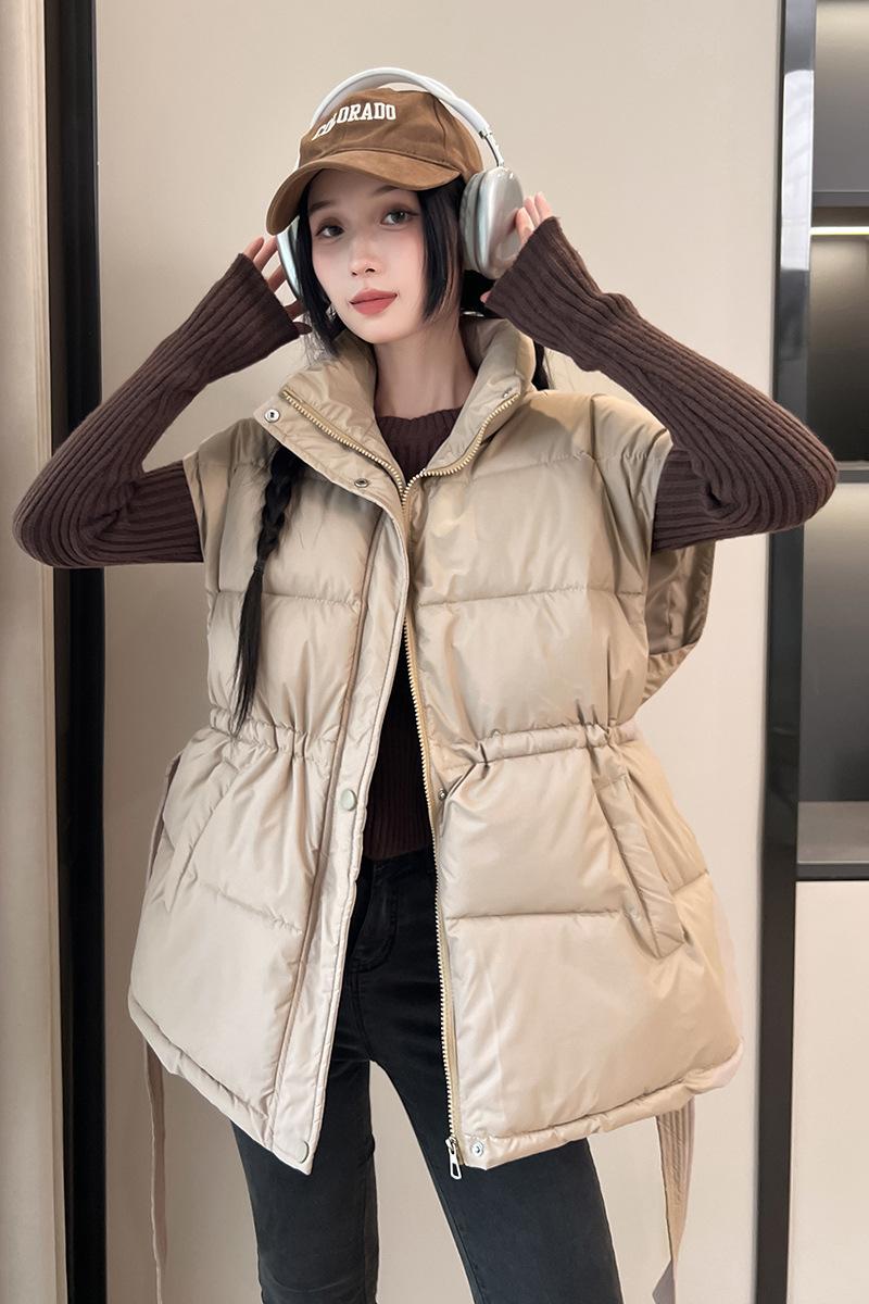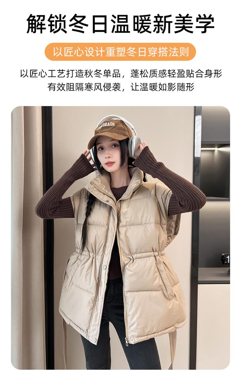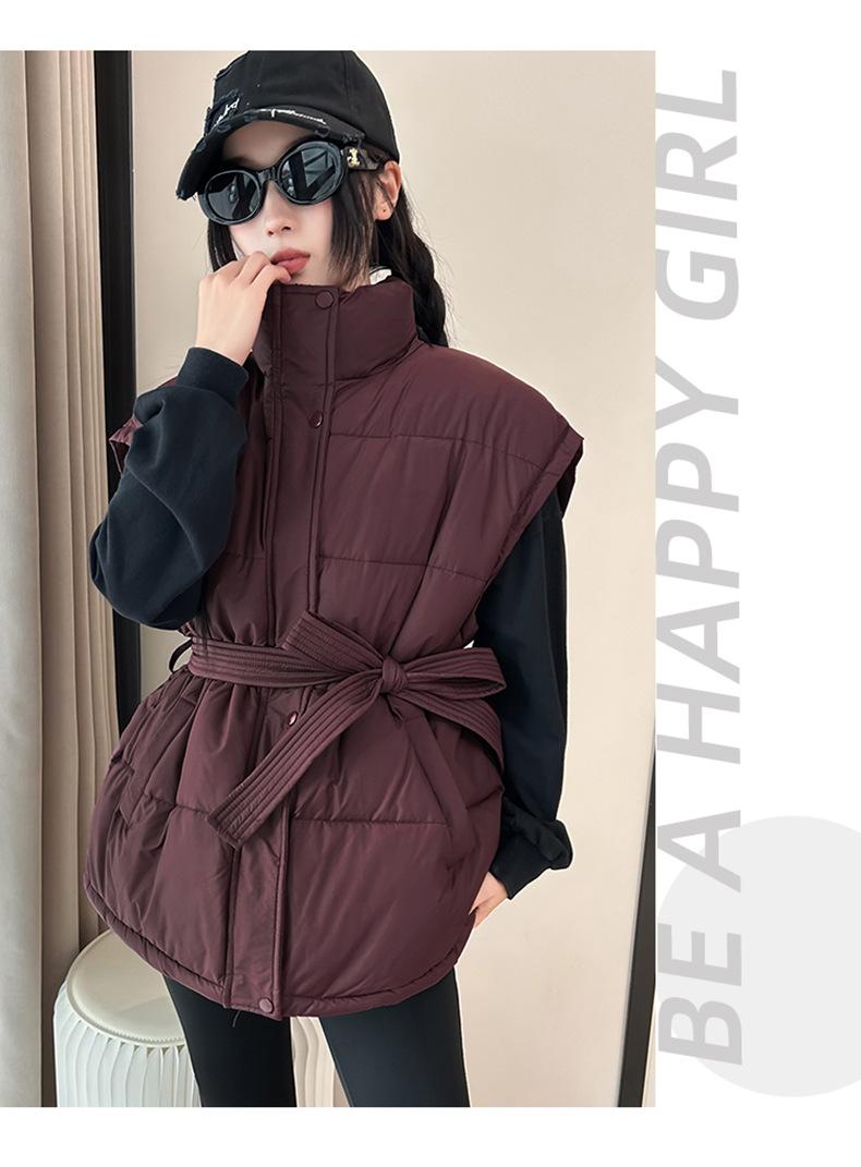 Chaleco de algodón entallado para mujer, nuevo estilo otoño e invierno, cuello alto, versión coreana 2025, holgado, a la moda, grueso, ropa exterior elegante