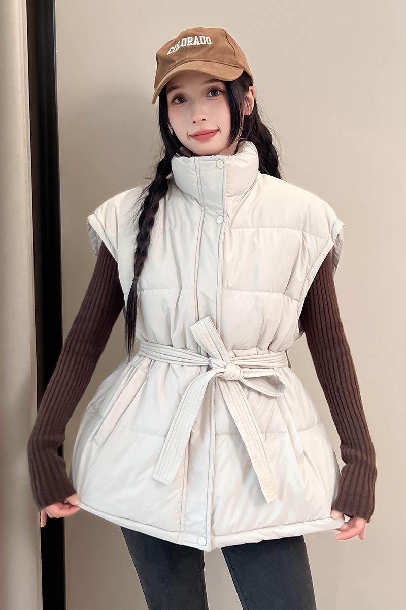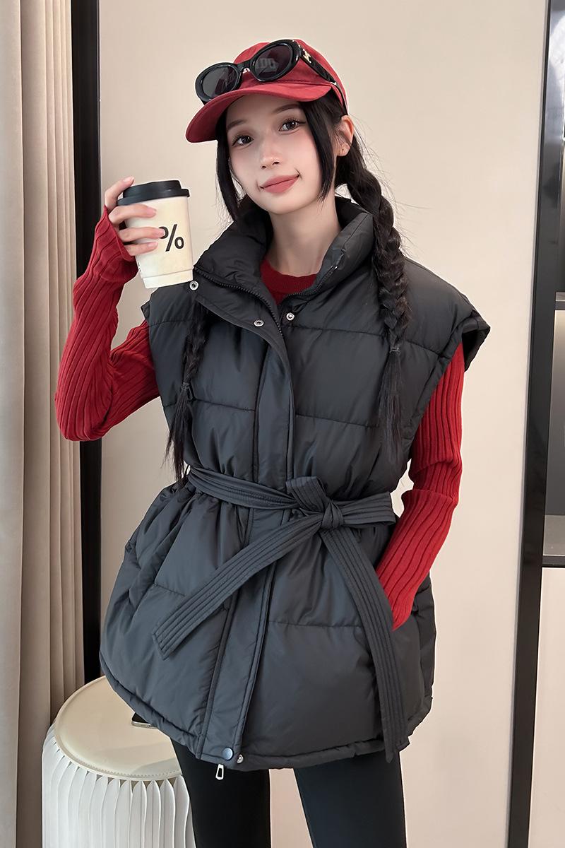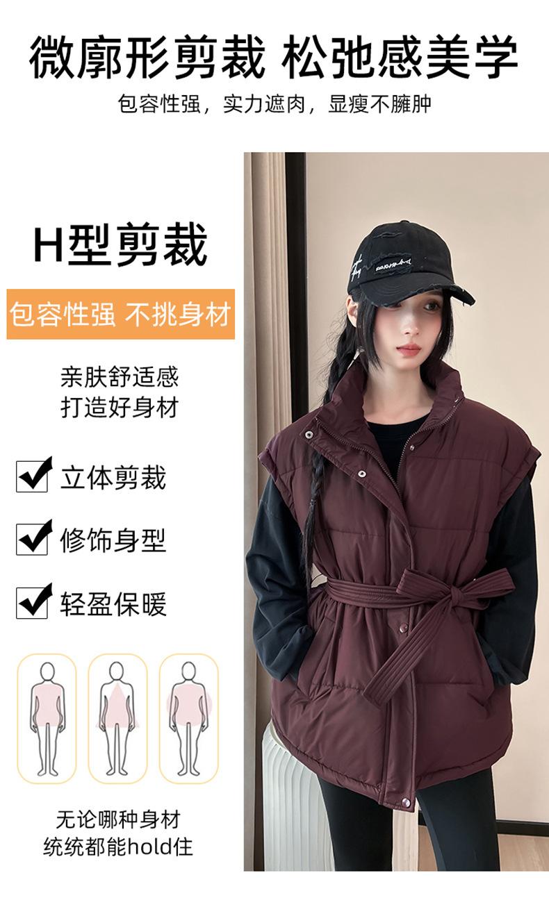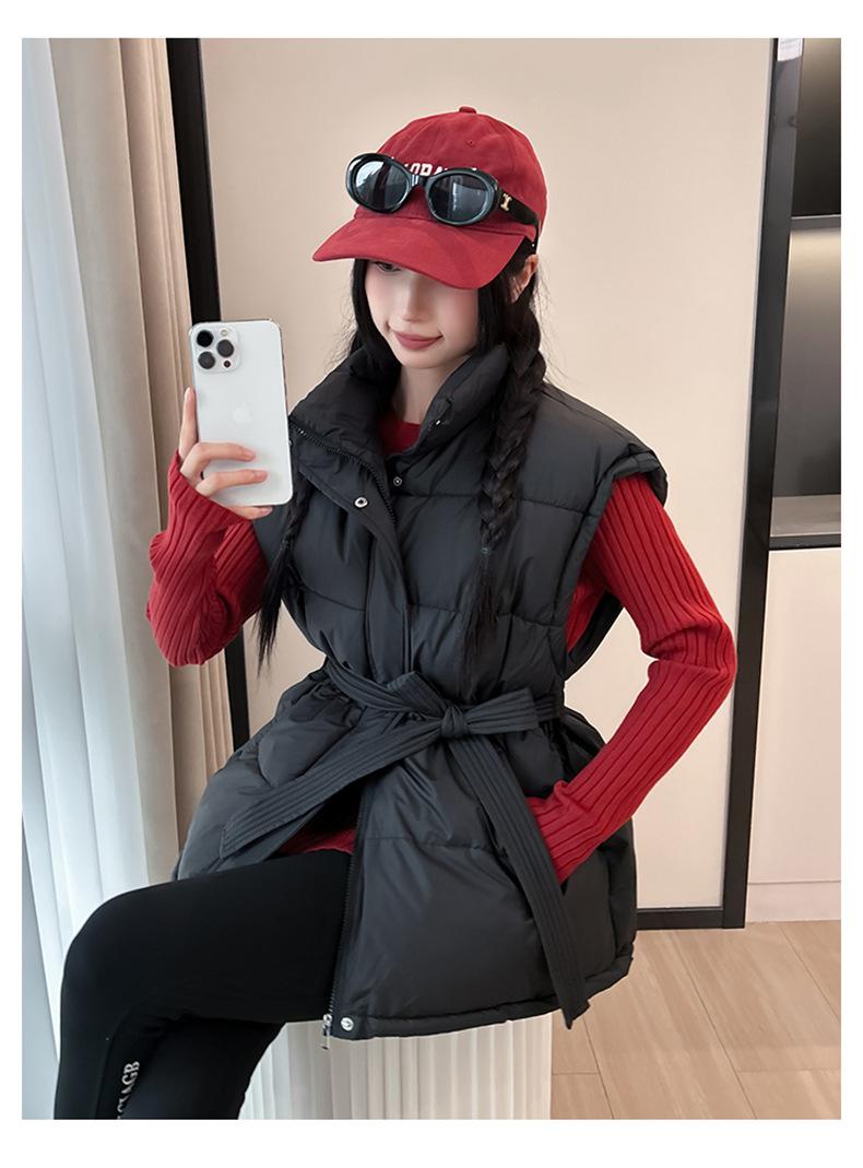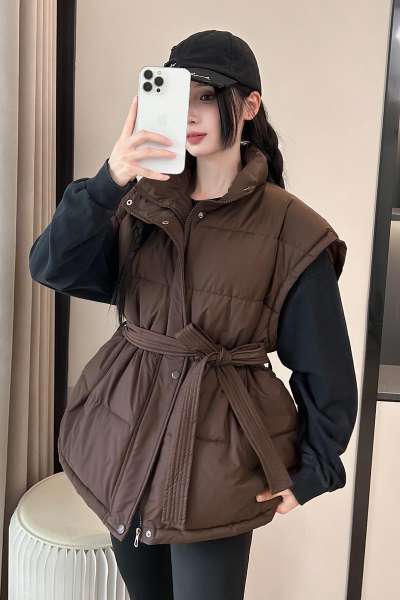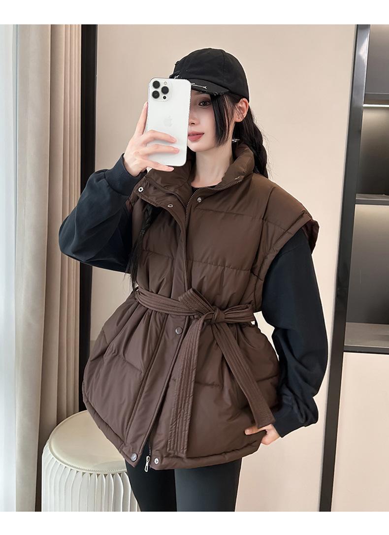 Chaleco de algodón entallado para mujer, nuevo estilo otoño e invierno, cuello alto, versión coreana 2025, holgado, a la moda, grueso, ropa exterior elegante