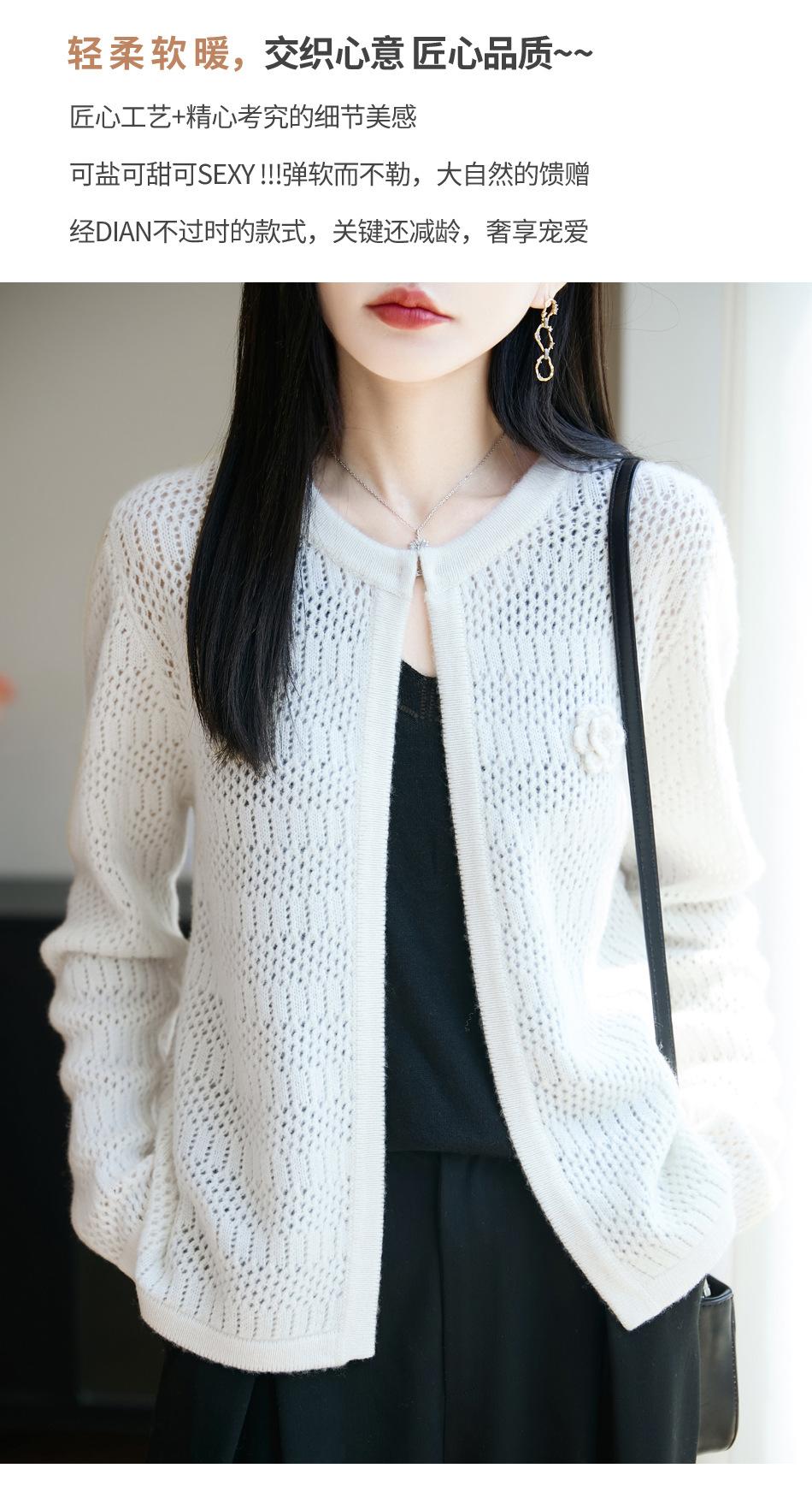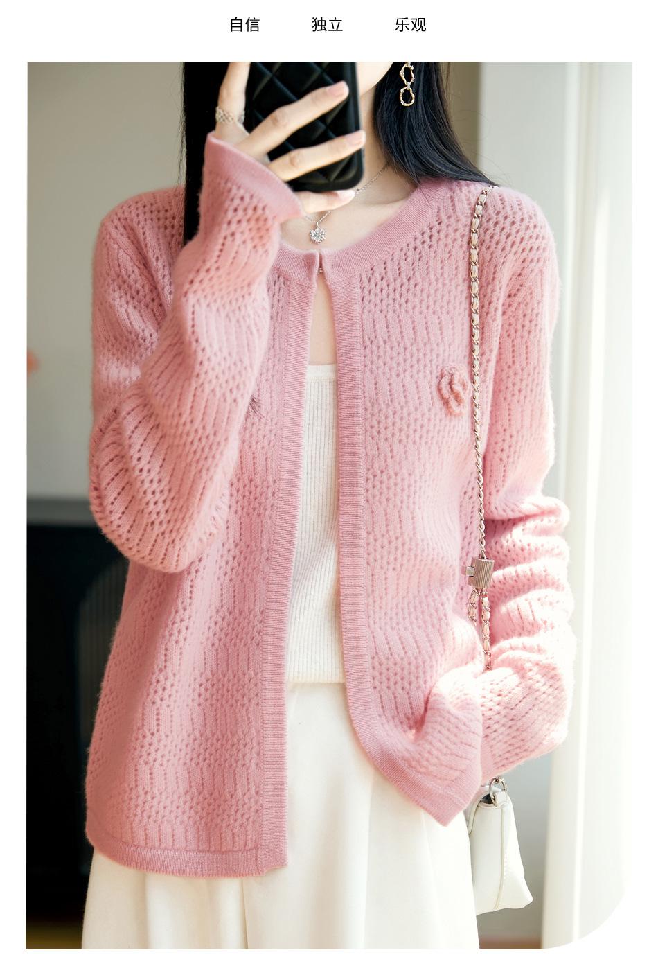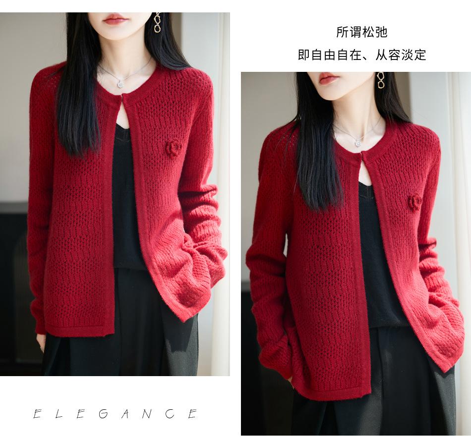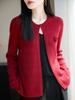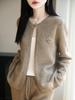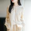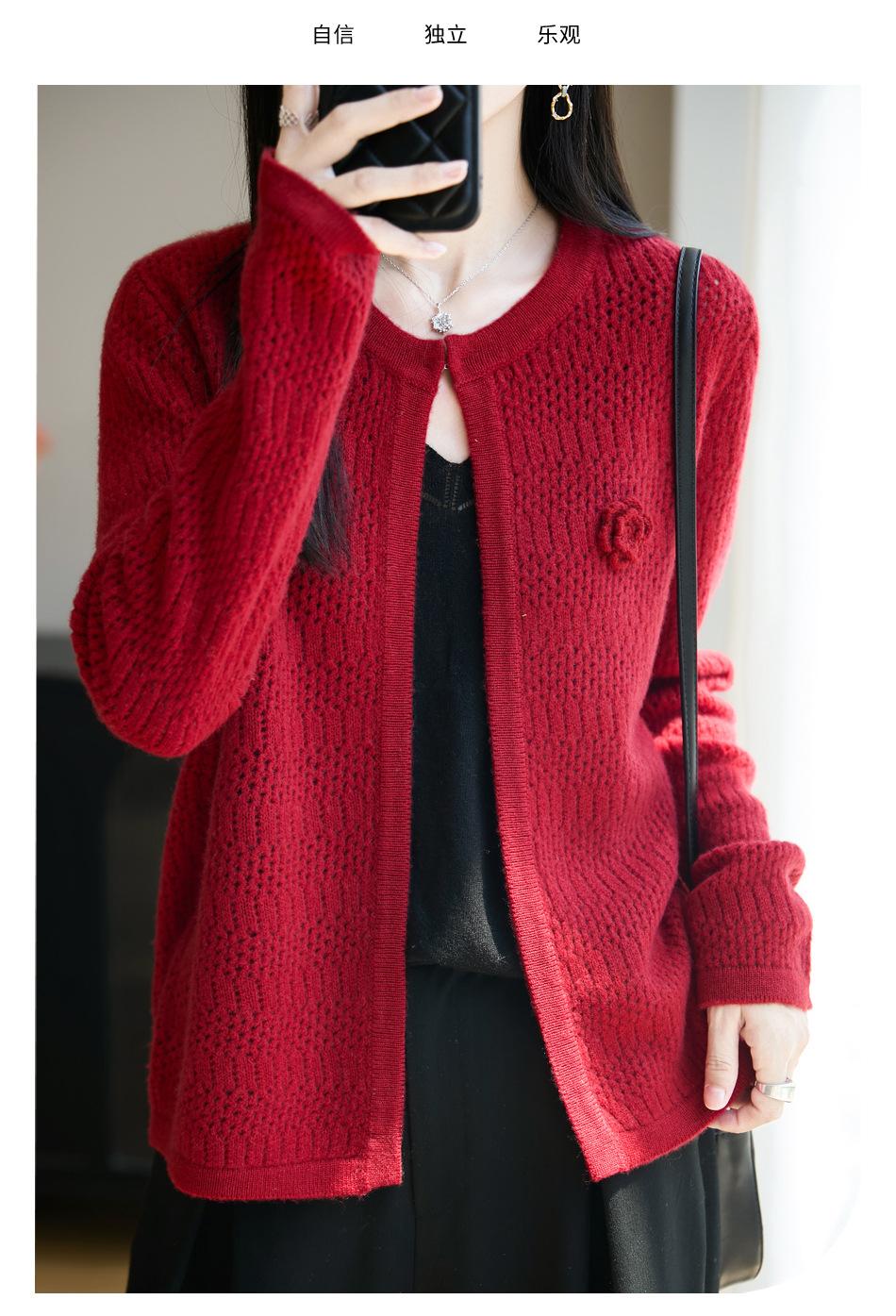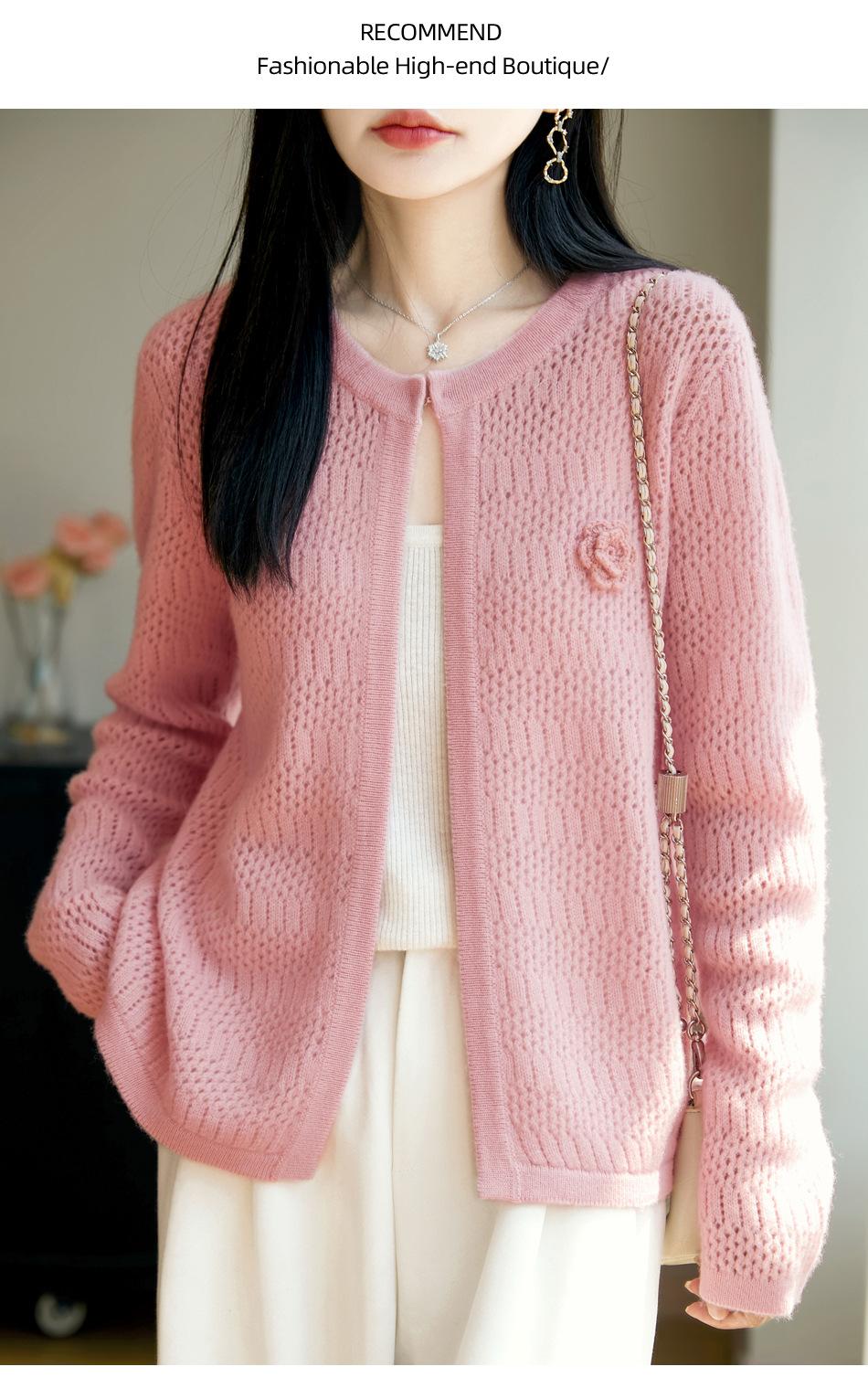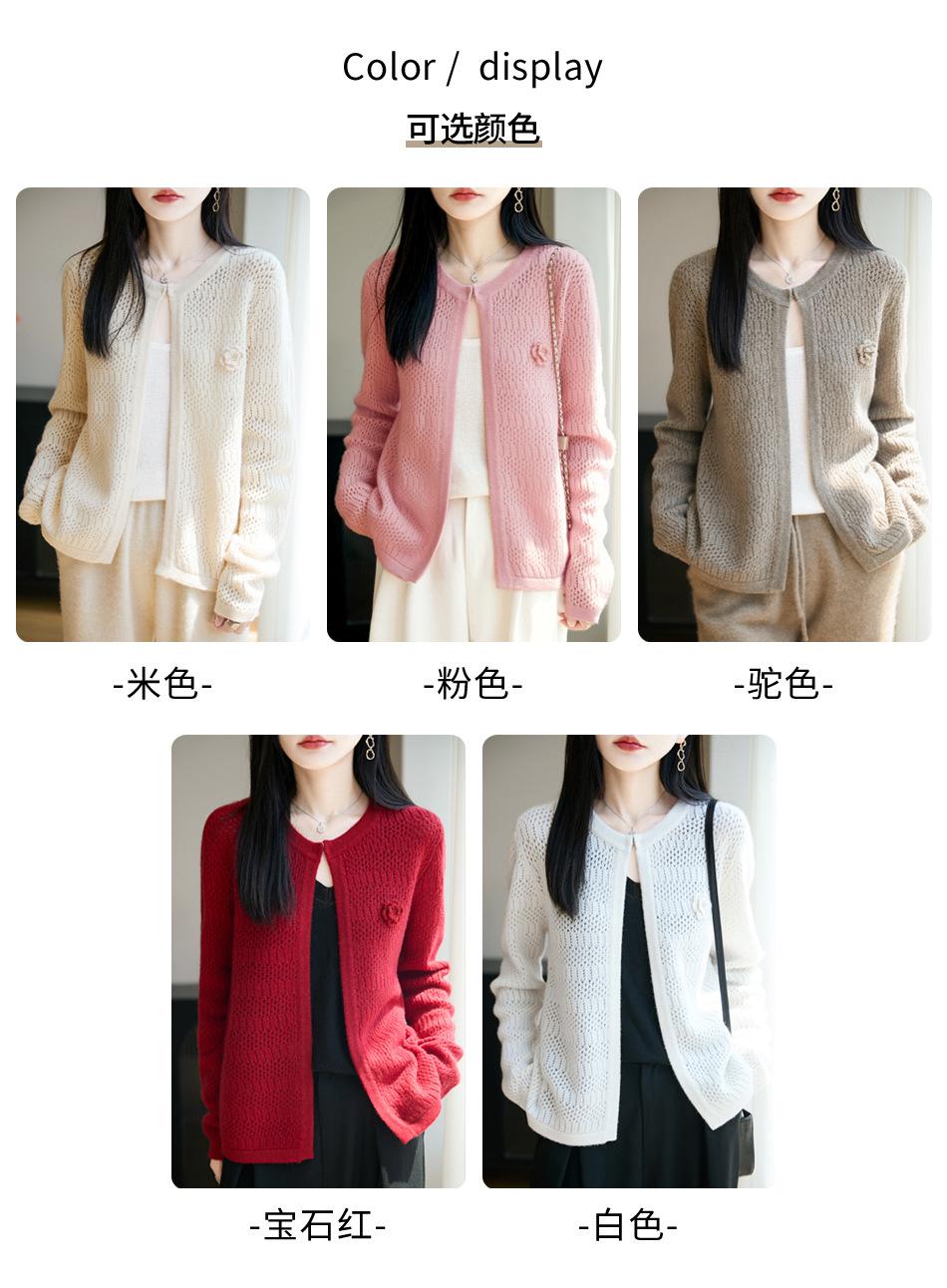 Cárdigan de Punto de Lana Pura Estilo Nuevo 2025 para Mujer Cuello Redondo Calado Flores Bordadas Sin Botones Manga Larga Suelta Abrigo Base