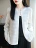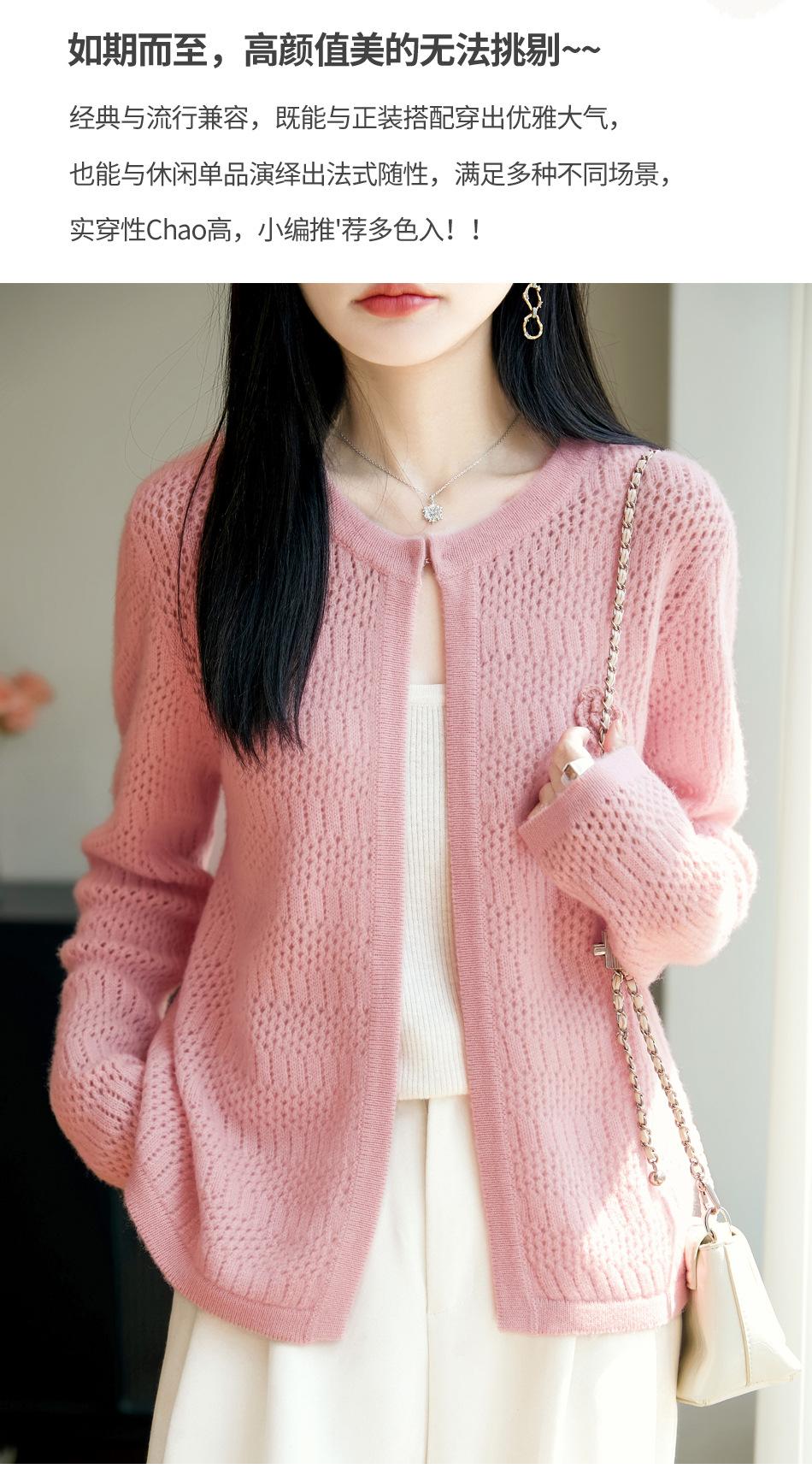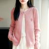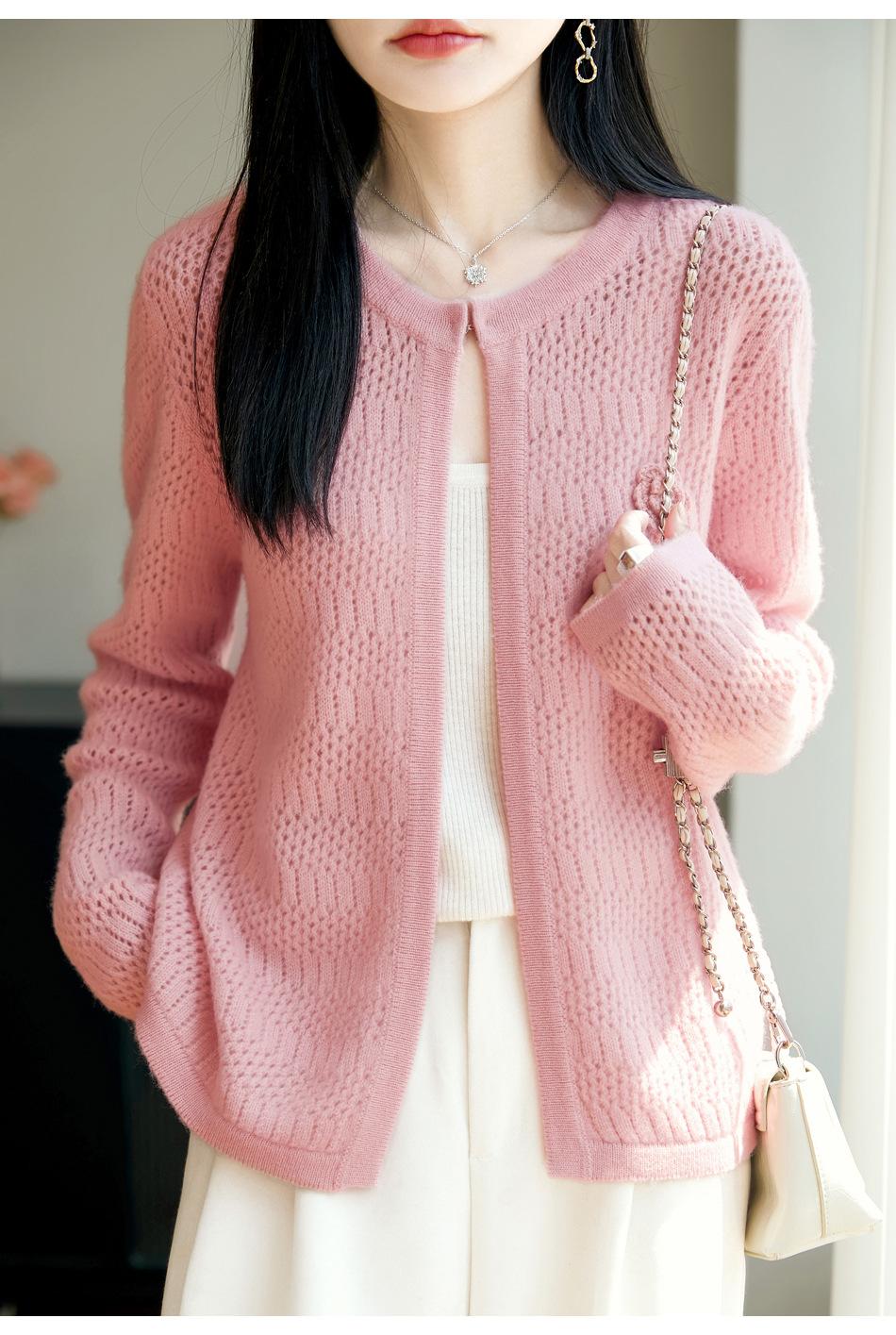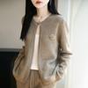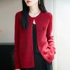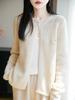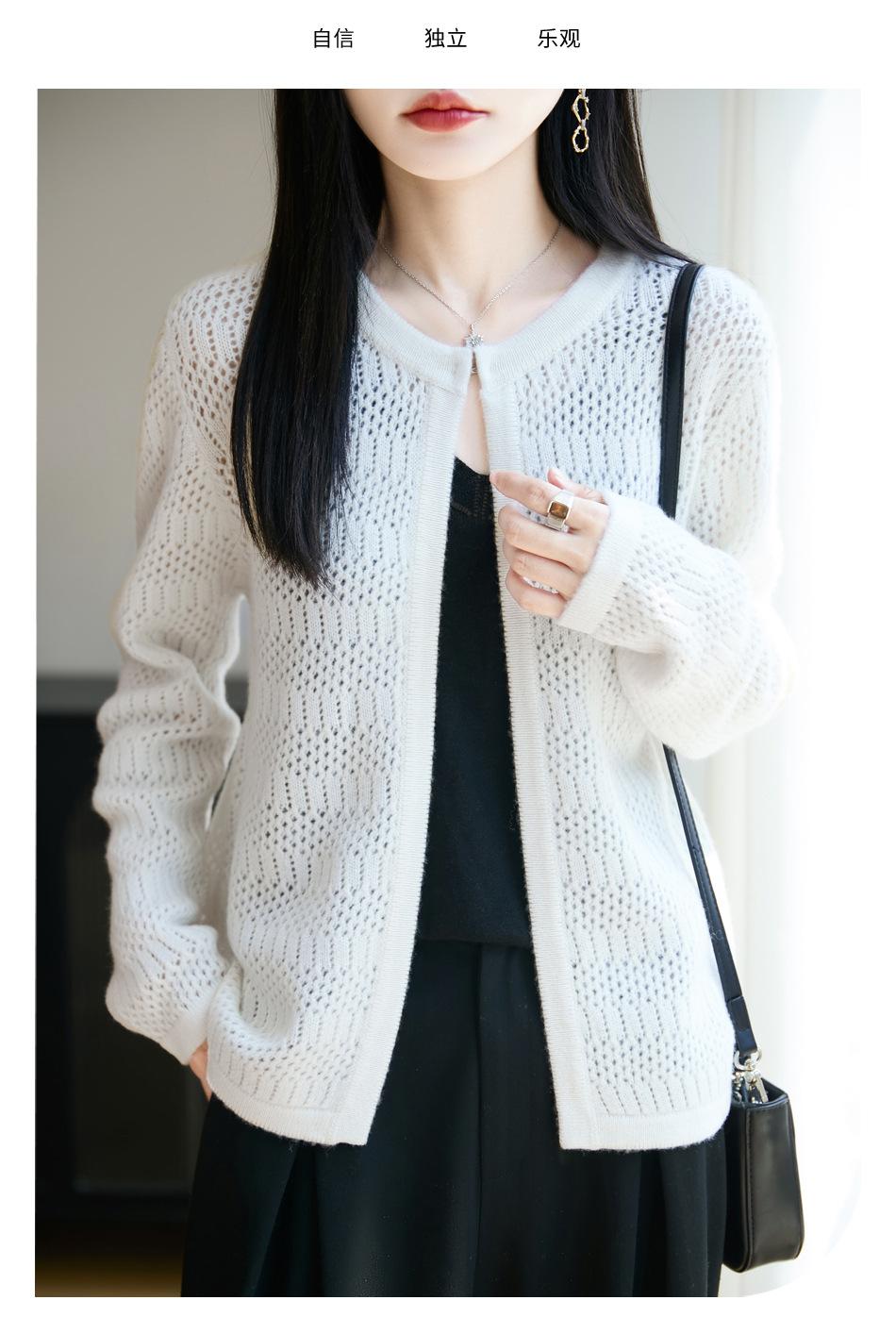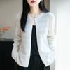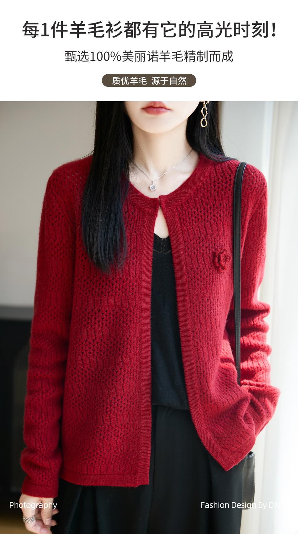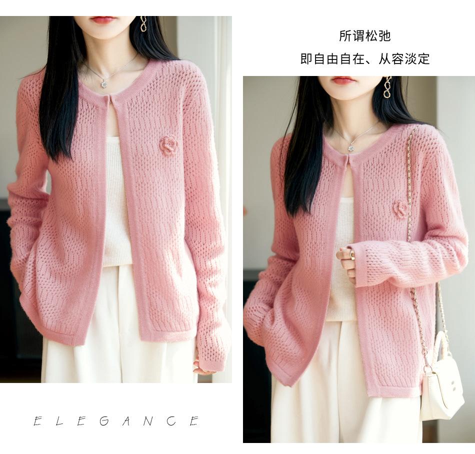 Cárdigan de Punto de Lana Pura Estilo Nuevo 2025 para Mujer Cuello Redondo Calado Flores Bordadas Sin Botones Manga Larga Suelta Abrigo Base