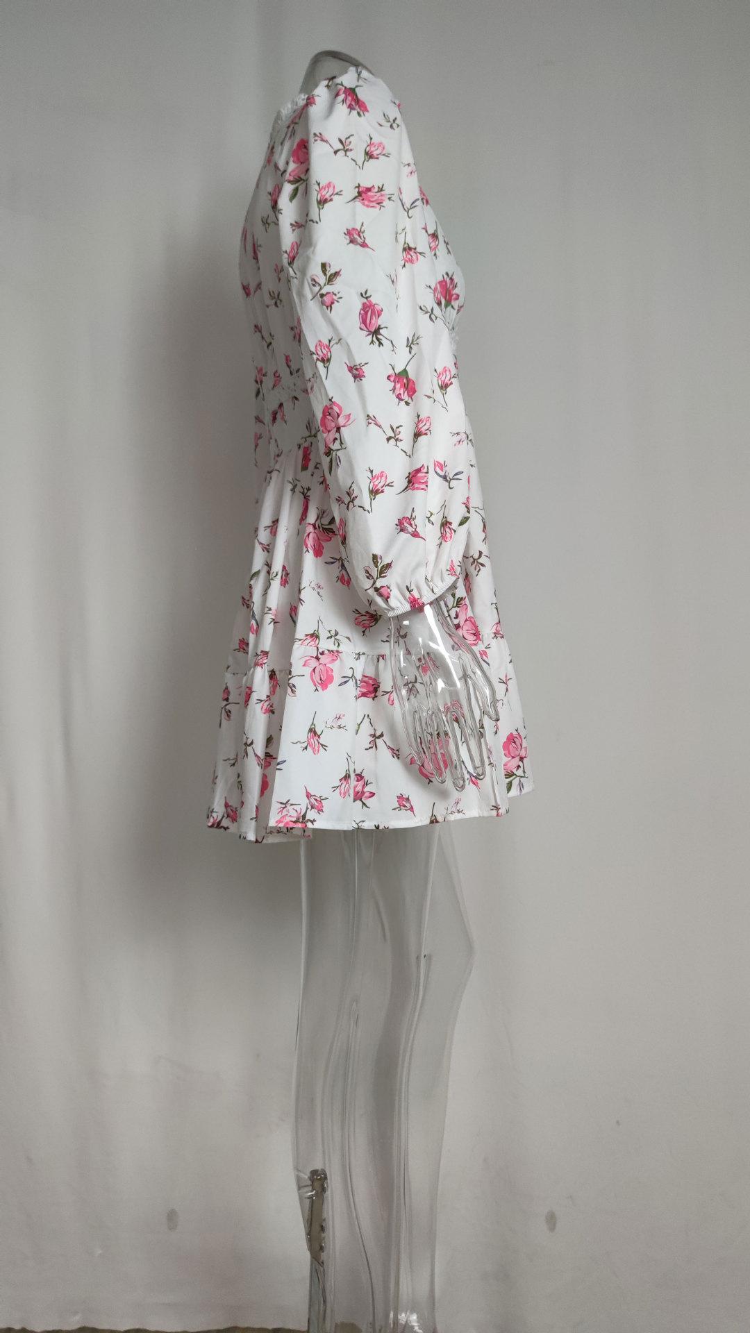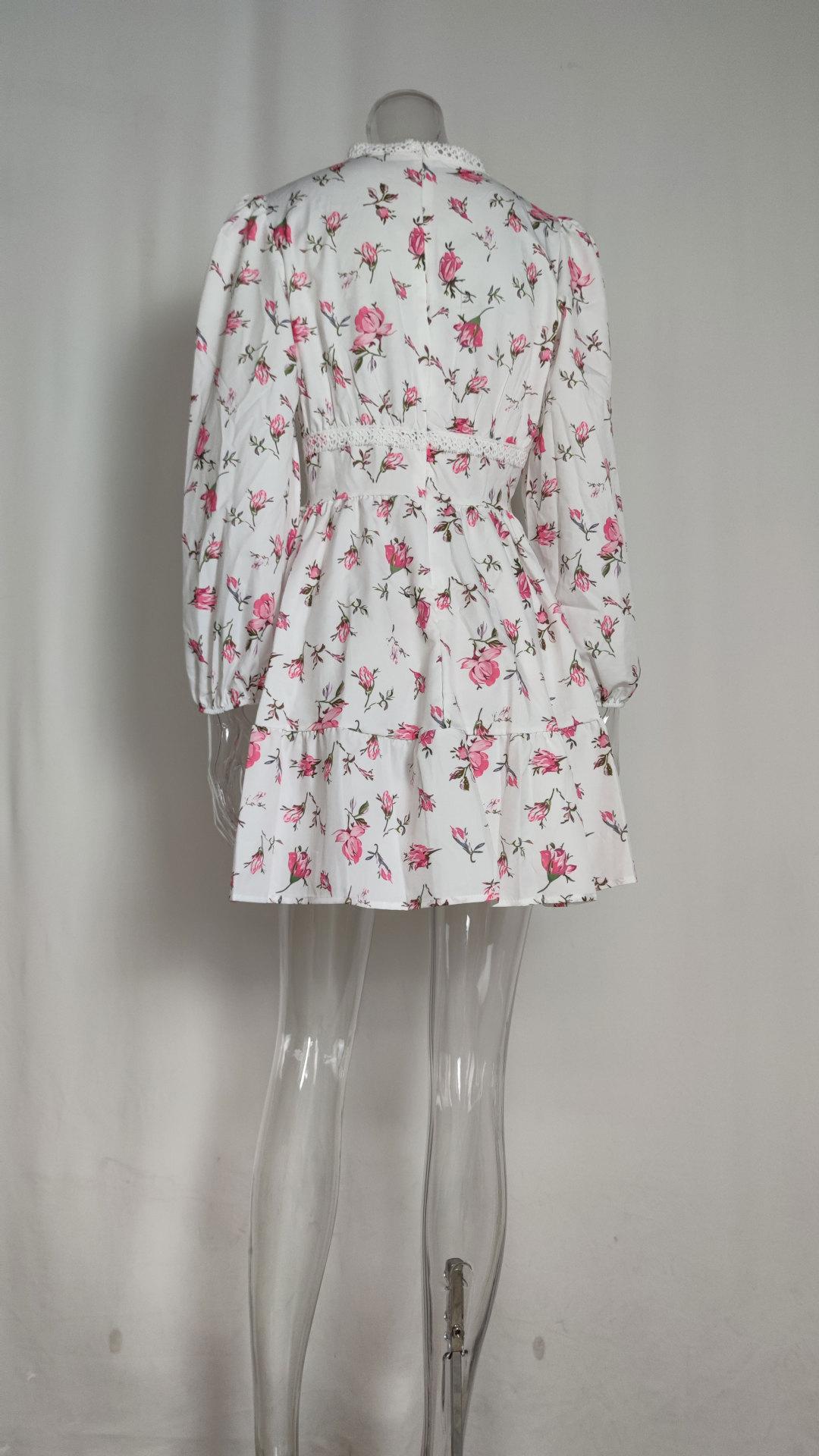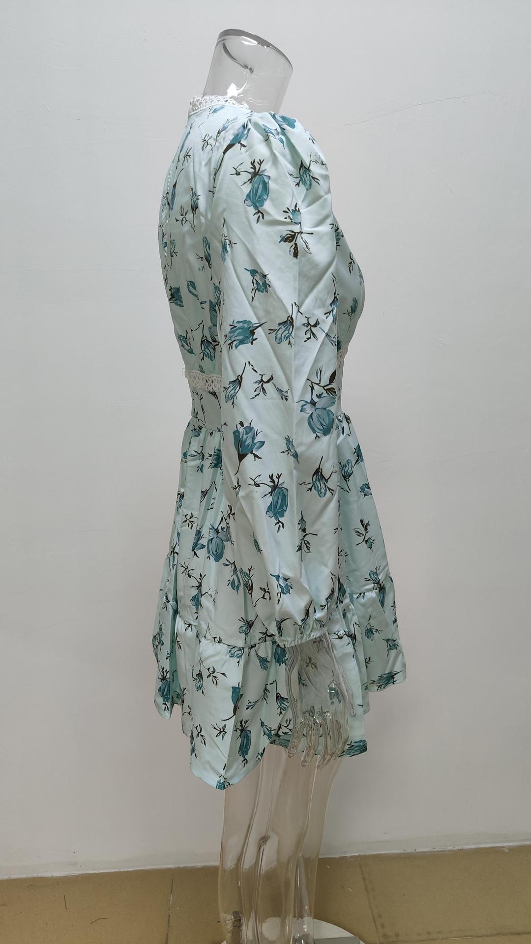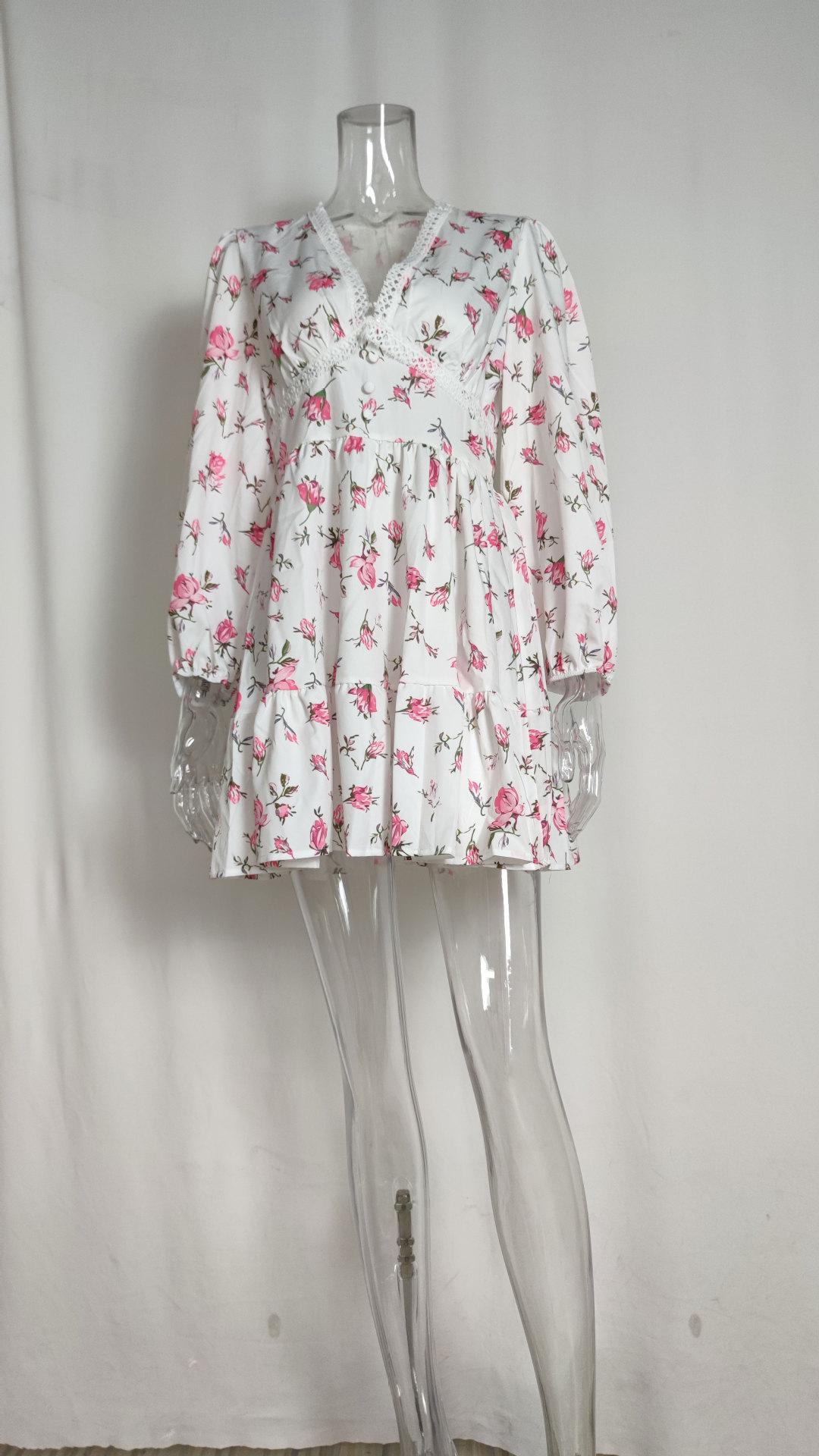 Vestido 2025 Amazon Primavera Nuevo Europeo y Americano para Mujer Dulce Estampado Cuello en V Encaje Manga Corta Larga Plisado