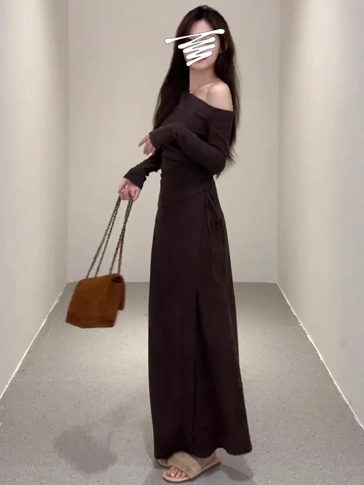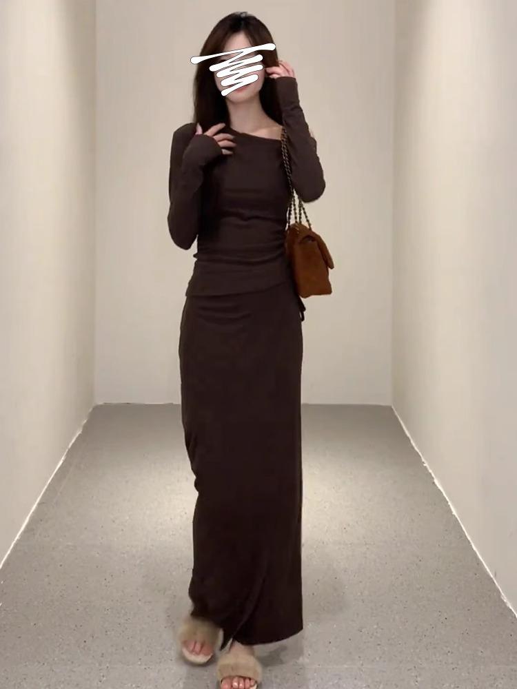 Conjunto de Moda Sexy para Chica Caliente Mujeres Adelgazante Top Descubierto Falda Midi de Cintura Alta Temperamento de Niña Petite Conjunto de Dos Piezas