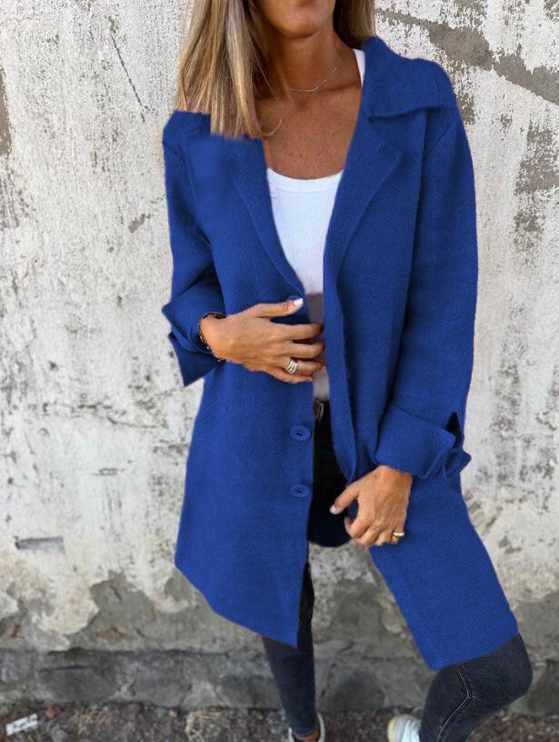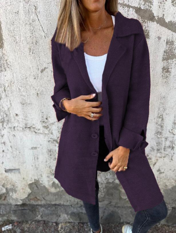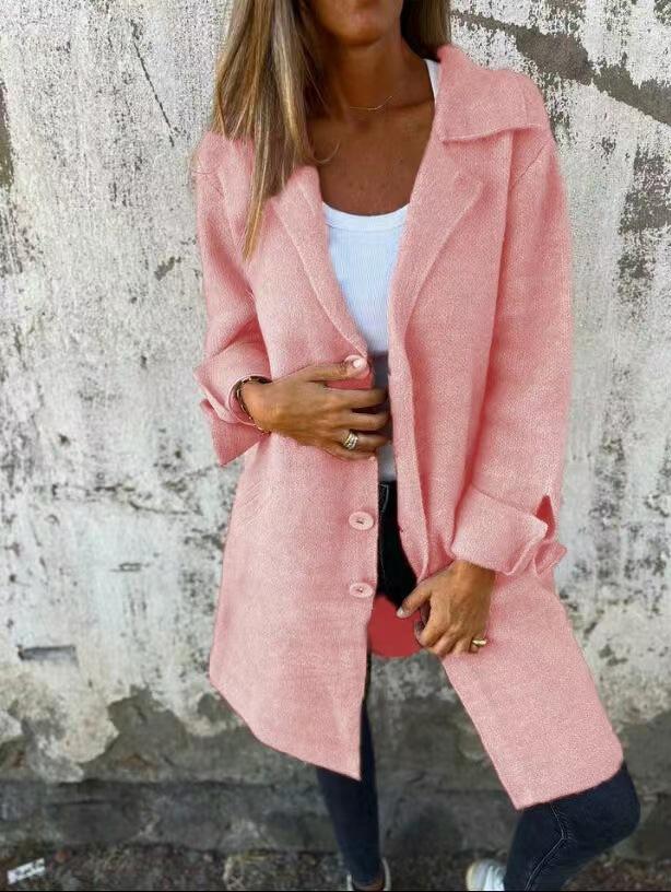 Cárdigan de Lana Mezclada de Doble Cara Grueso de Color Sólido con Solapa y Bolsillo Amazon Transfronterizo Otoño/Invierno 2024 Abrigo de Longitud Media de un Solo Botón