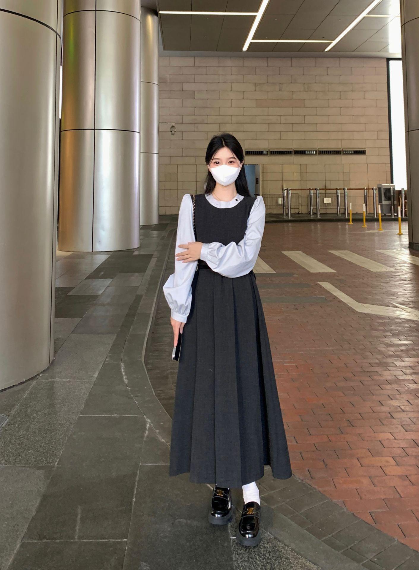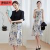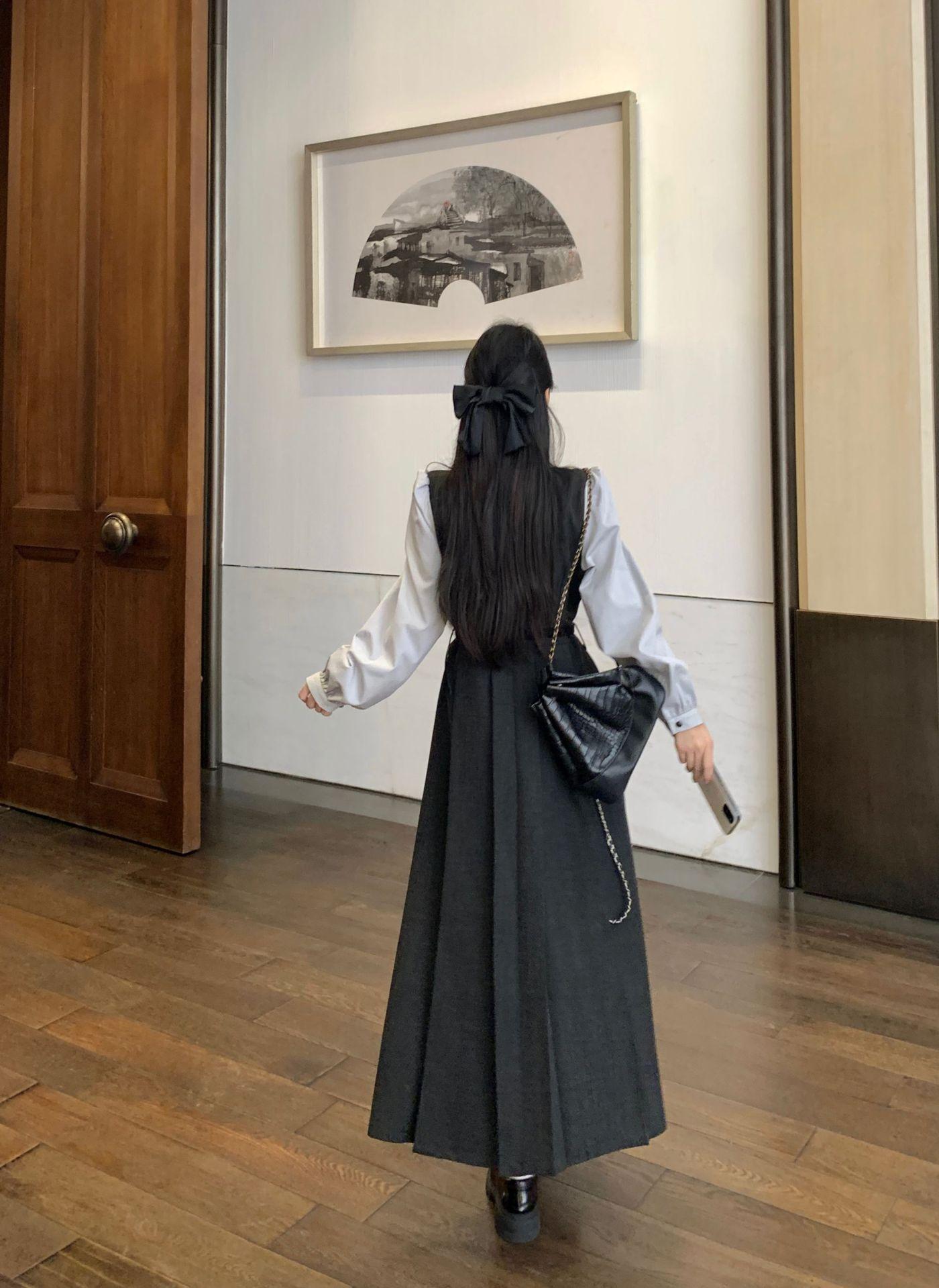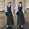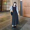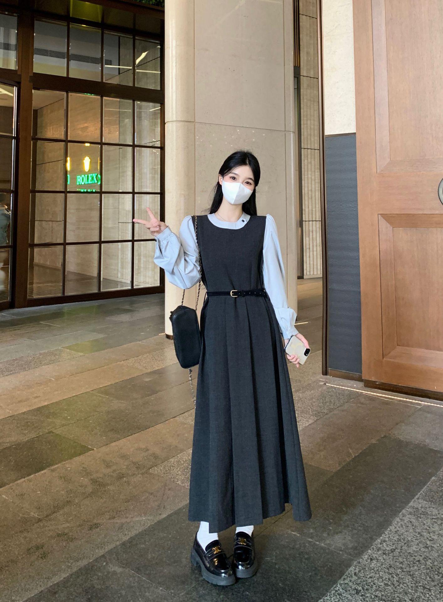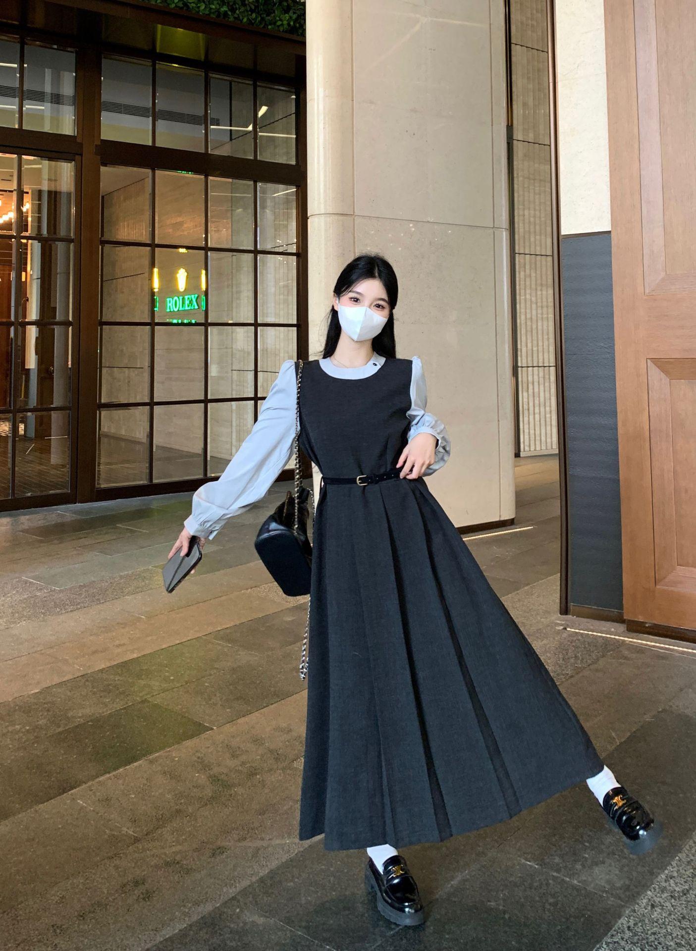 Vestido de Talla Grande para Mujer Otoño Nuevo Estilo Falso de Dos Piezas Manga Larga Vestido Moda Temperamento Estilo Extranjero de Alta Gama Bien Parecido Vestido Largo
