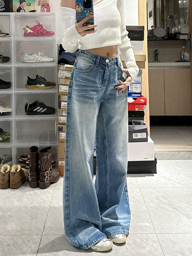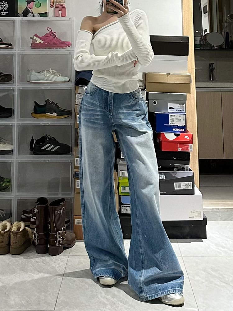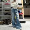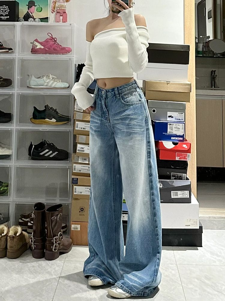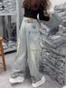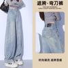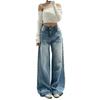 Jeans de Talla Grande de Cintura Alta y Pierna Ancha para Mujer, Verano Nuevo Estilo Americano, Corte Holgado, Versátil, Largo hasta el Piso, Pantalones Rectos Adelgazantes