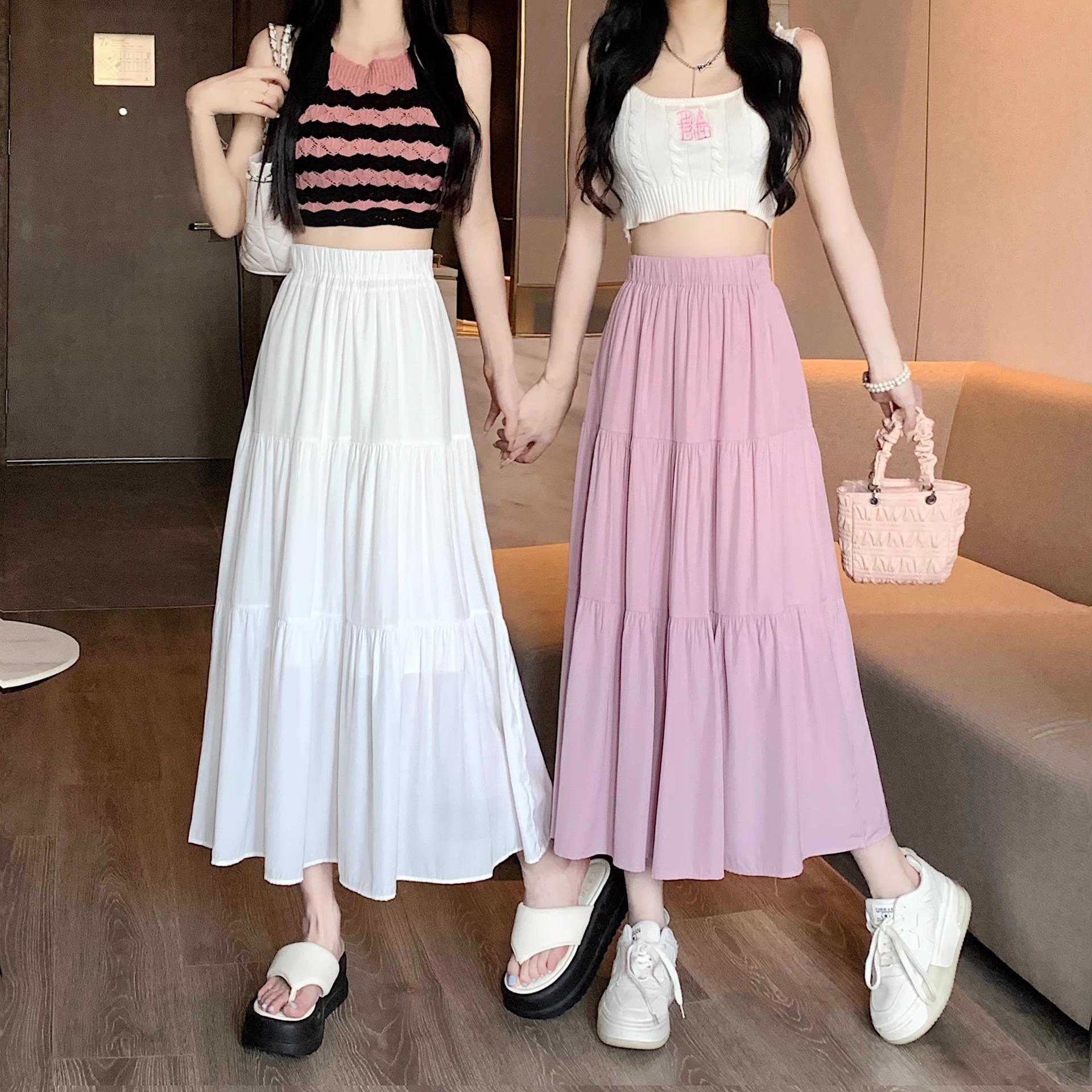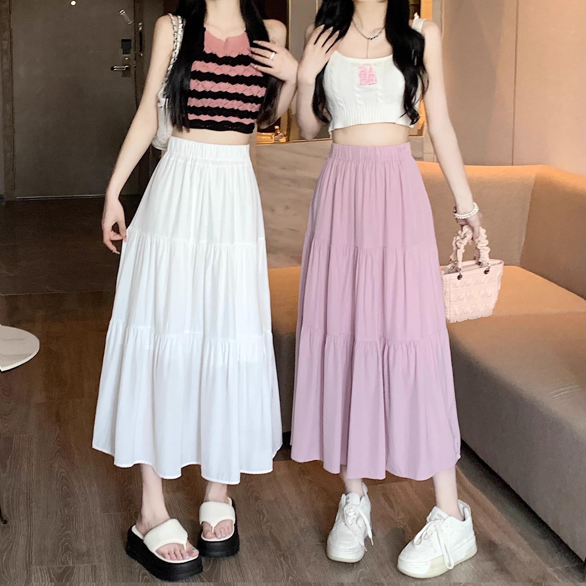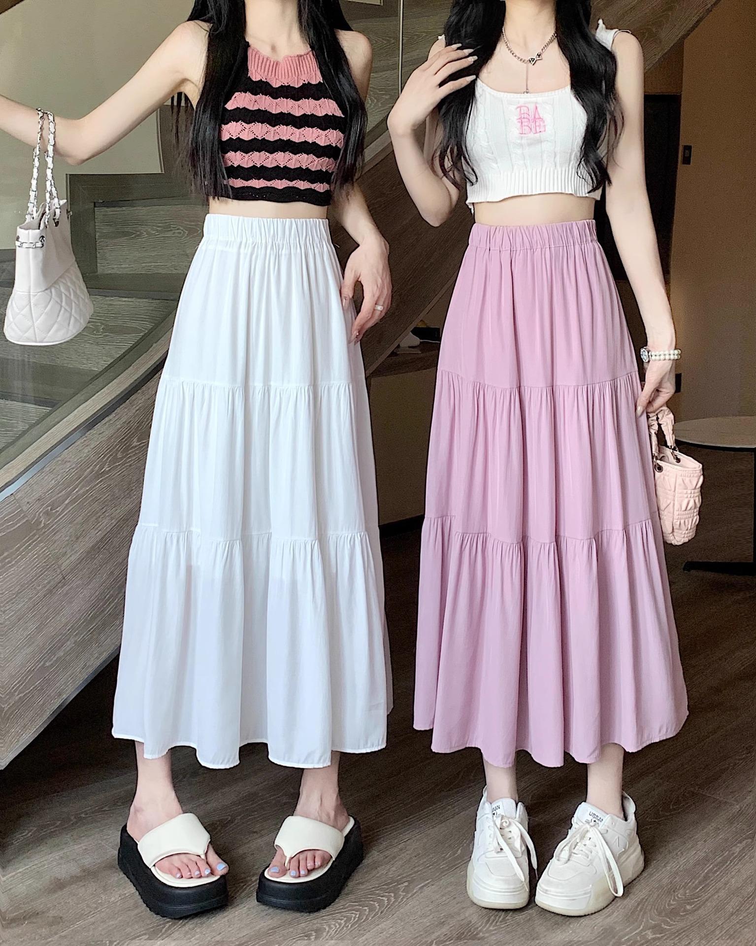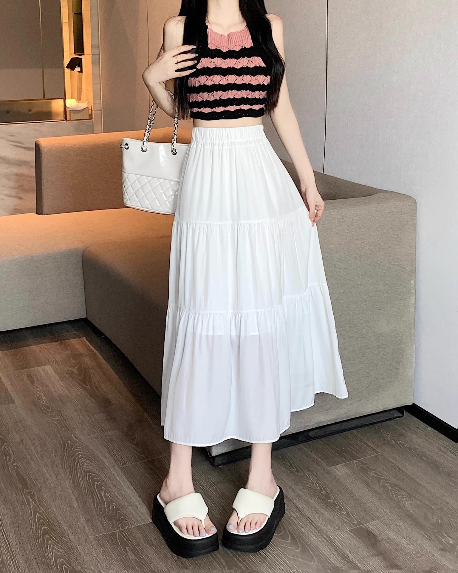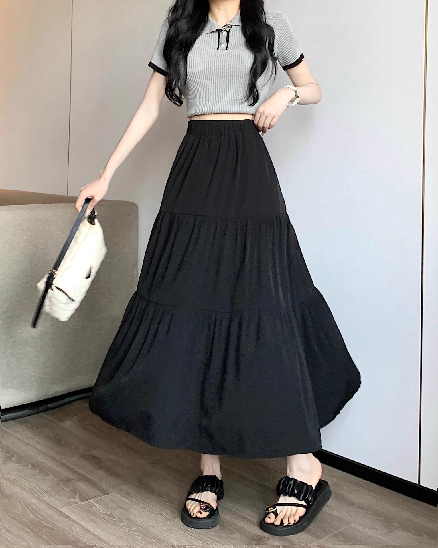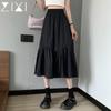 Falda midi negra acampanada falda midi mujer petite verano 2025 nuevo estilo drapeado falda midi cintura alta blanca falda línea A