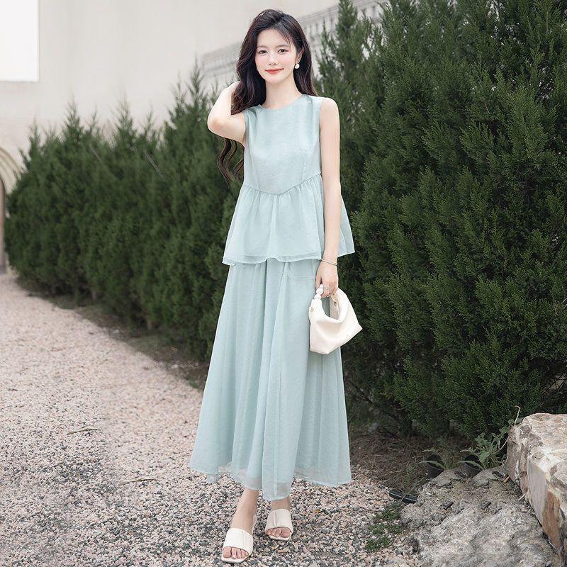 2025 Verano Nuevo Top de Mujer Falda Elegante Traje Vintage de Dos Piezas