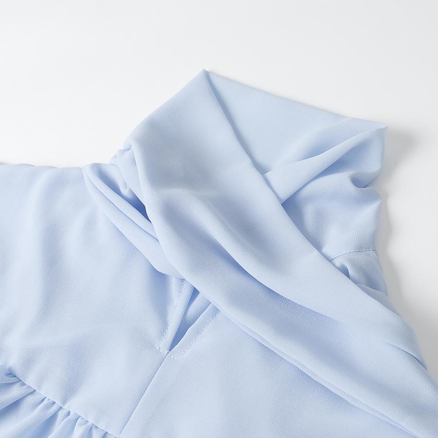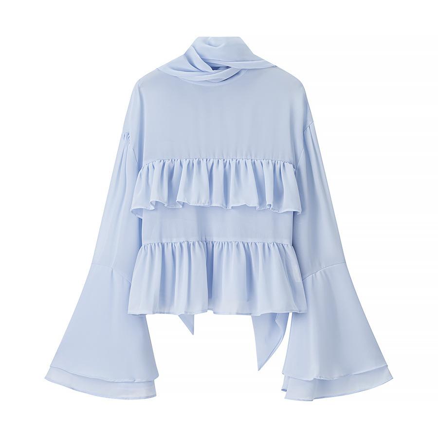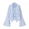 Ropa de Verano para Mujer 2025 Nuevo Estilo Europeo y Americano Moda Sencilla Cuello Bufanda Camisa de Manga Larga con Capas Tops