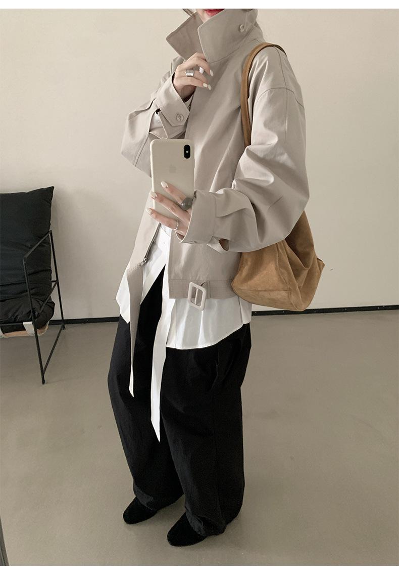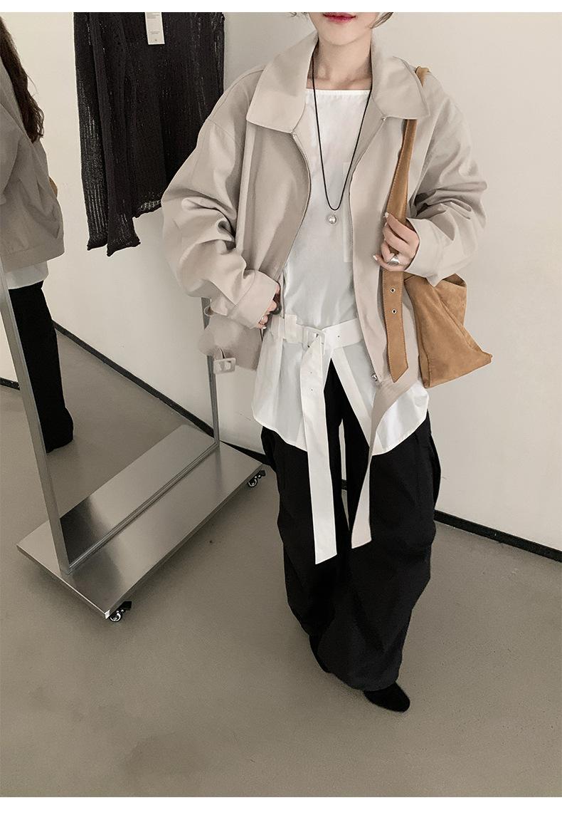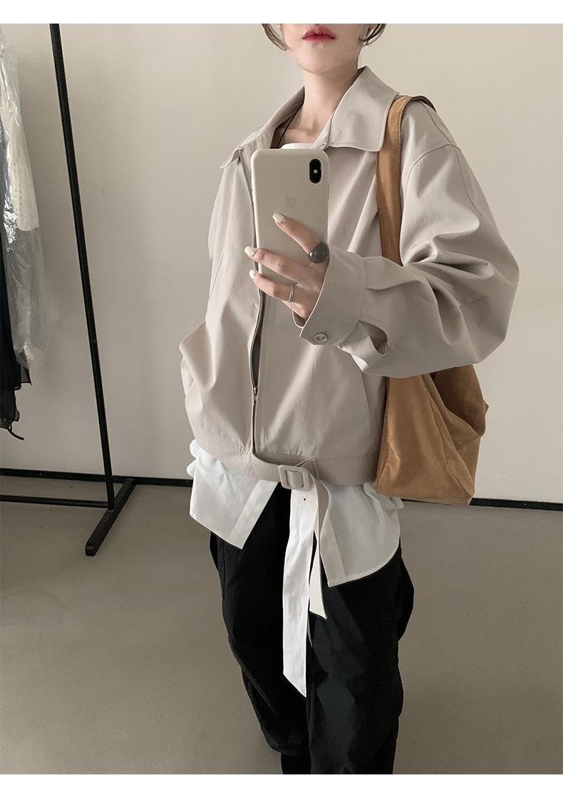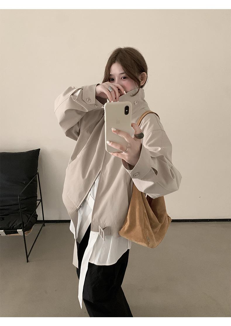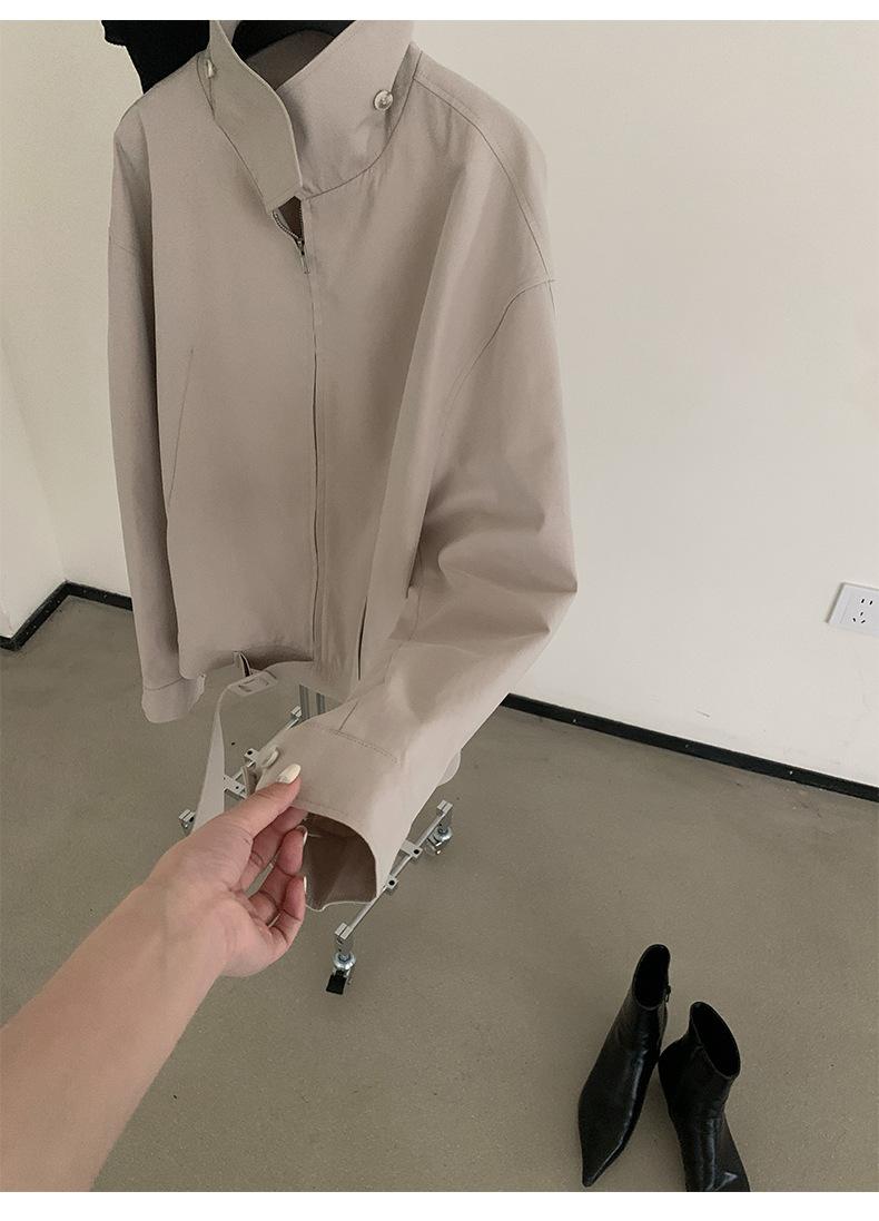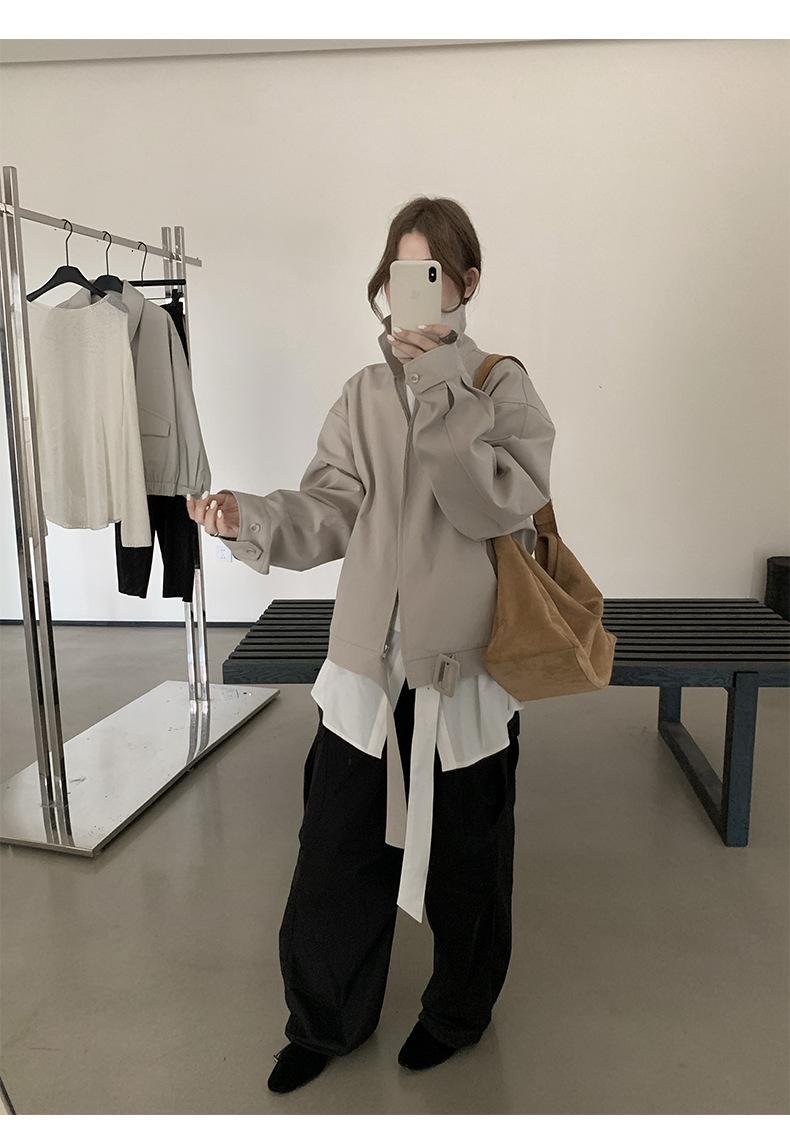 Otoño 2025 Nuevo Diseño Coreano Dongdaemun Sentido de la Moda Adelgazante de Gama Alta Cuello Vuelto Chaqueta con Cremallera Gabardina Mujer