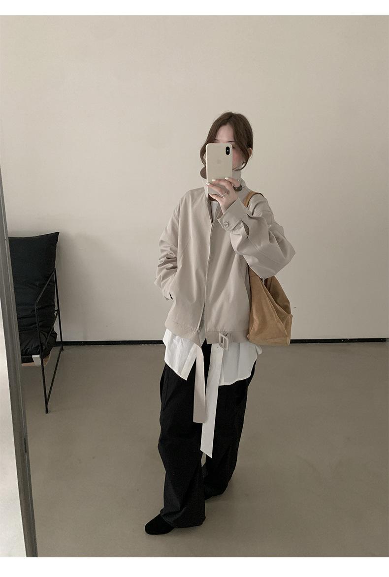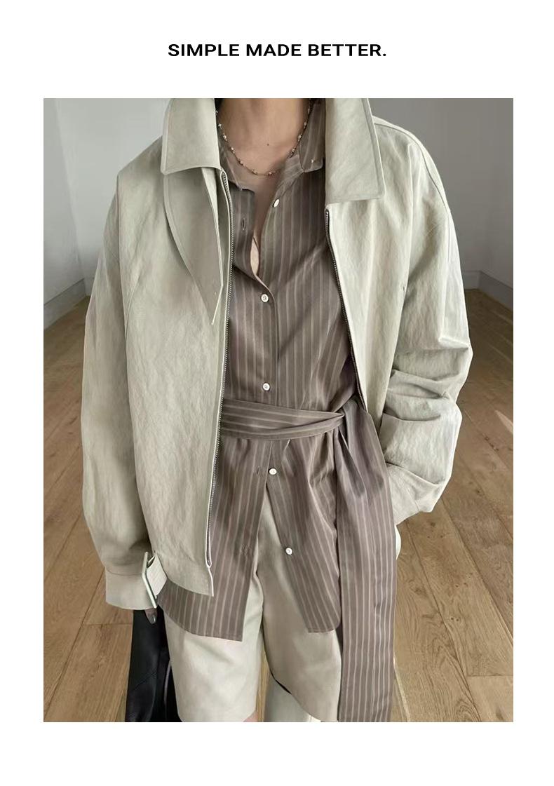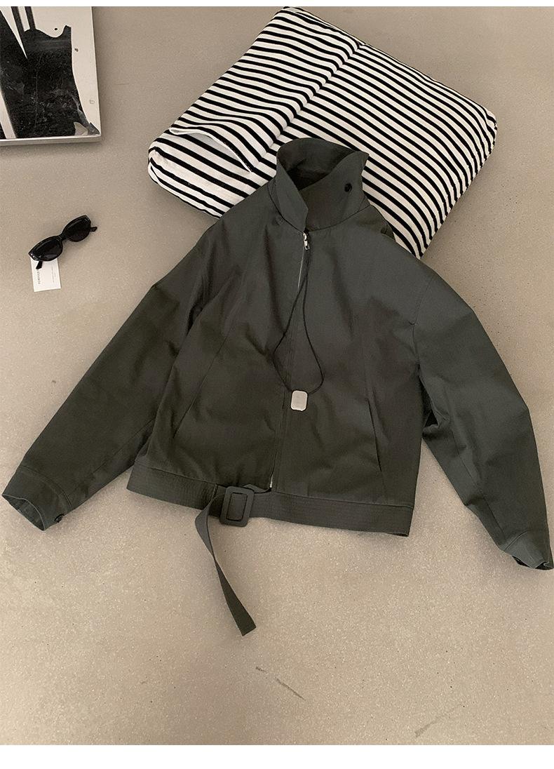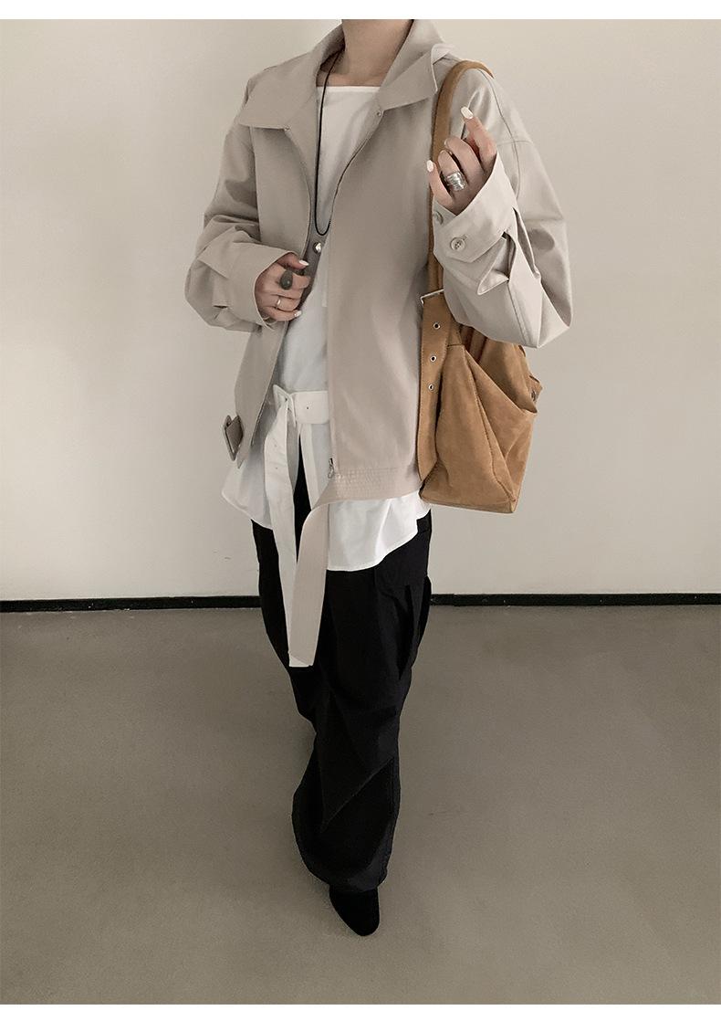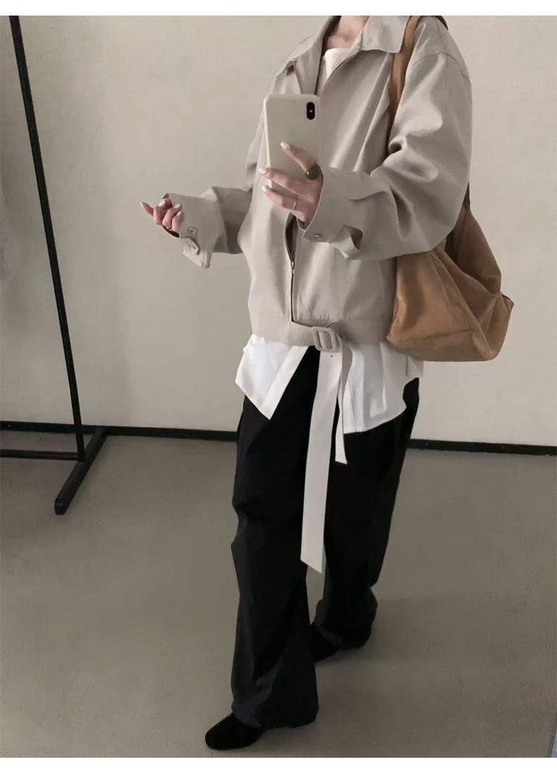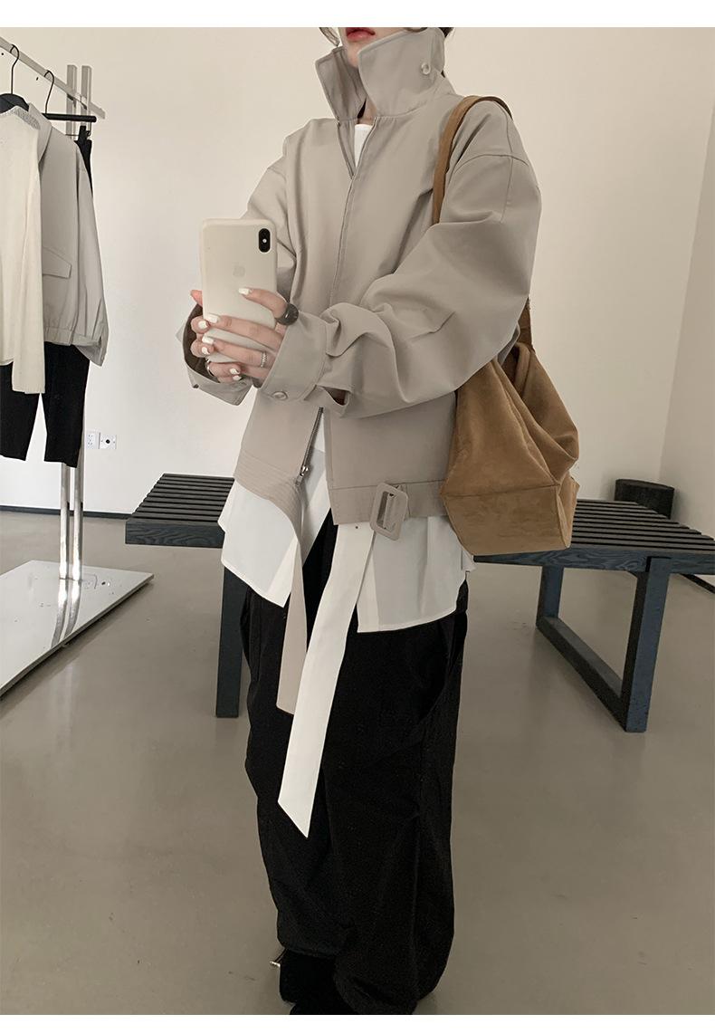 Otoño 2025 Nuevo Diseño Coreano Dongdaemun Sentido de la Moda Adelgazante de Gama Alta Cuello Vuelto Chaqueta con Cremallera Gabardina Mujer