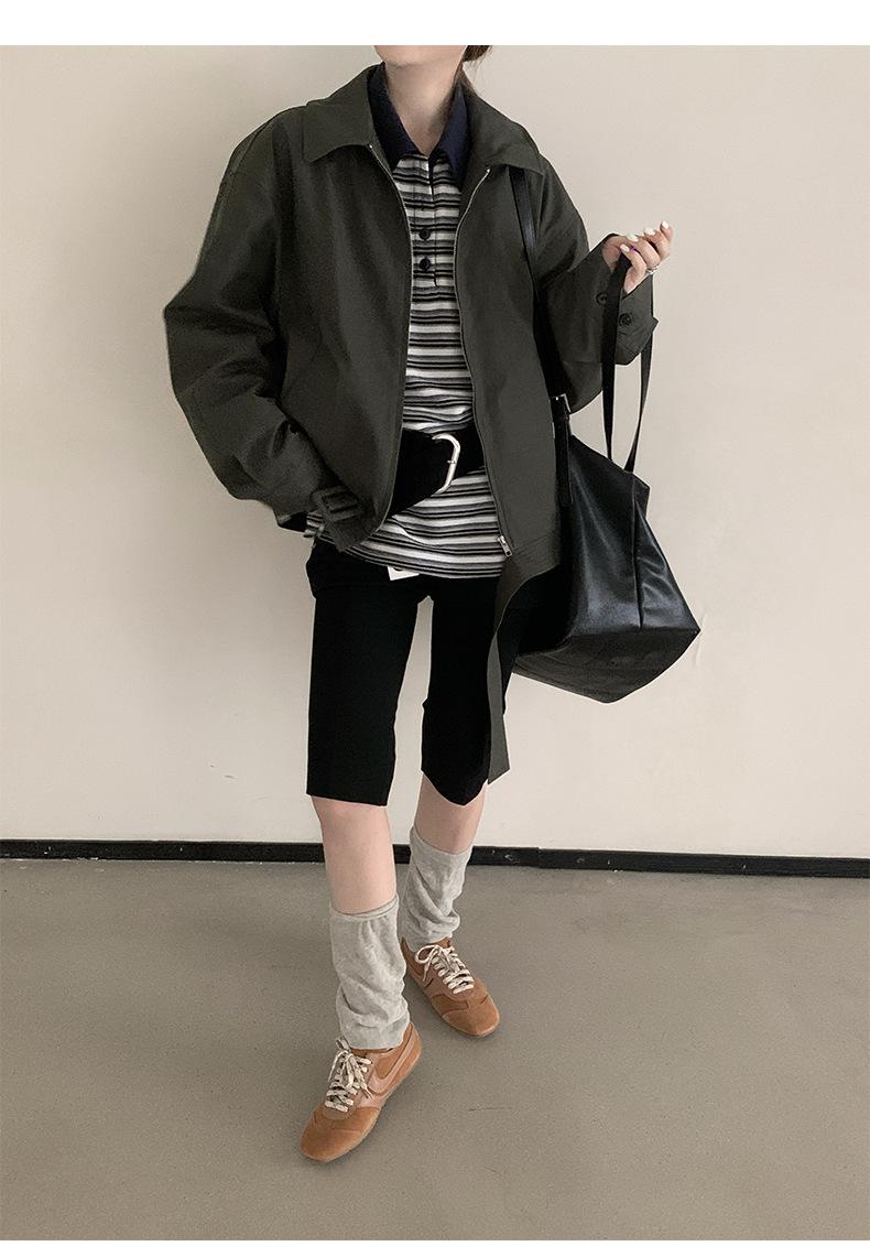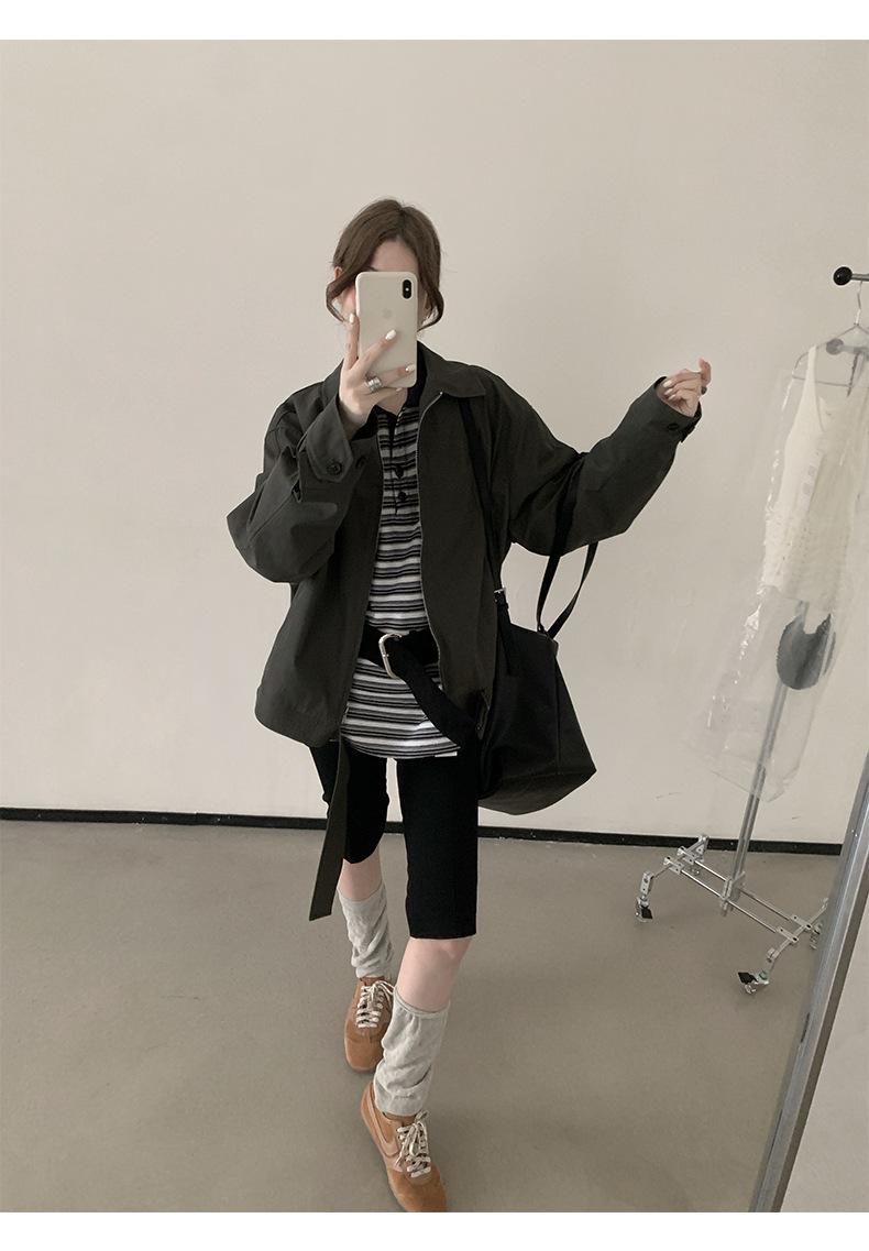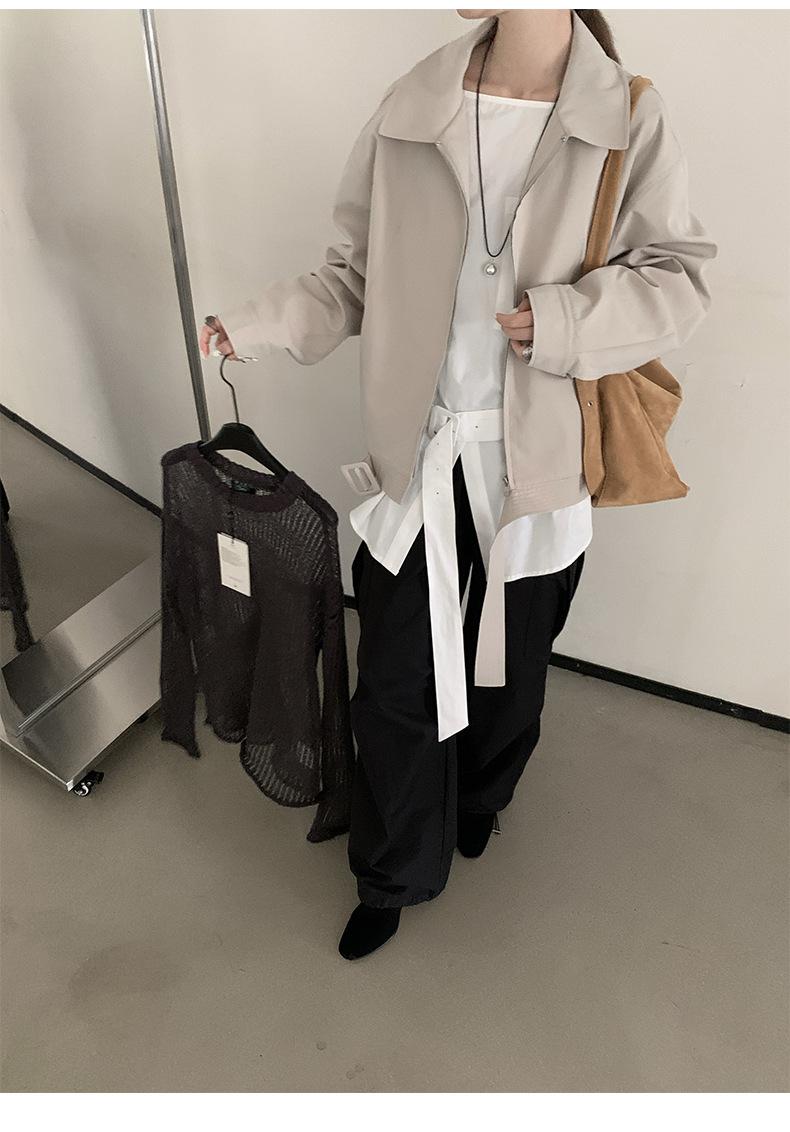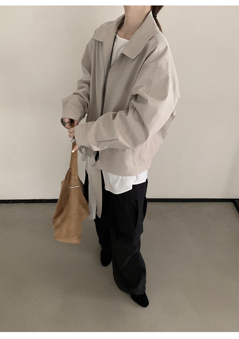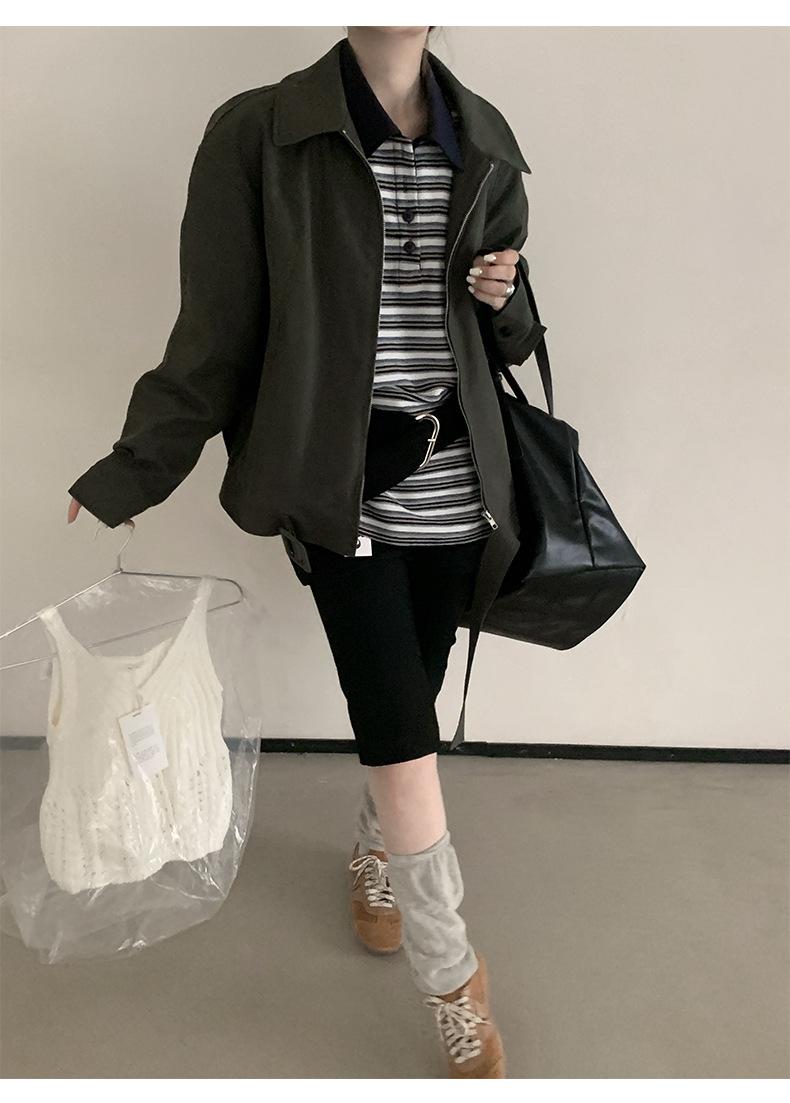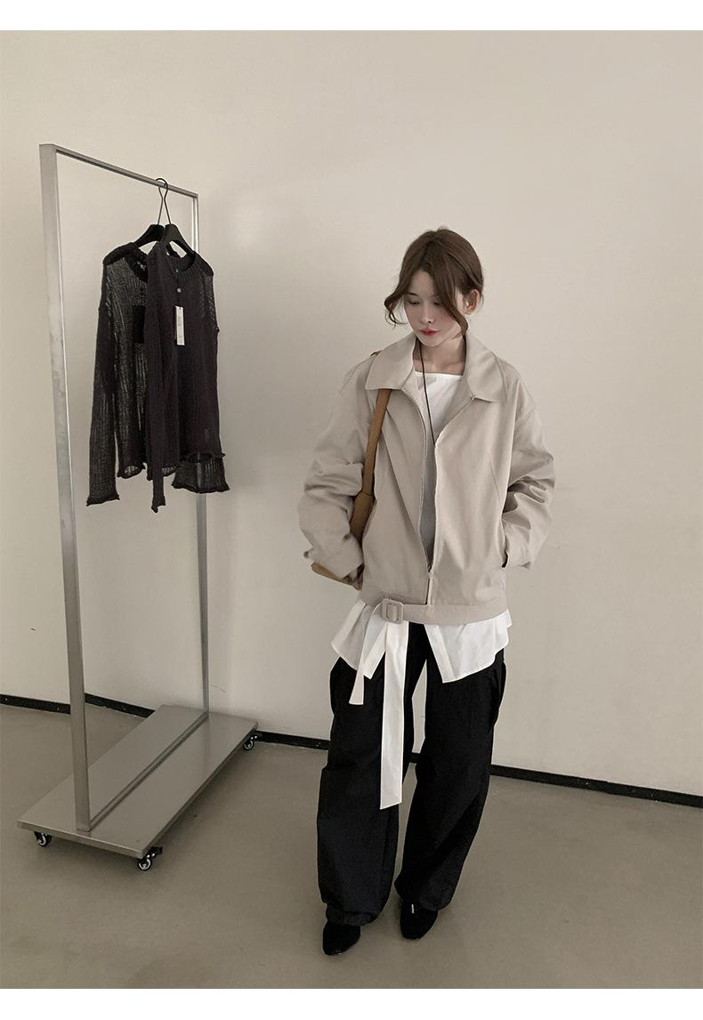 Otoño 2025 Nuevo Diseño Coreano Dongdaemun Sentido de la Moda Adelgazante de Gama Alta Cuello Vuelto Chaqueta con Cremallera Gabardina Mujer