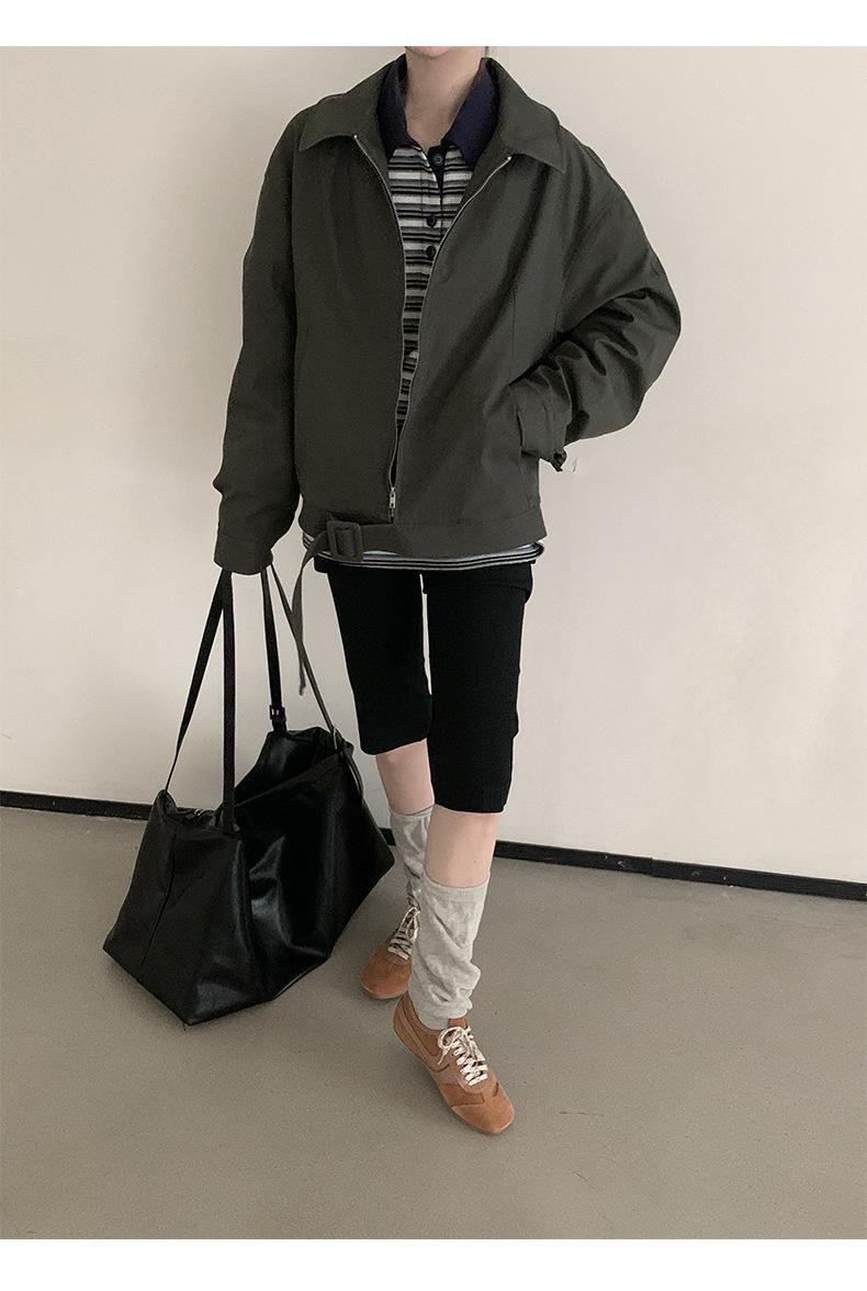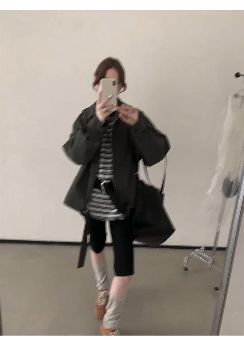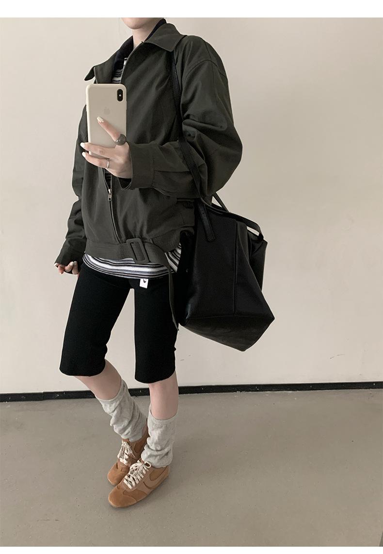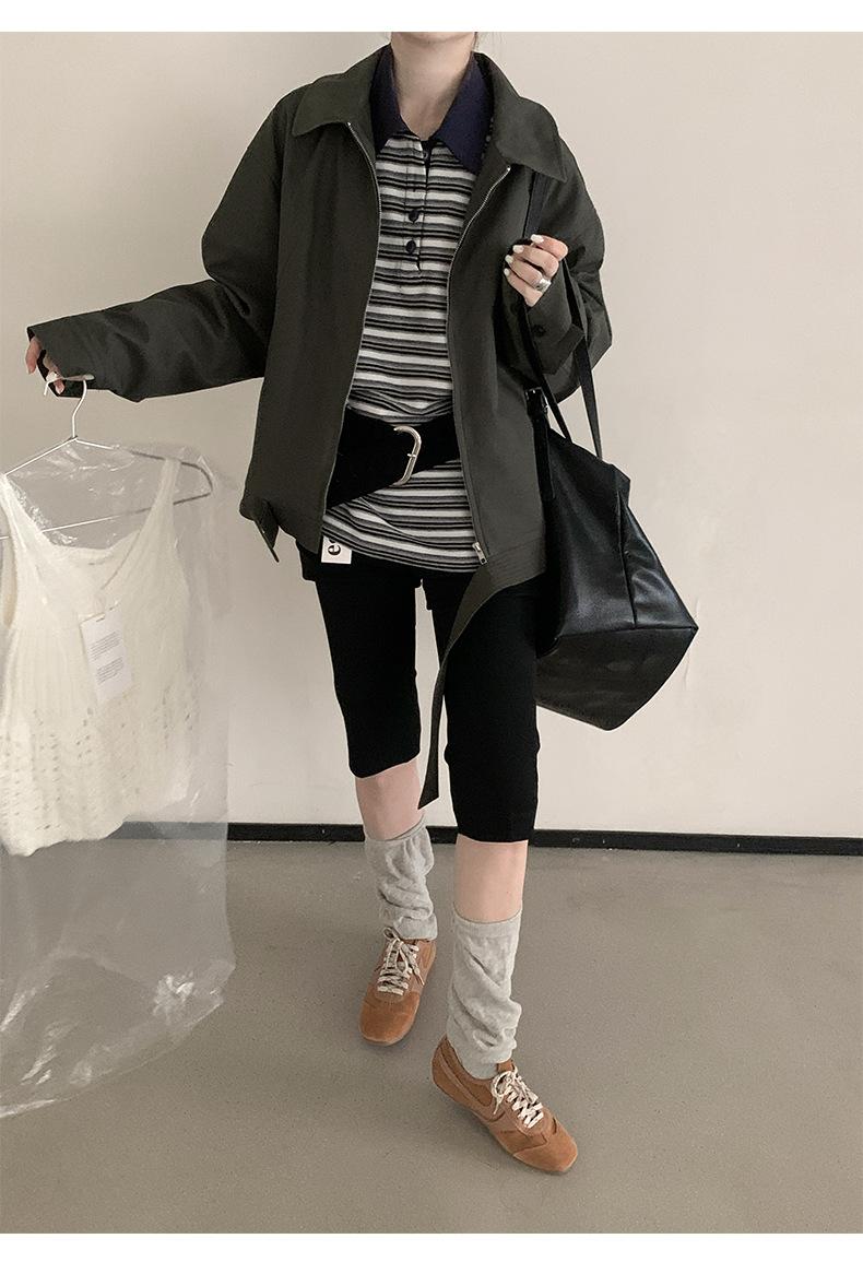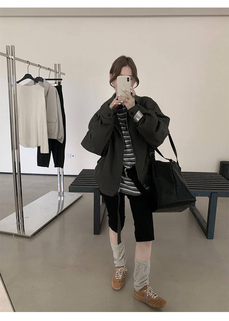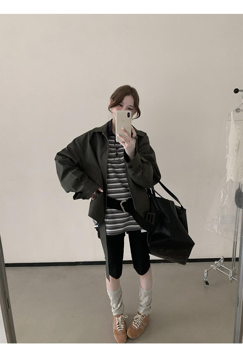 Otoño 2025 Nuevo Diseño Coreano Dongdaemun Sentido de la Moda Adelgazante de Gama Alta Cuello Vuelto Chaqueta con Cremallera Gabardina Mujer