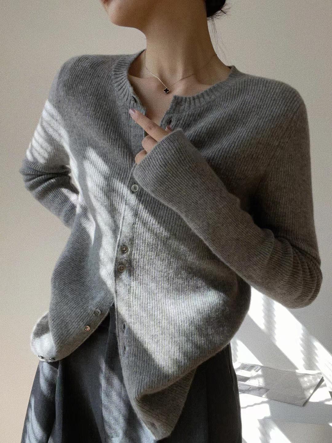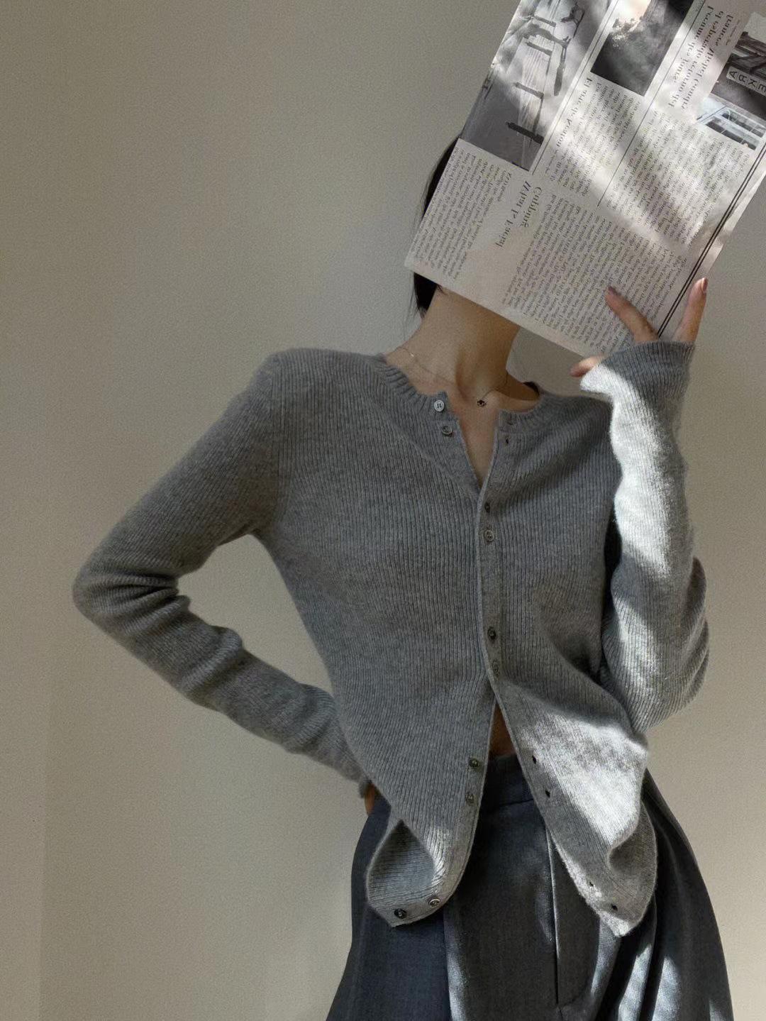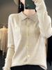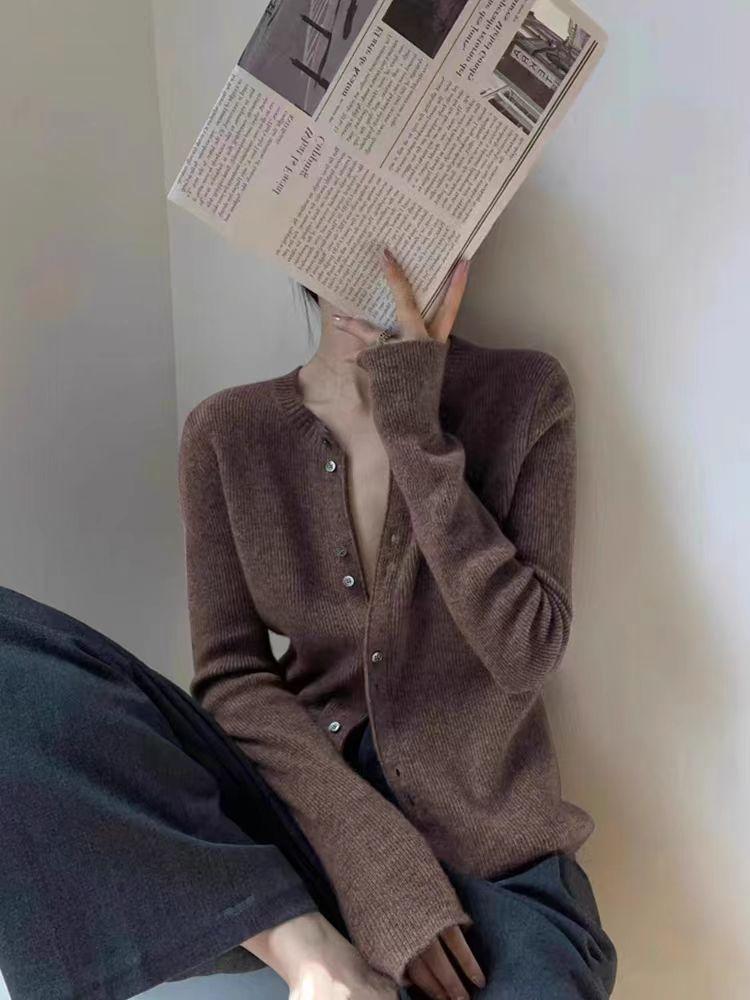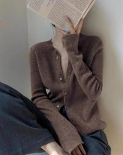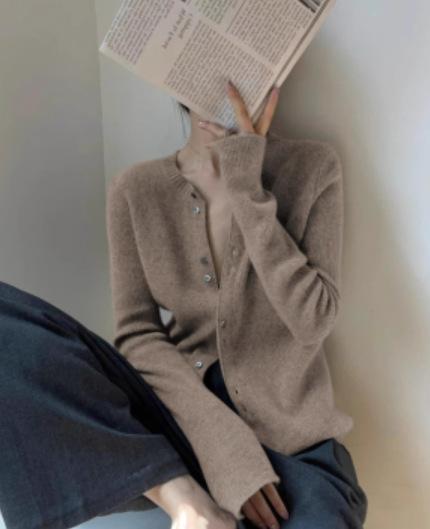 Tejido de Lana Cárdigan de Manga Larga con Cuello en V para Mujer Abrigo Pequeño Lana Merino Camiseta Pequeña Top Chic