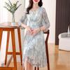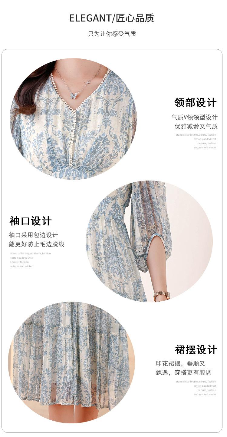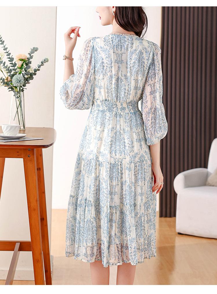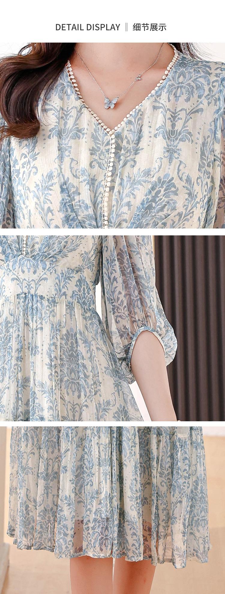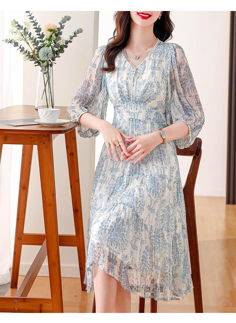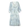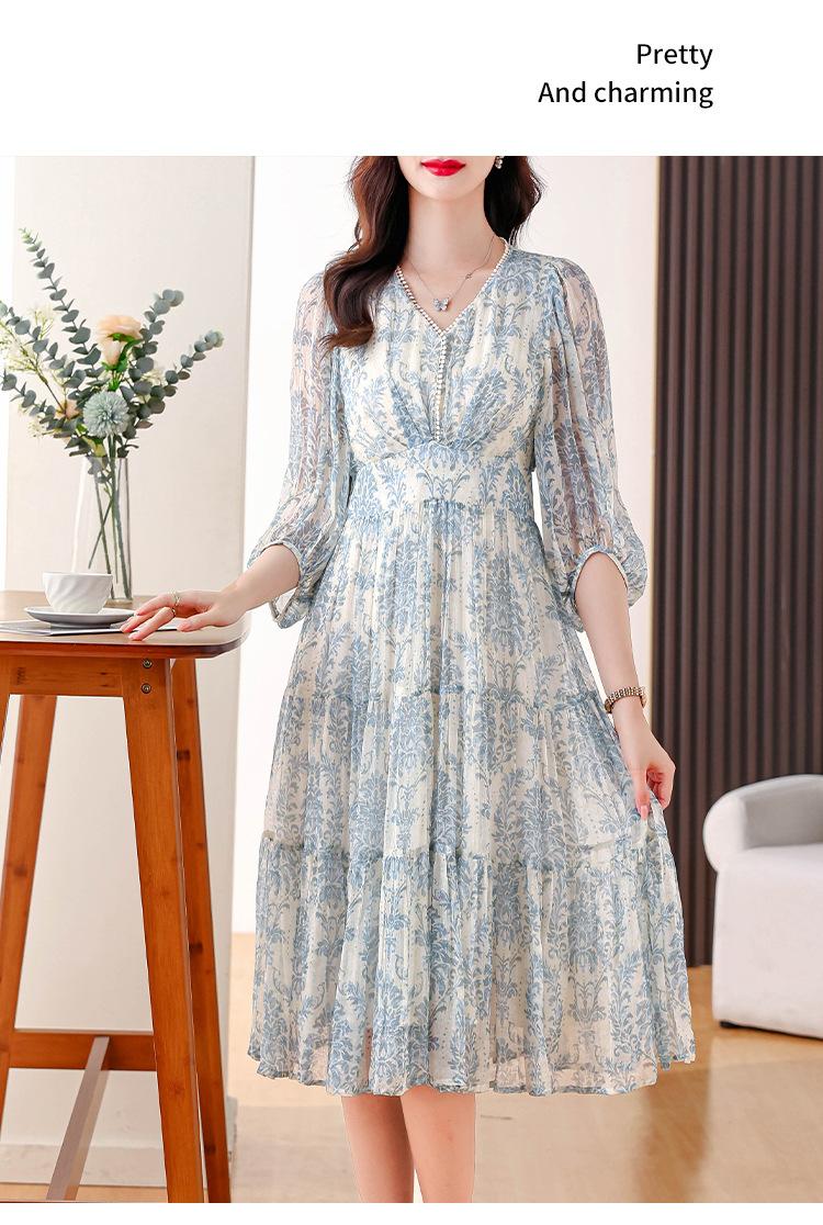 2025 Vestido Floral con Cuello en V para Mujer Nuevo Francés Cintura Adelgazante Look Falda A-Line Midi
