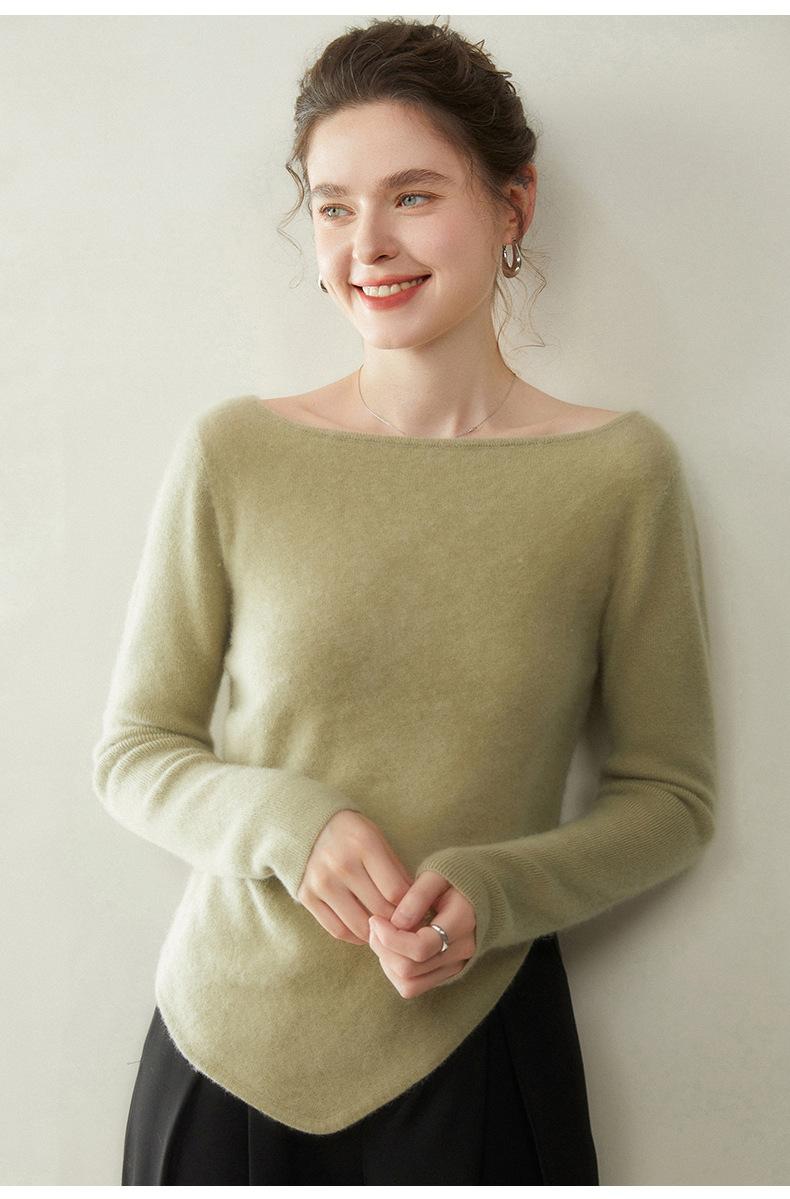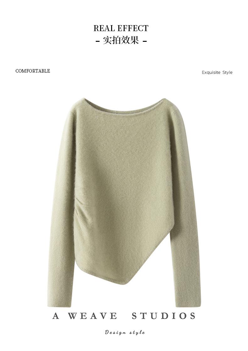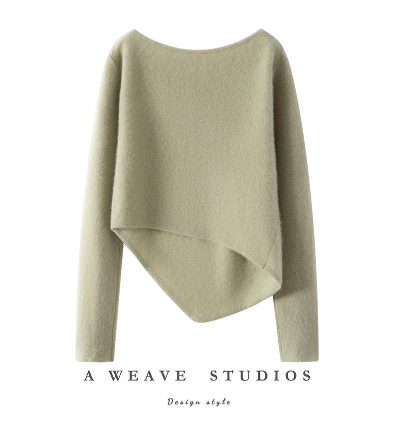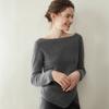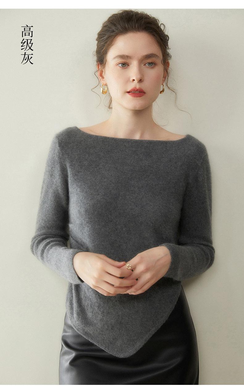 Suéter de cachemira de un hombro con sentido del diseño para mujer, jersey ajustado adelgazante con cuello irregular expuesto, suéter de punto base
