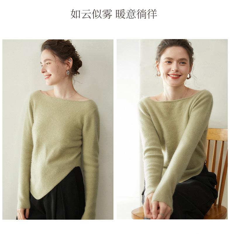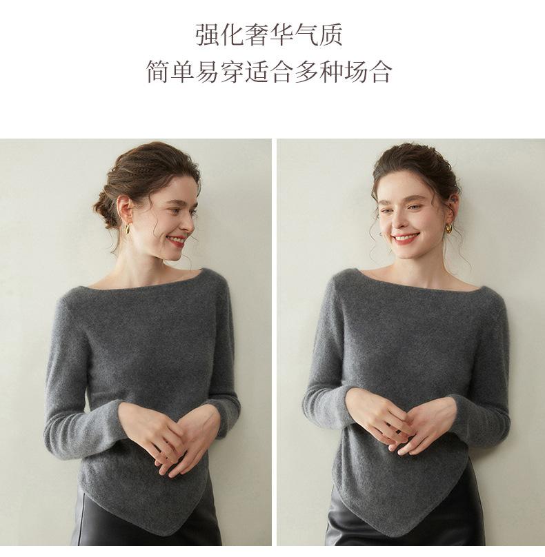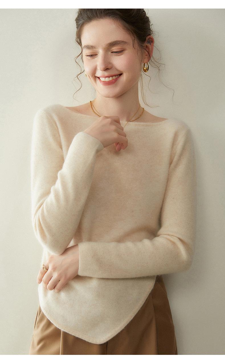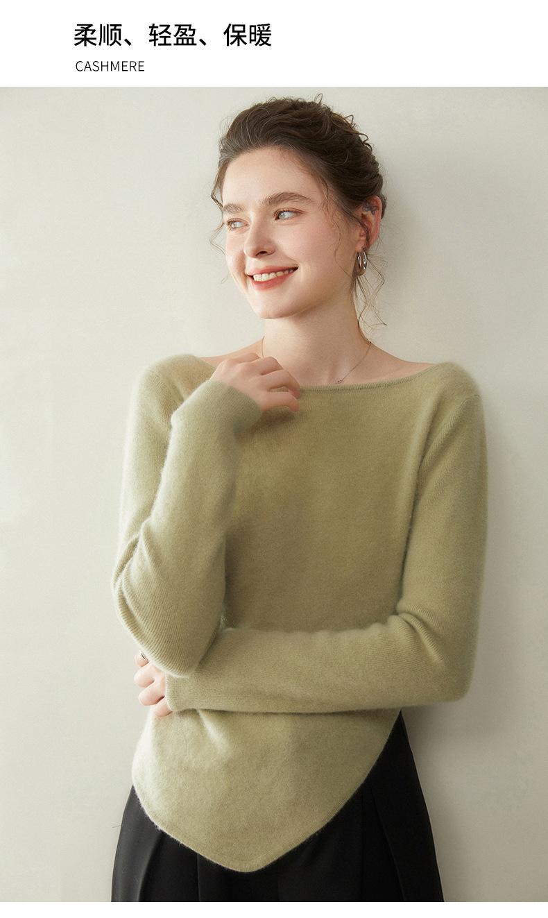 Suéter de cachemira de un hombro con sentido del diseño para mujer, jersey ajustado adelgazante con cuello irregular expuesto, suéter de punto base