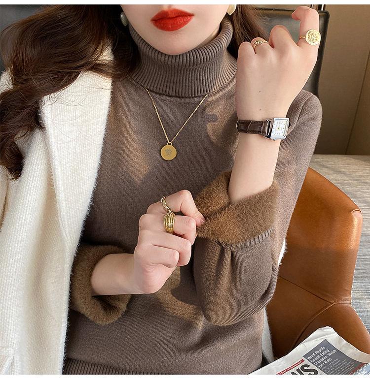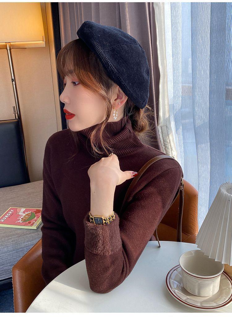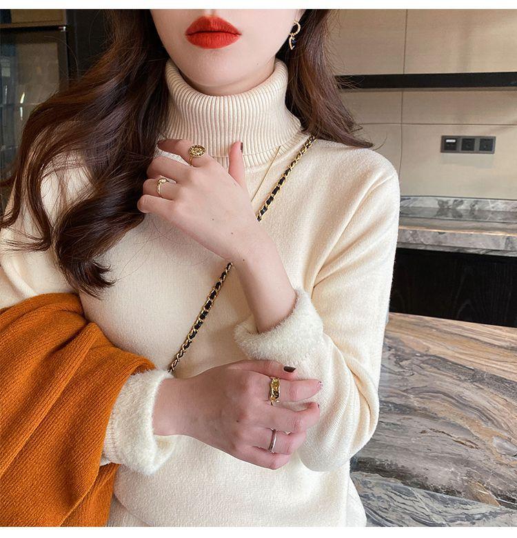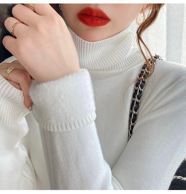 Suéter afelpado y grueso para mujer invierno 2025 nuevo camisa base de cuello alto ropa interior otoño e invierno ropa cálida top a la moda