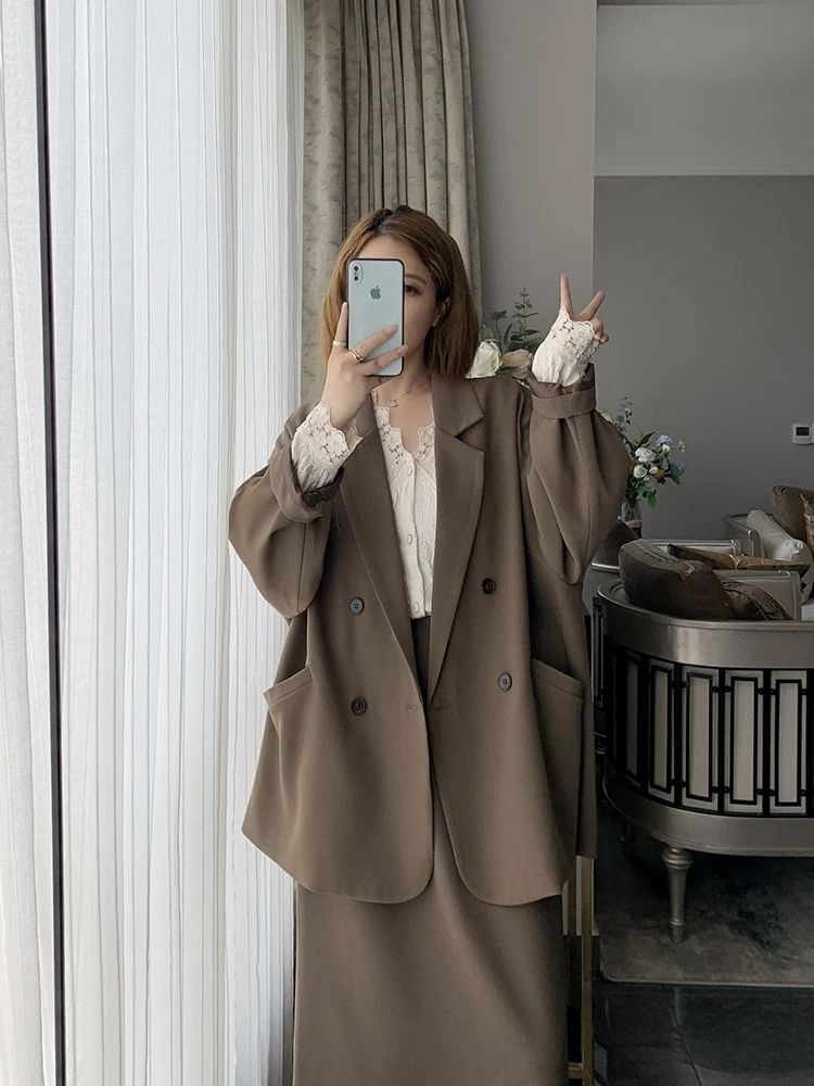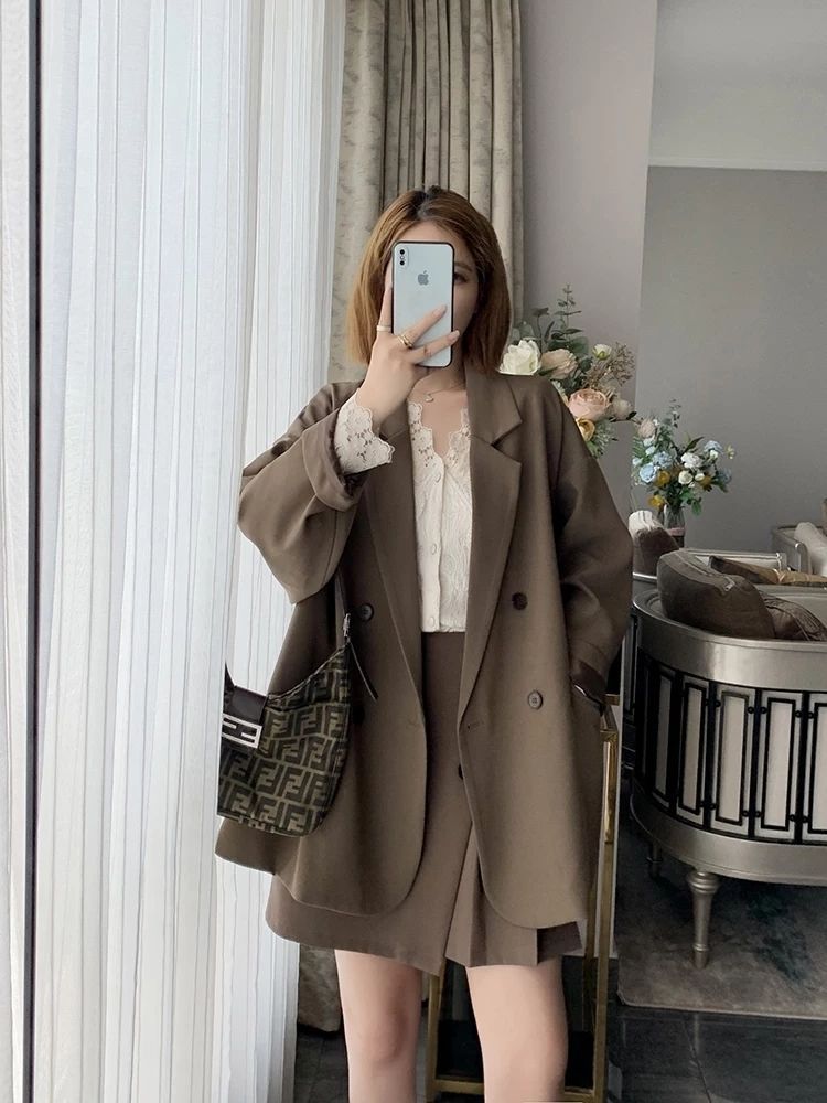 Blazer de Otoño Primavera de Alta Calidad Estilo Coreano Nuevo 2025 Traje Pequeño Suelto de Temperamento para Mujer Abrigo Trench