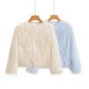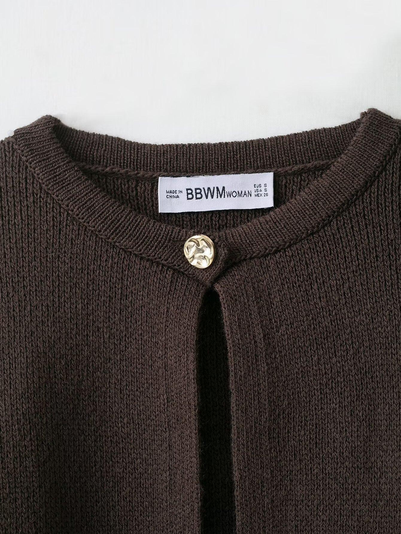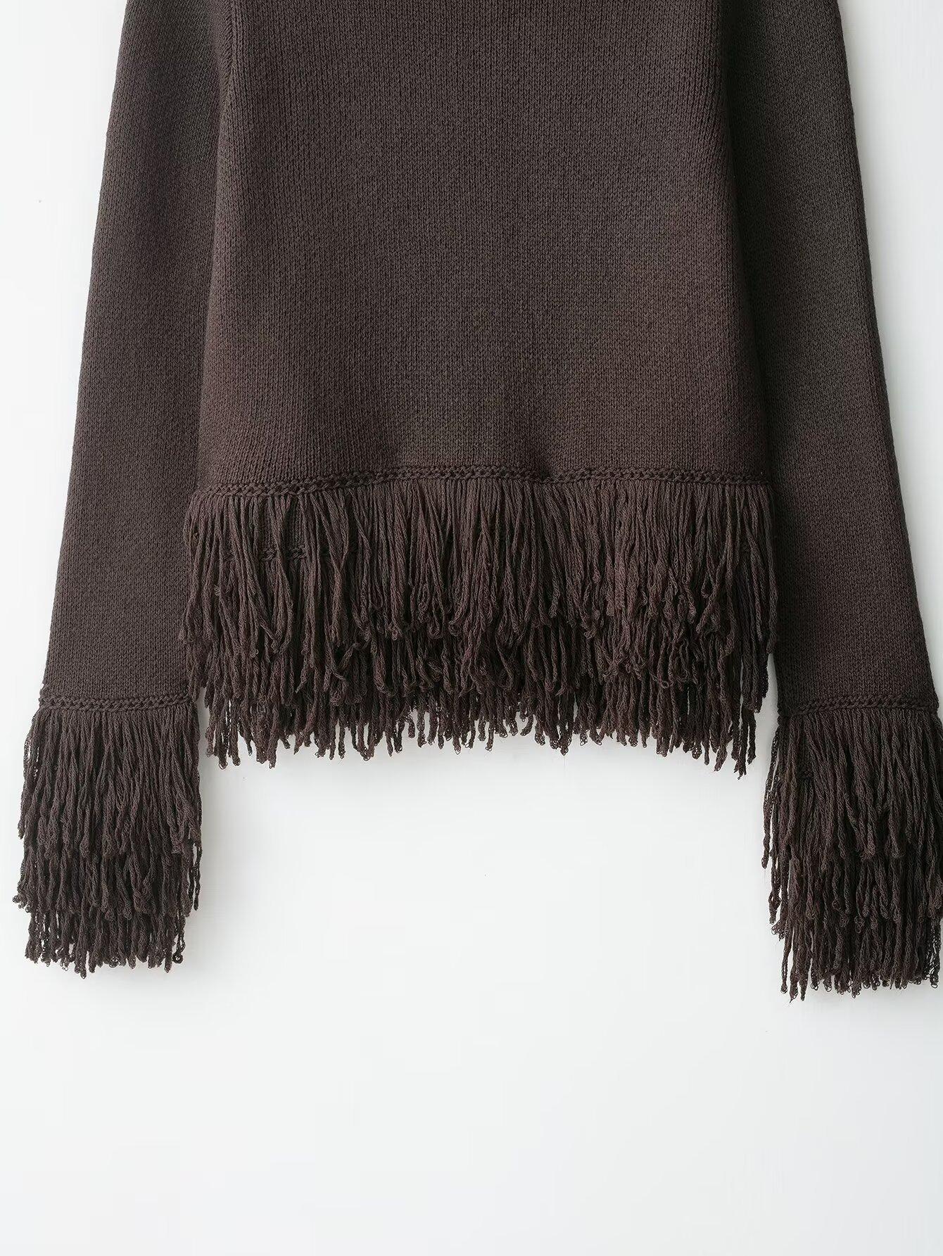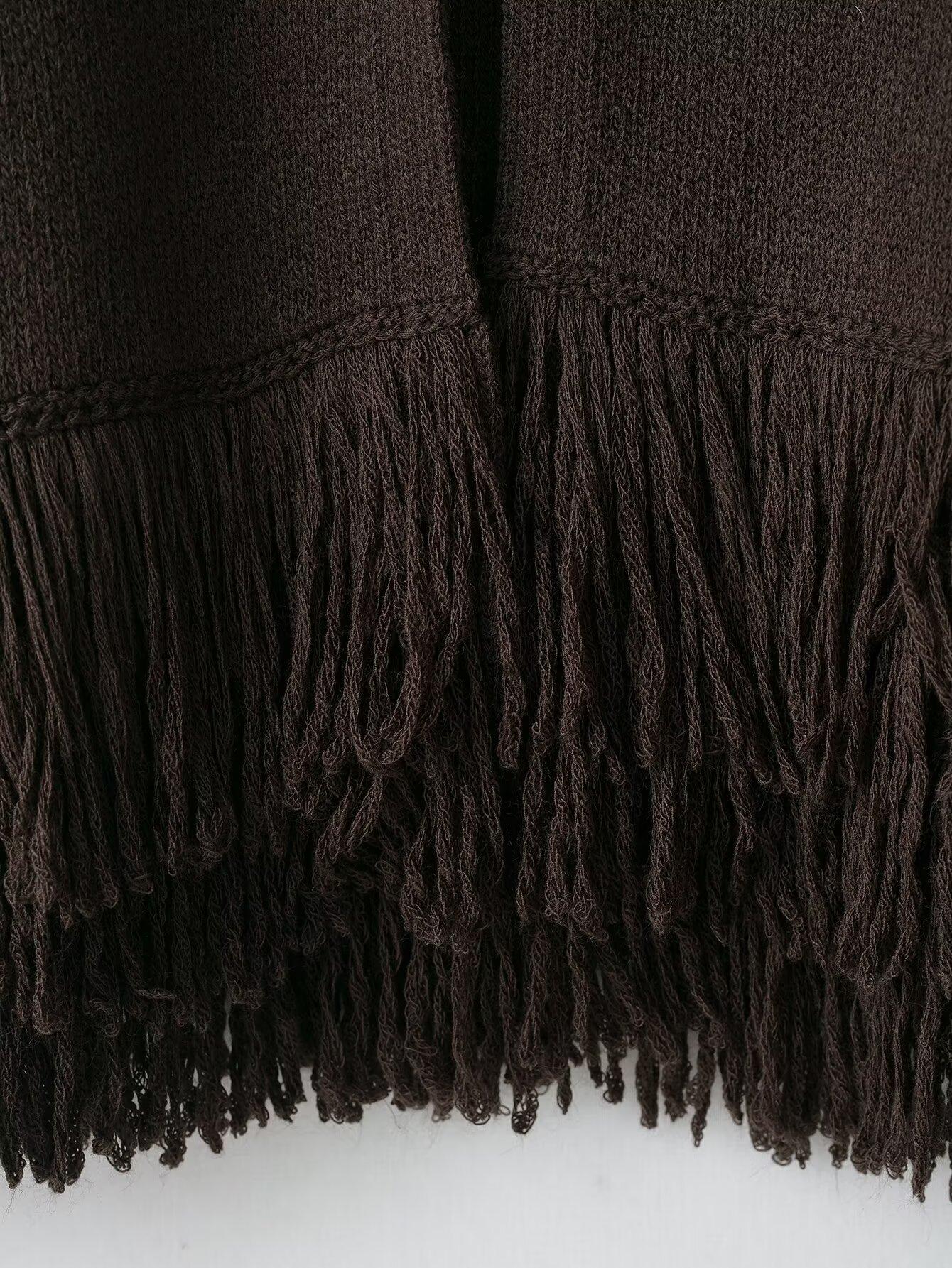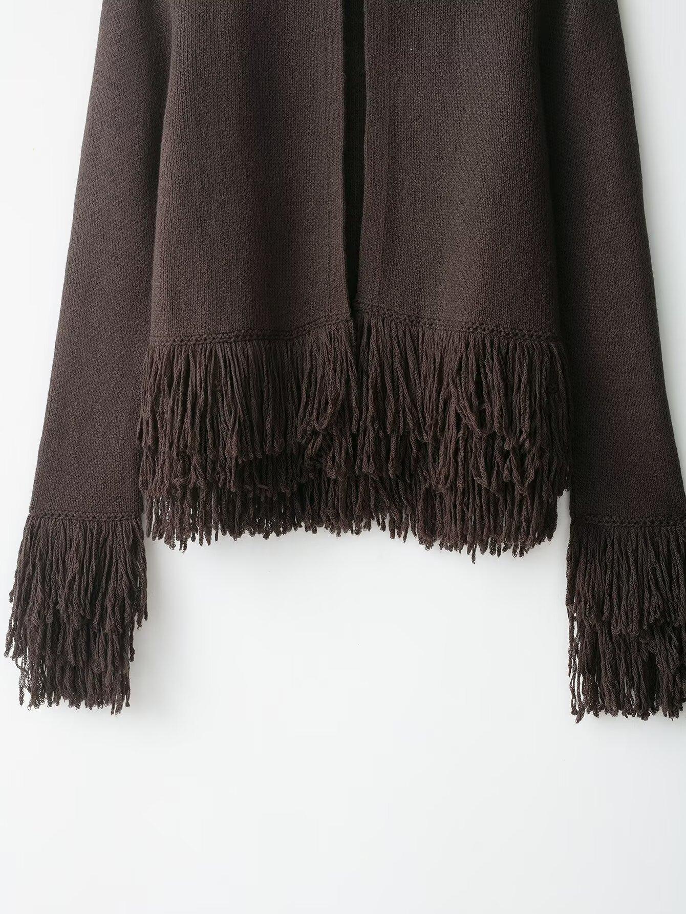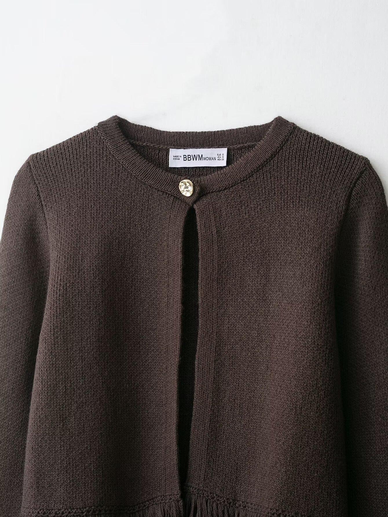 Ropa de Mujer de Comercio Exterior Transfronterizo 2025 Otoño Estilo Europeo y Americano Abrigo Cárdigan de Punto con Bajo de Flecos de Botonadura Sencilla para Mujer A36809F