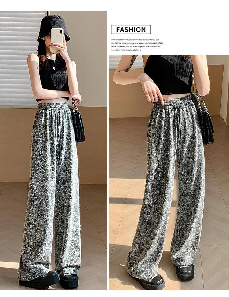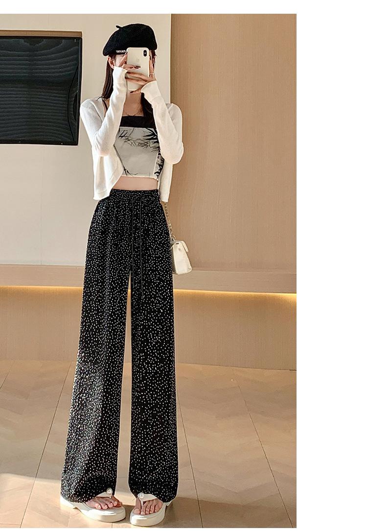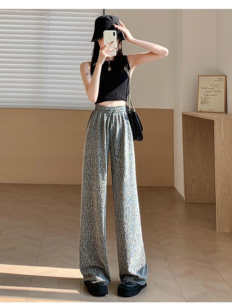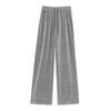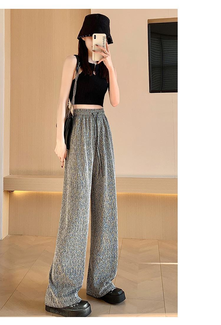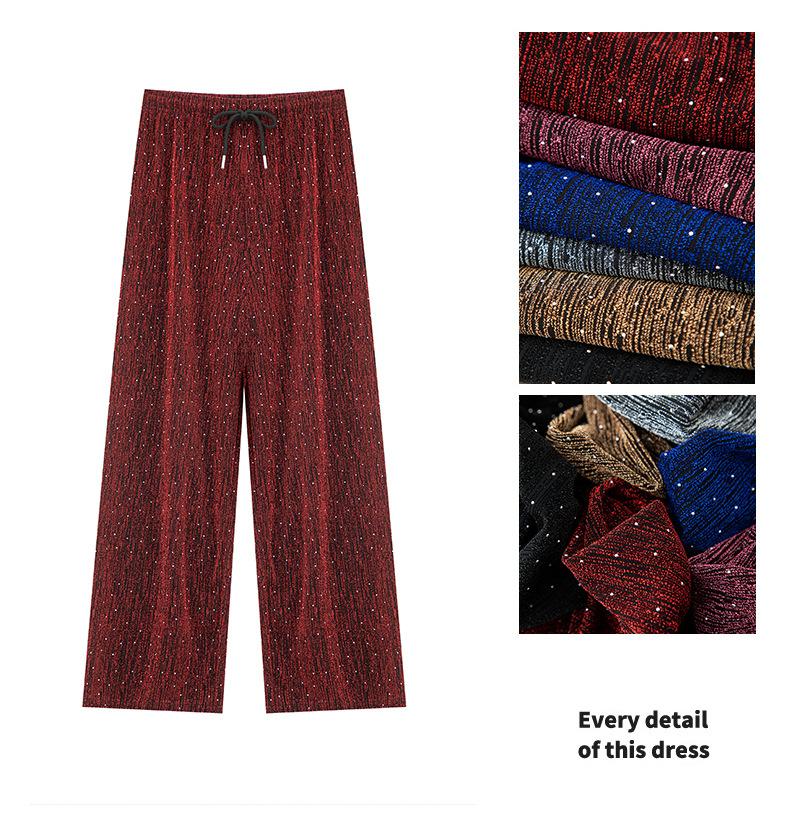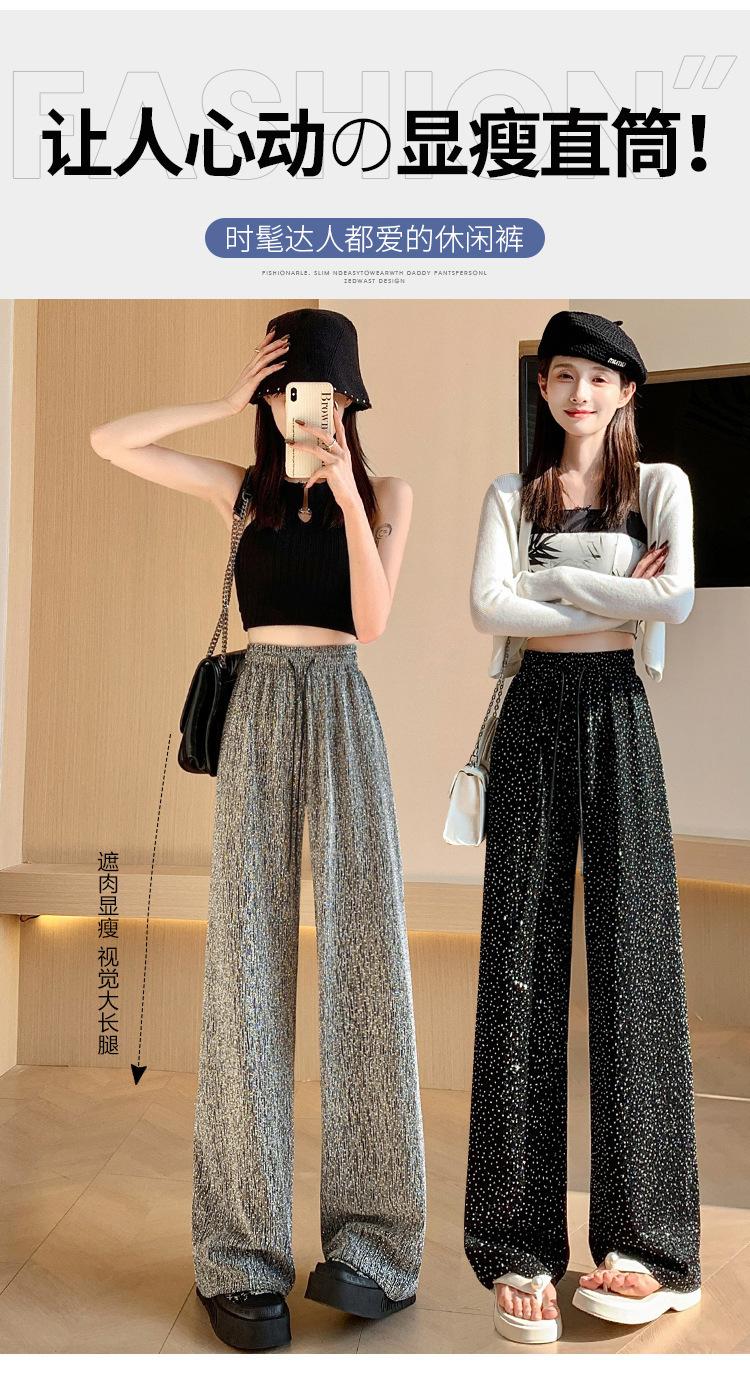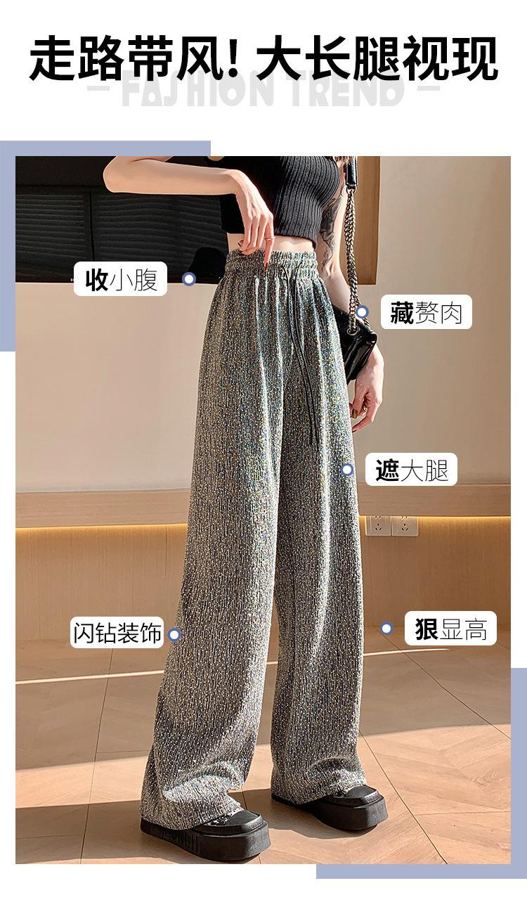 Pantalones de Pierna Ancha de Seda de Hielo con Diamantes Calientes para Mujer Verano Delgados 2025 Nuevos Cintura Alta Sueltos Versión Estrecha Textura Drapeada Pantalones Rectos