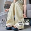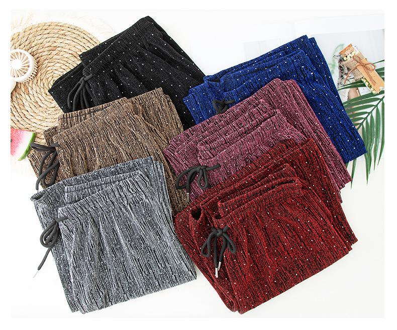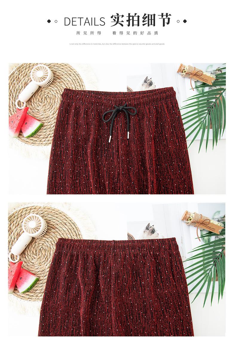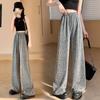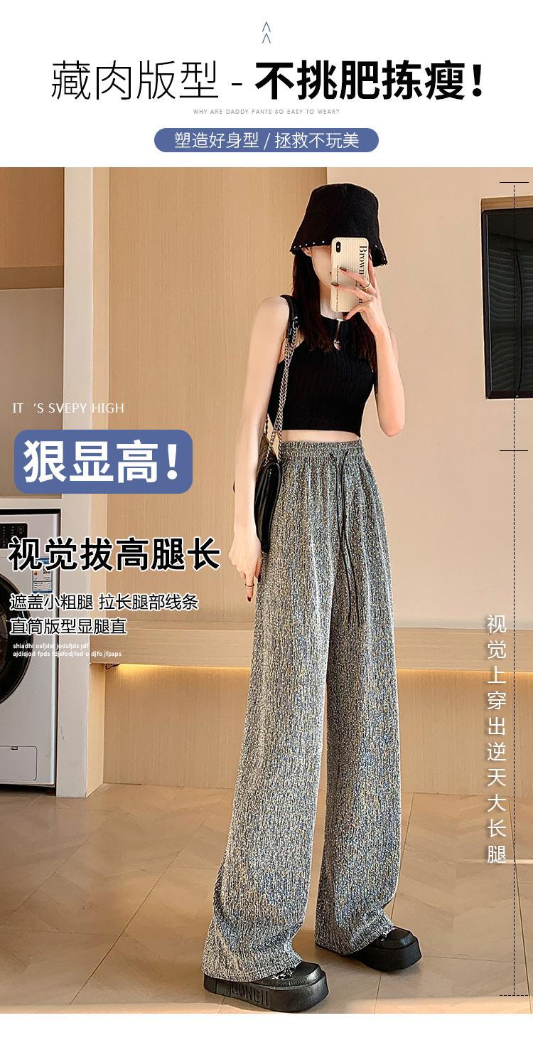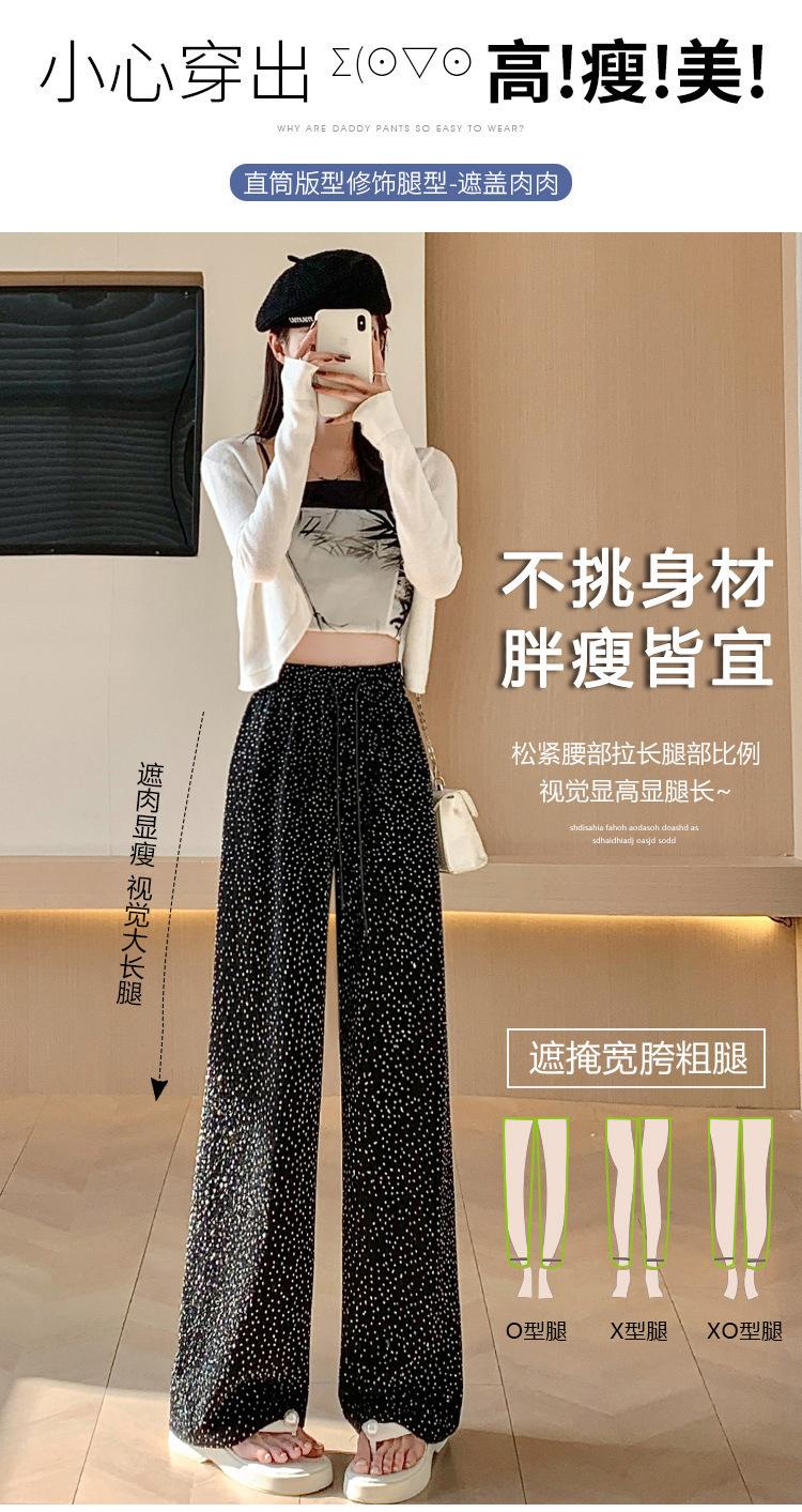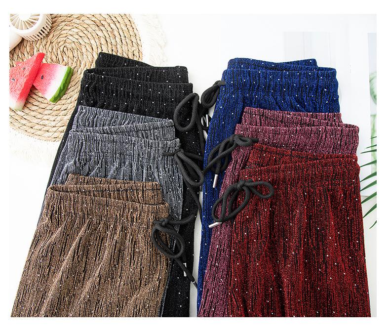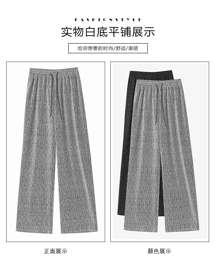 Pantalones de Pierna Ancha de Seda de Hielo con Diamantes Calientes para Mujer Verano Delgados 2025 Nuevos Cintura Alta Sueltos Versión Estrecha Textura Drapeada Pantalones Rectos
