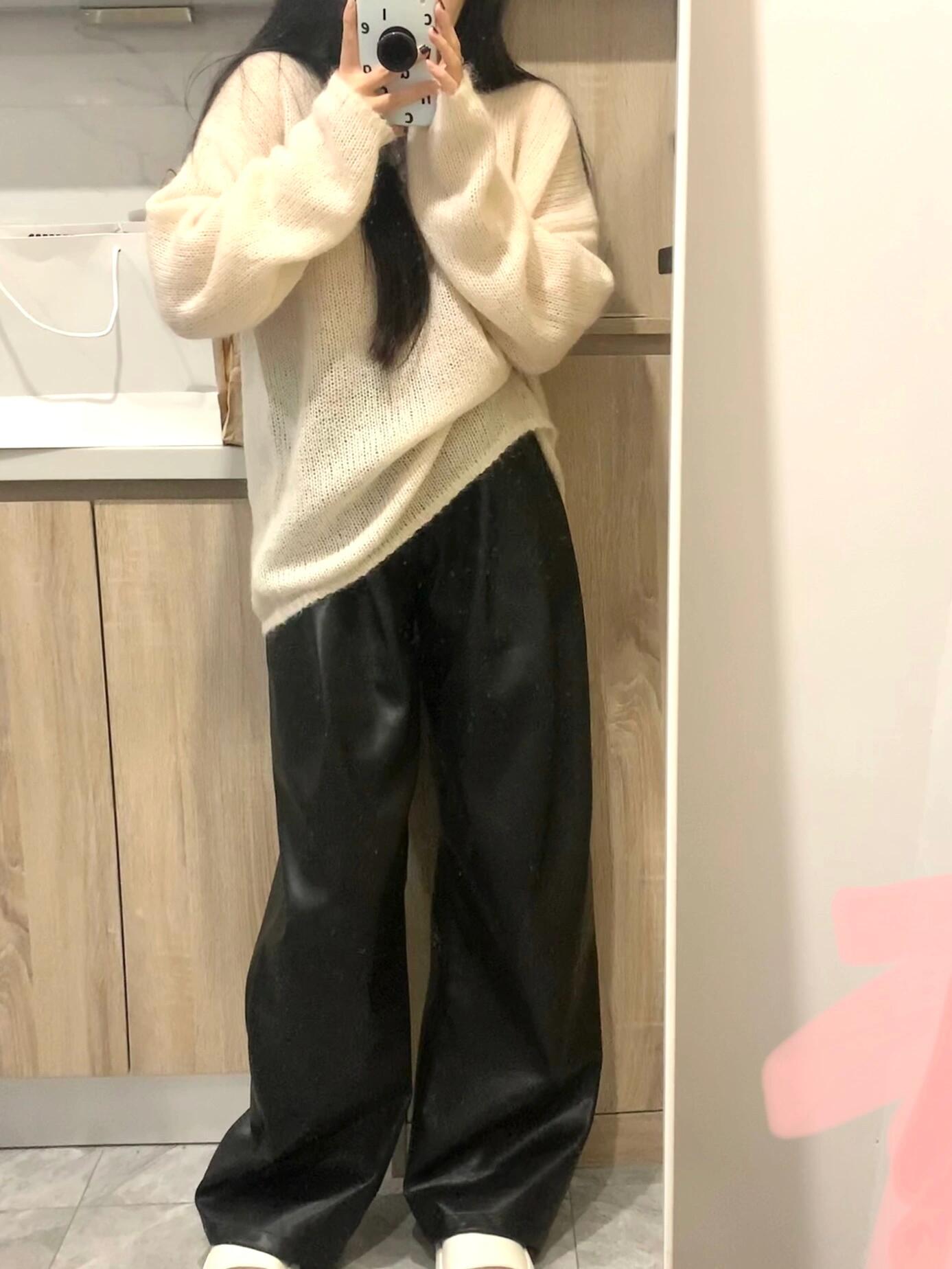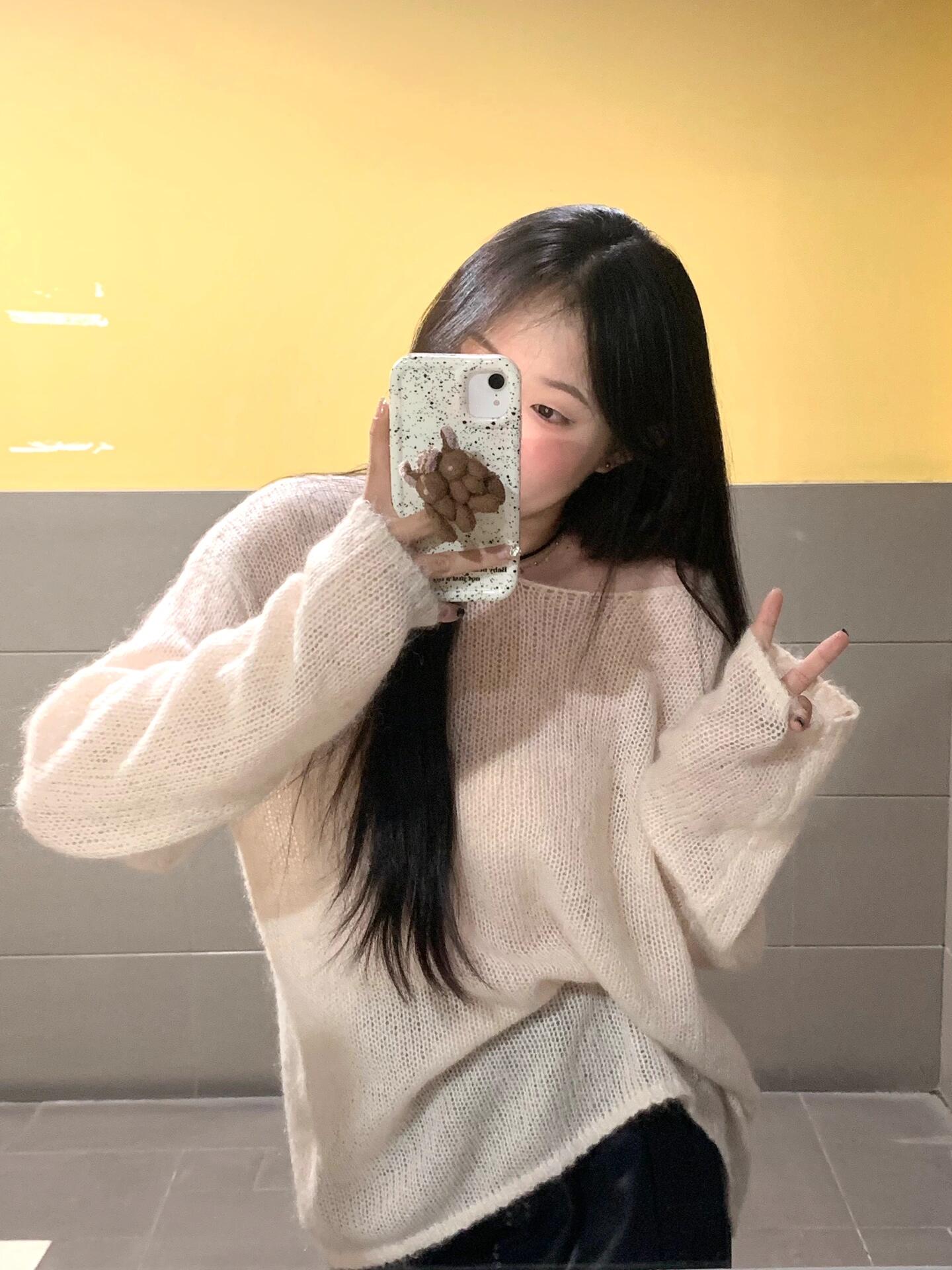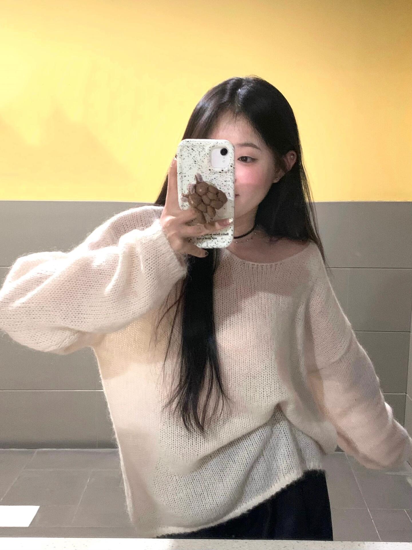 Estilo casual y holgazán~Suéter blanco de mohair suave y glutinoso para mujer otoño temprano 2025 temperamento suave suéter de punto fino
