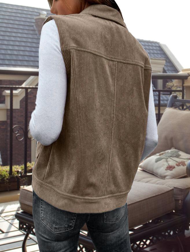 2024 Cárdigan de Invierno para Mujer Europeo y Americano de Moda Nueva Versátil con Parches de Pana Sin Mangas Chaleco Exterior para Mujer