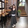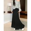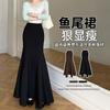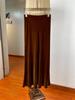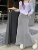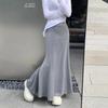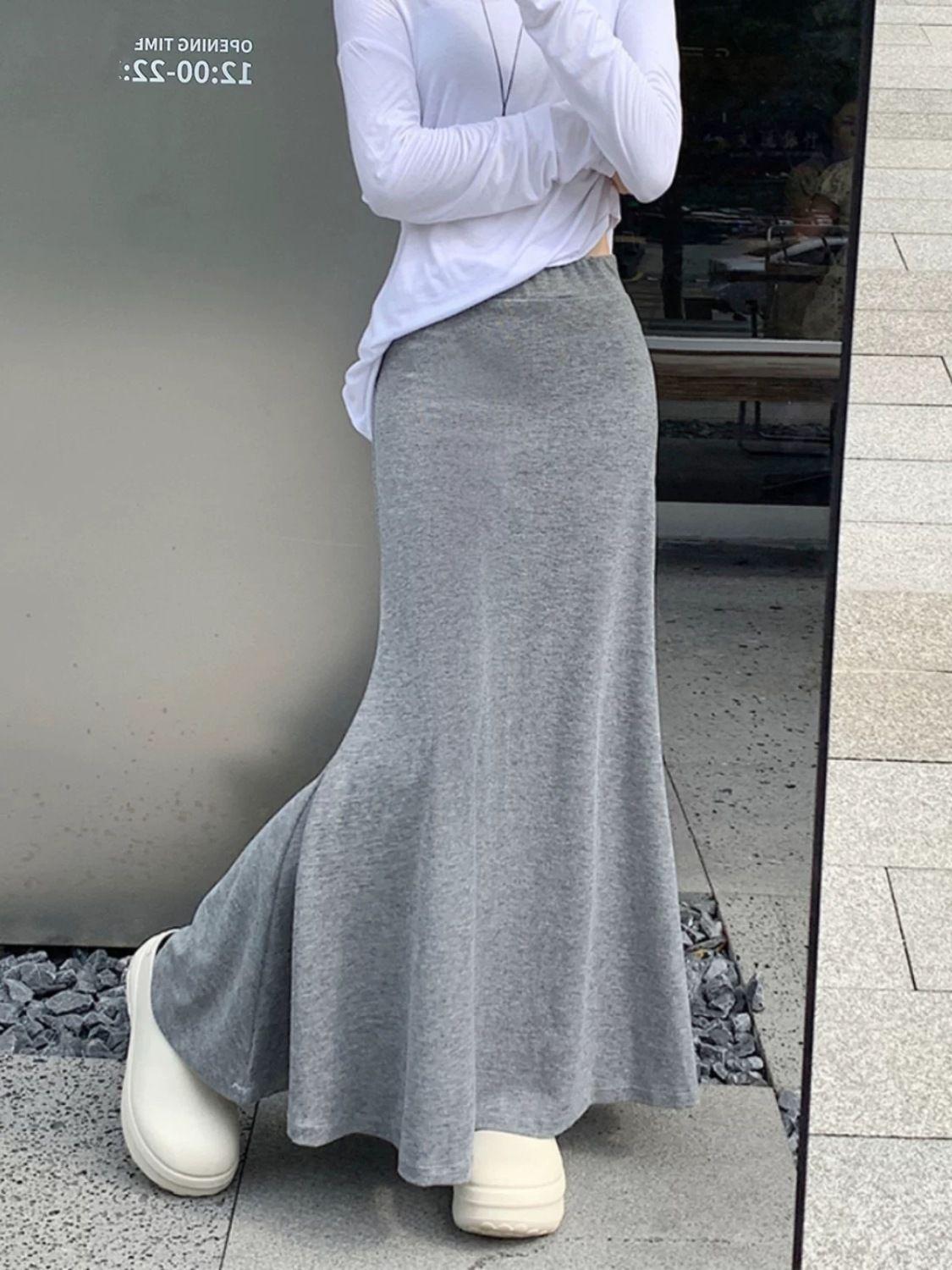 Falda midi perezosa gris elástica de cintura alta verano nueva sencilla drapeada cola de pez falda casual adelgazante falda larga