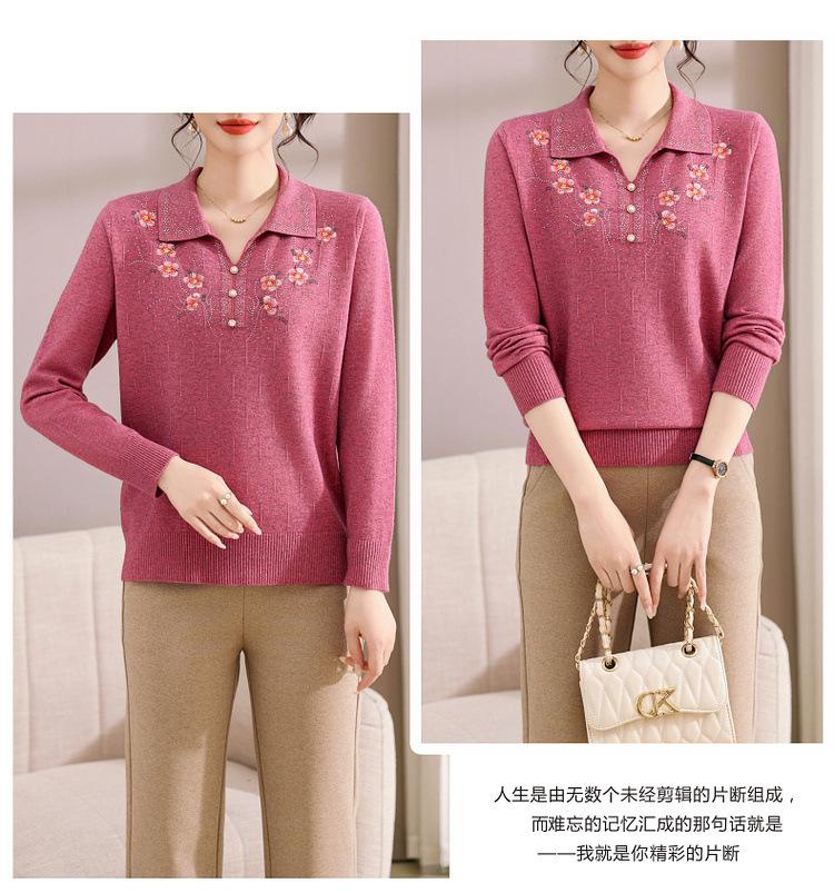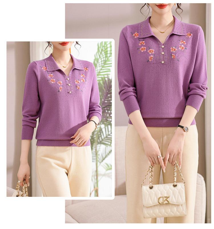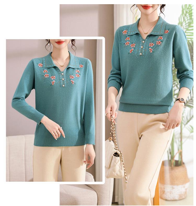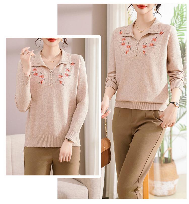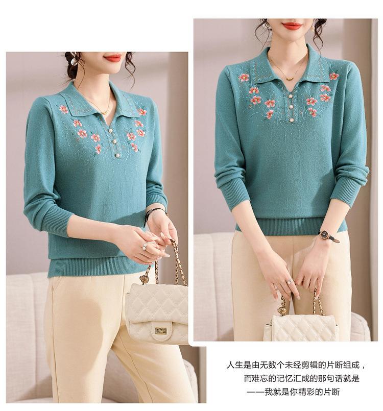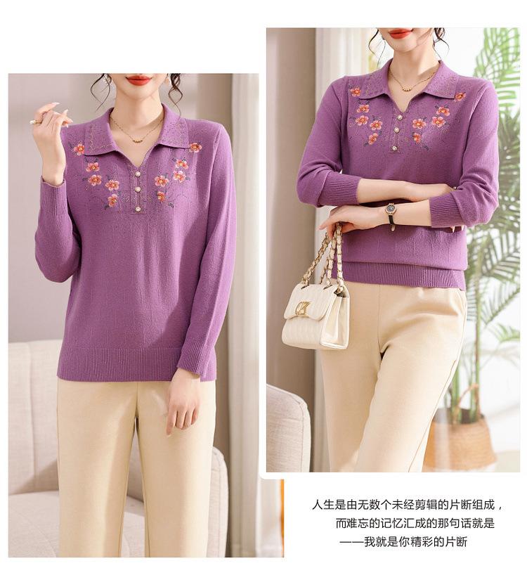 Ropa de primavera para mujeres de mediana edad y ancianas, camisa pequeña, 40 años, 50, camiseta, camisa tejida, moda nueva 2025, top de estilo extranjero para madre de principios de primavera