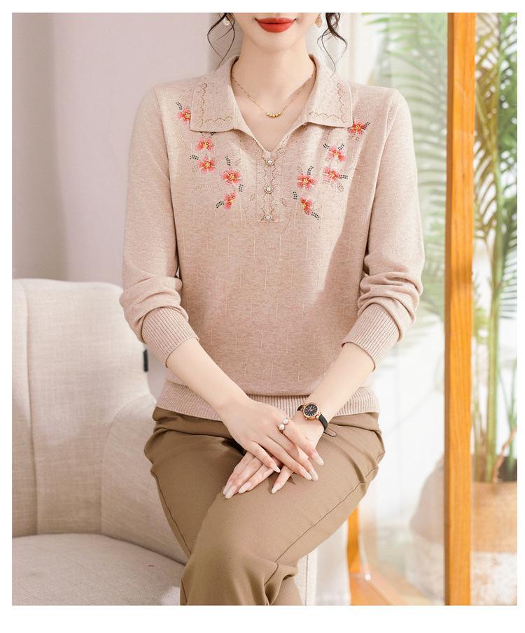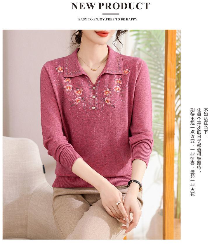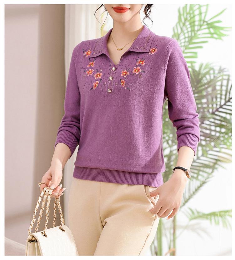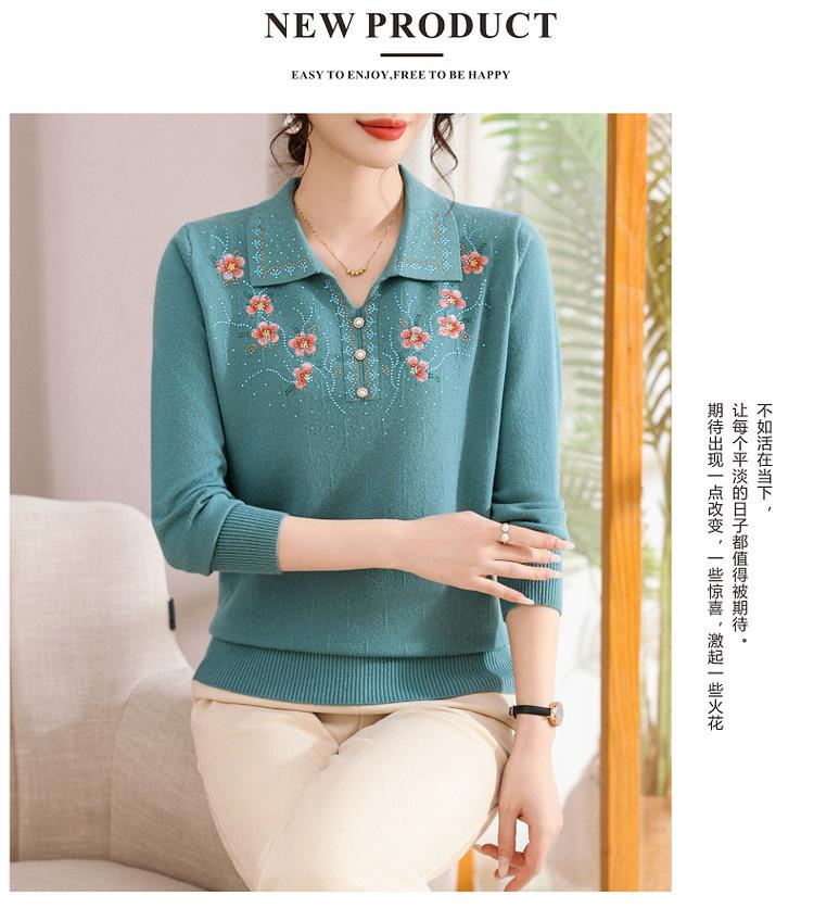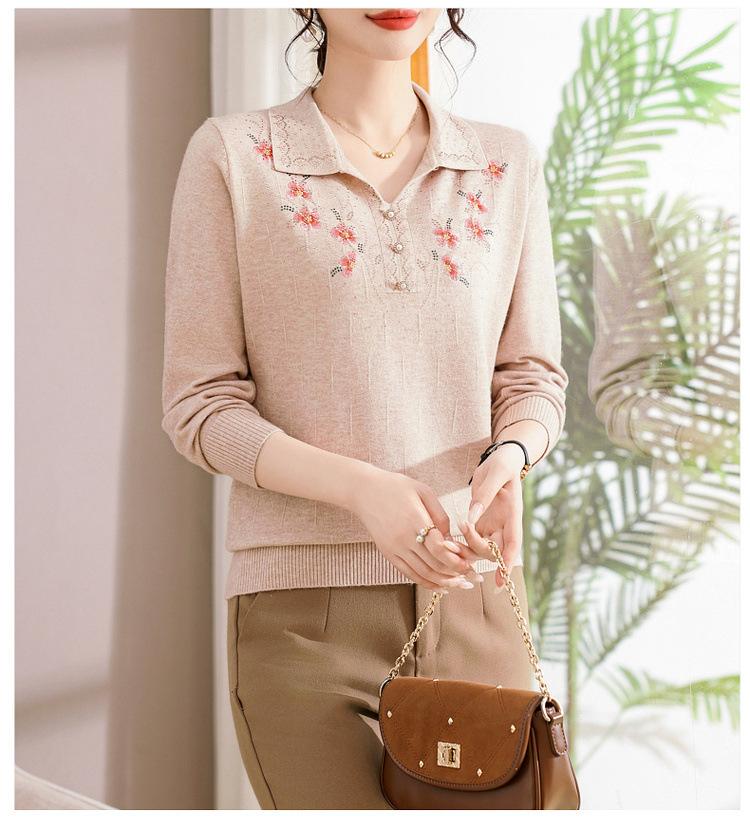 Ropa de primavera para mujeres de mediana edad y ancianas, camisa pequeña, 40 años, 50, camiseta, camisa tejida, moda nueva 2025, top de estilo extranjero para madre de principios de primavera
