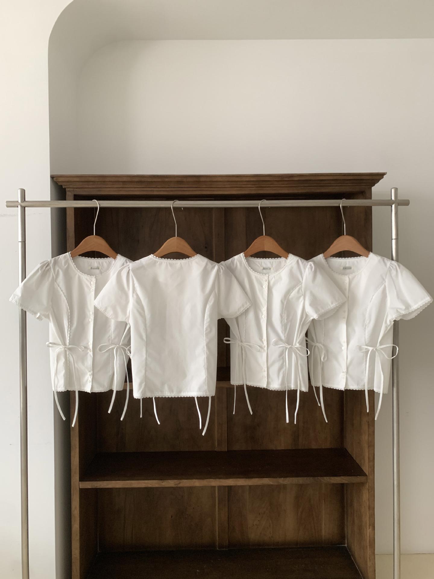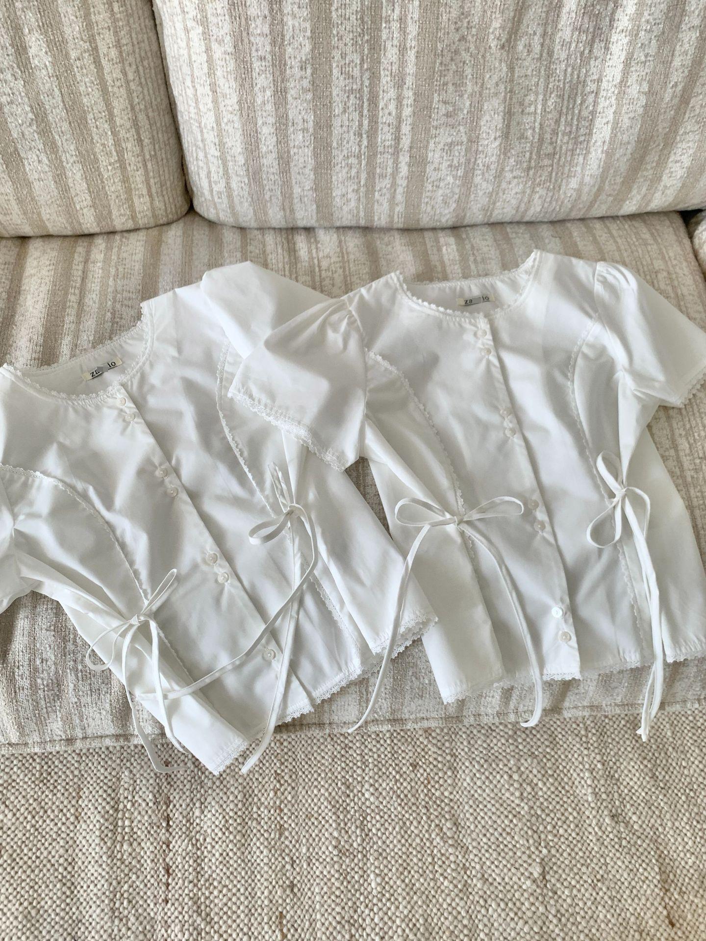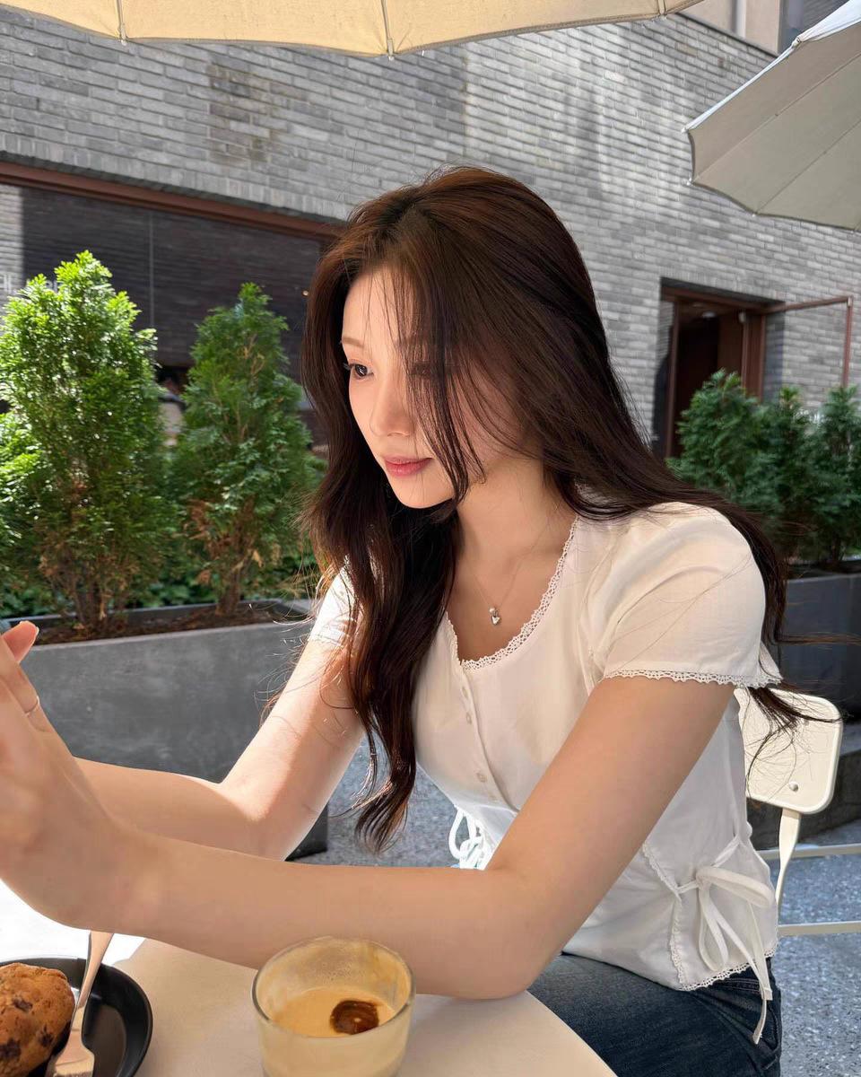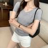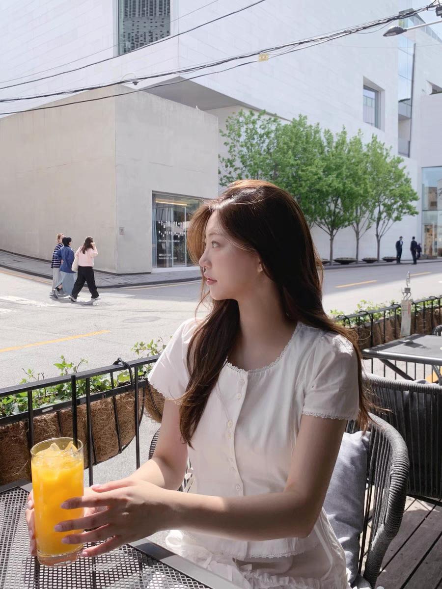 Spot 2025 Verano Nuevo Coreano Dongdaemun Cintura Eslbelta Encaje Look Adelgazante Encaje Cuello Redondo Camisa de Manga Corta