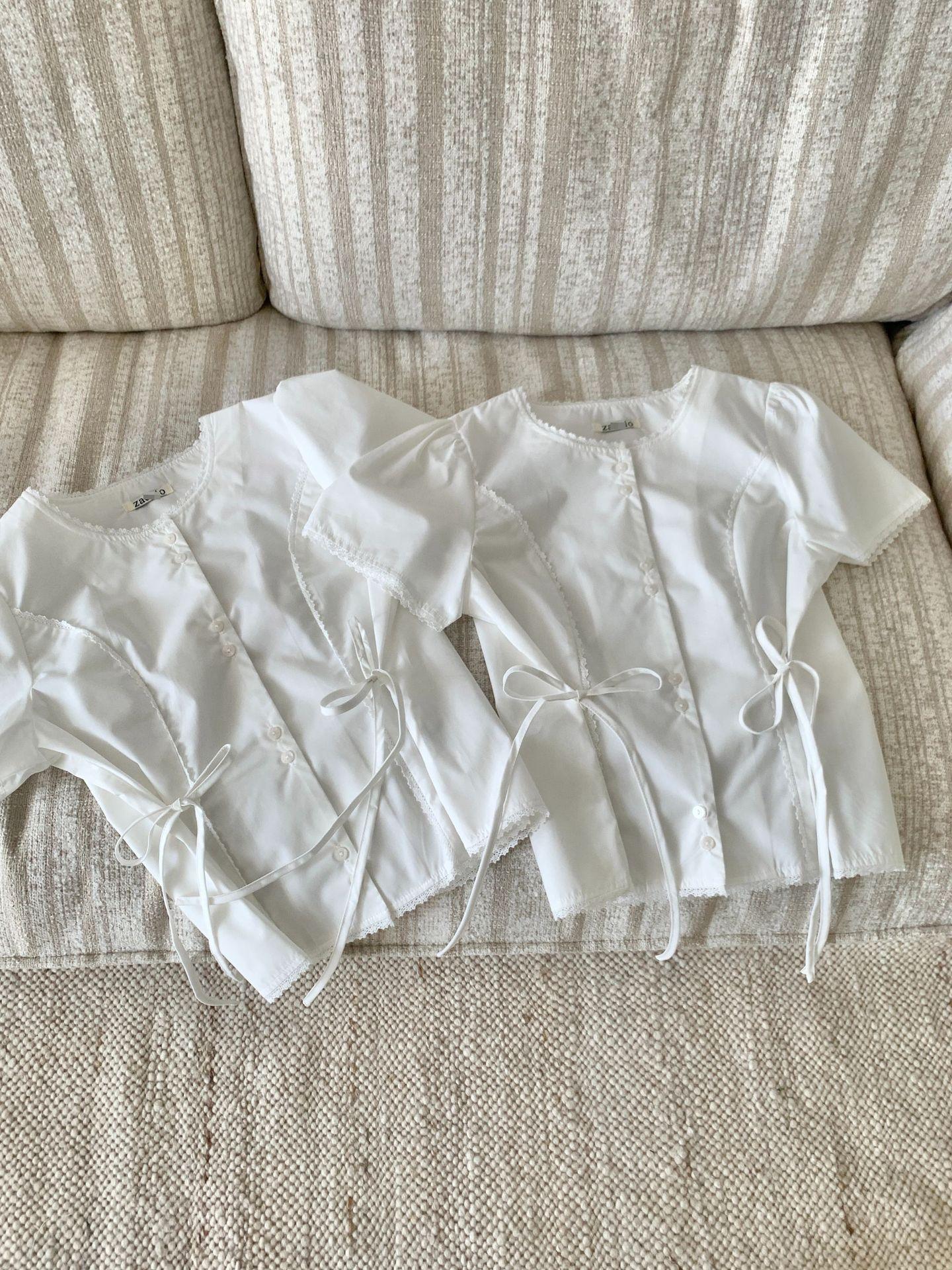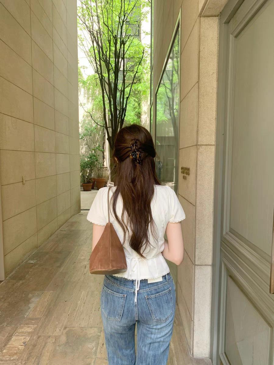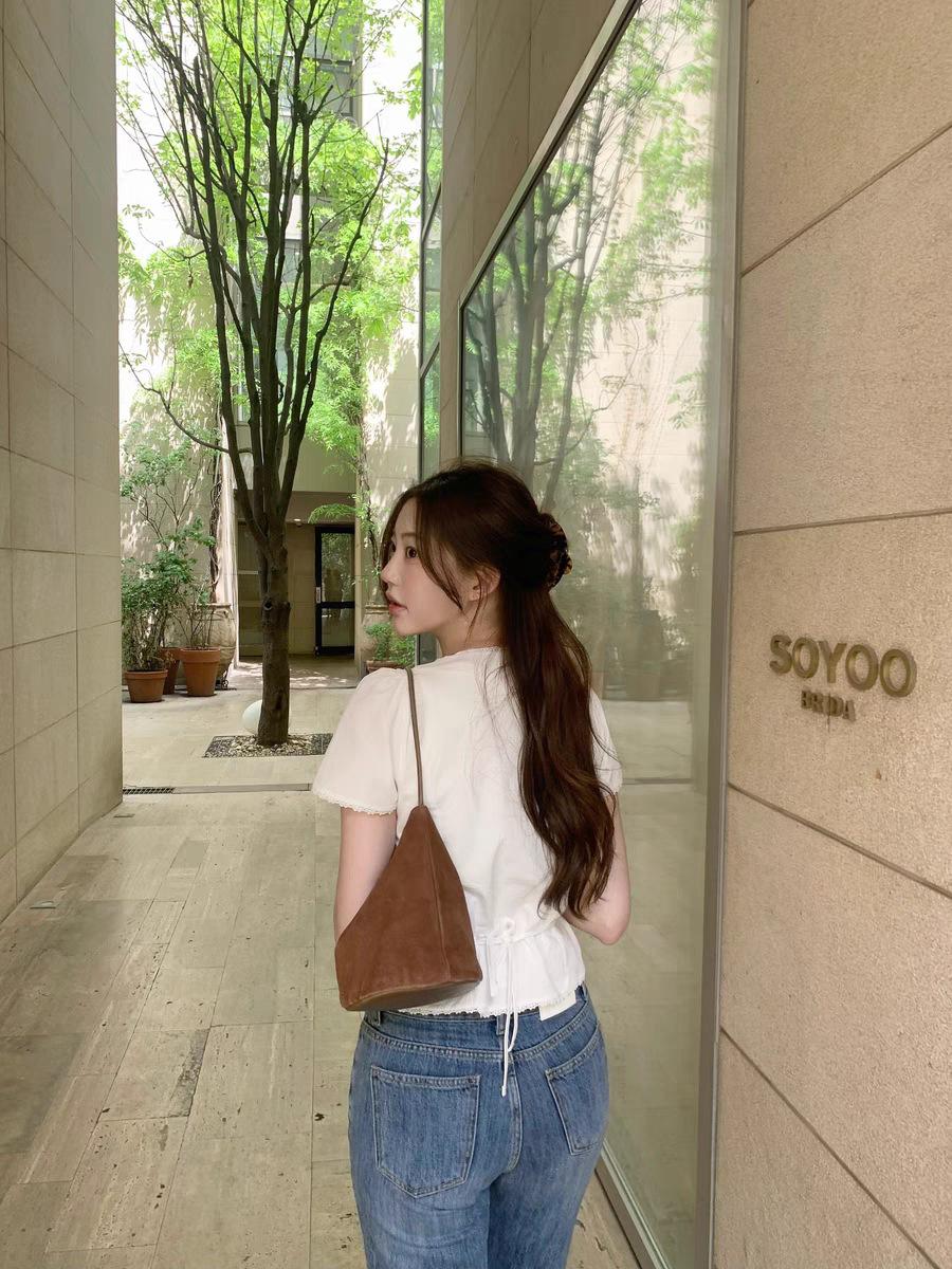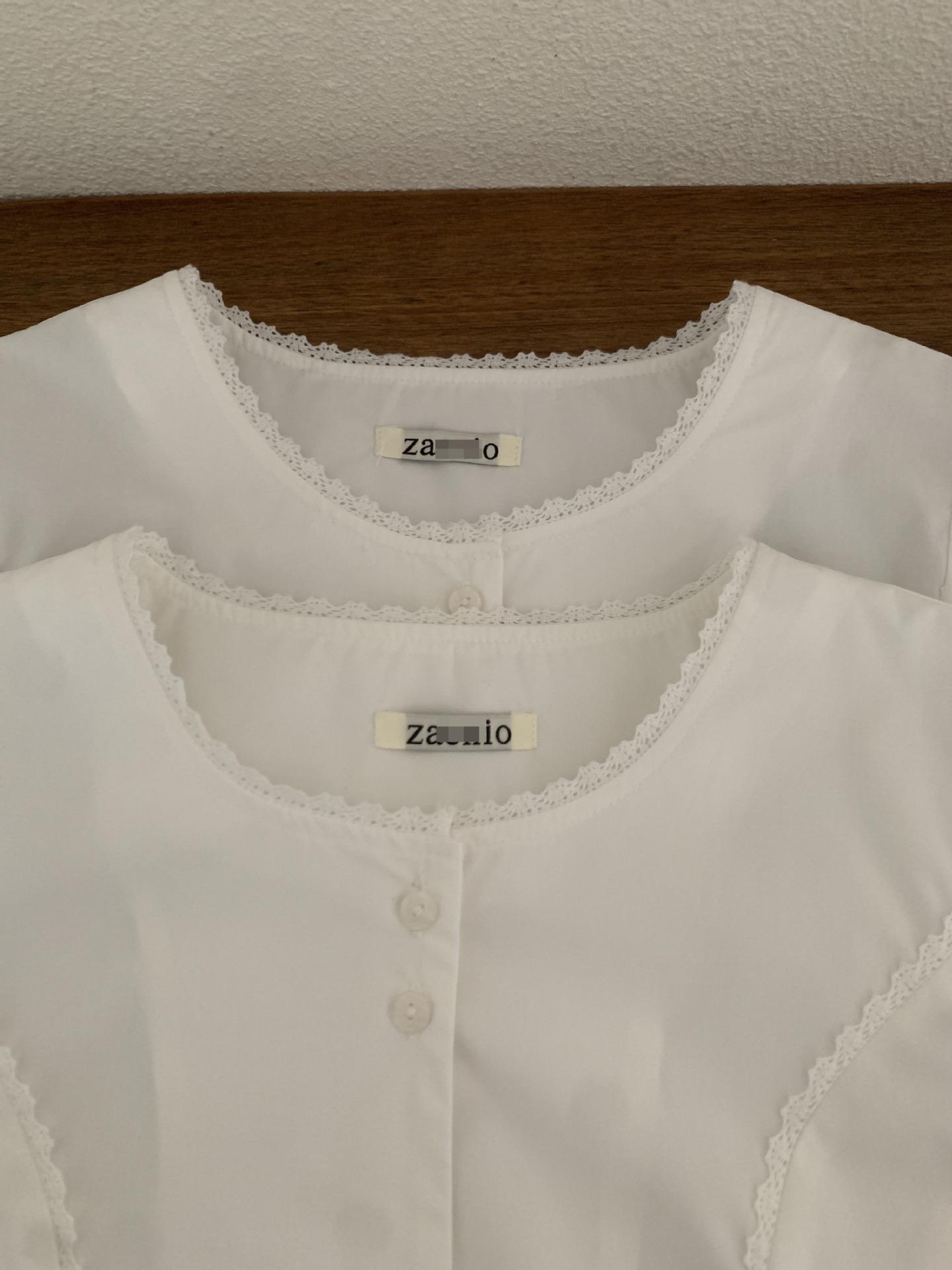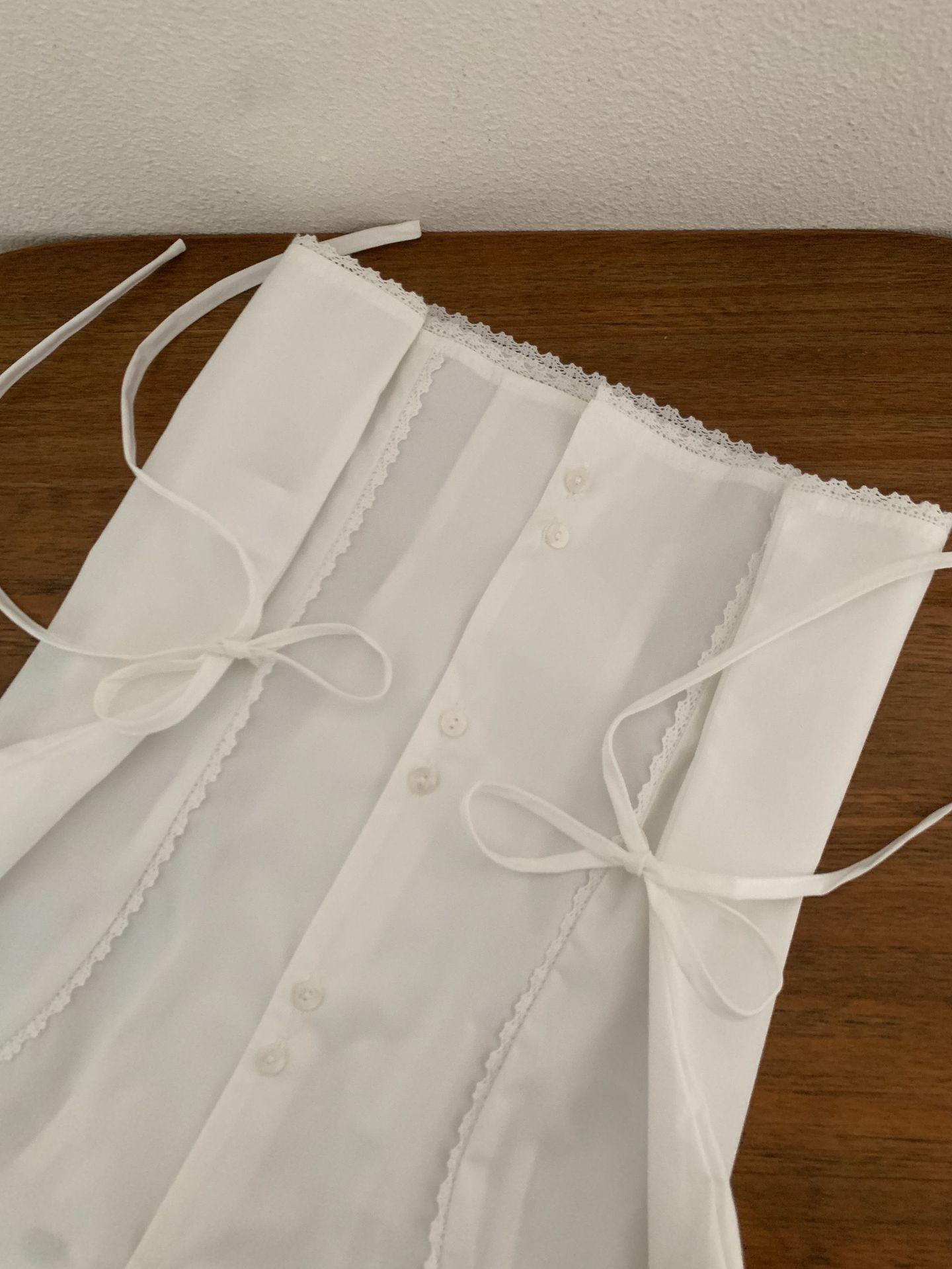 Spot 2025 Verano Nuevo Coreano Dongdaemun Cintura Eslbelta Encaje Look Adelgazante Encaje Cuello Redondo Camisa de Manga Corta
